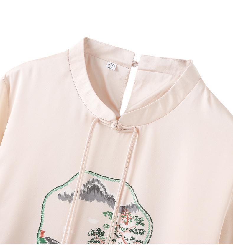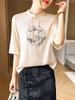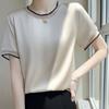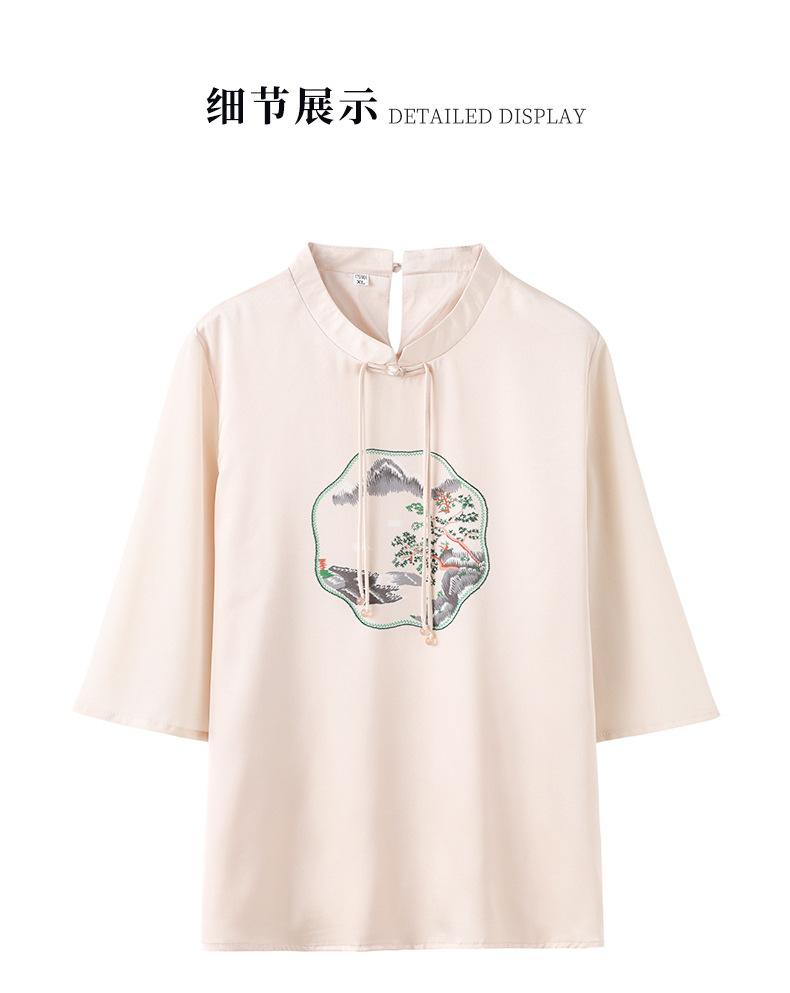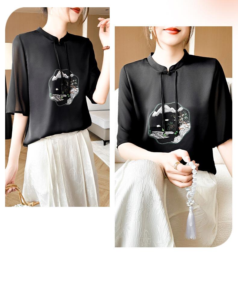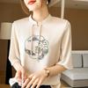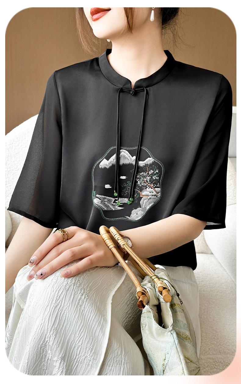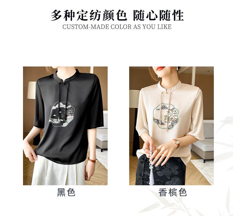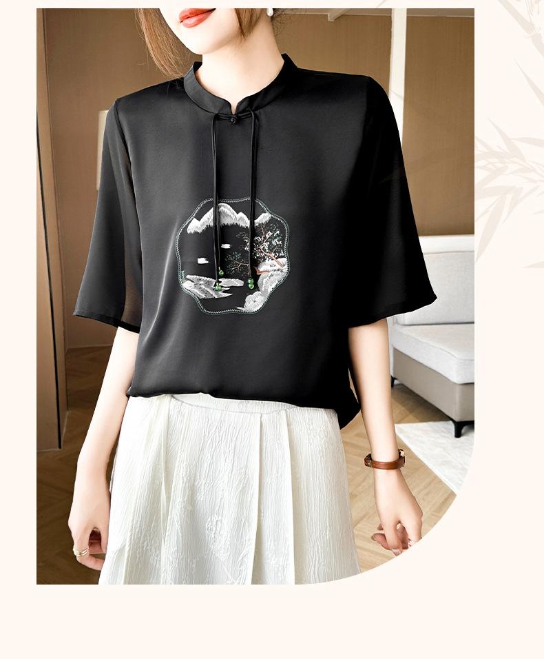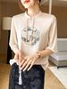 25. Camiseta de manga corta nueva de primavera y verano para mujer, de satén de imitación de seda, estilo nacional, de manga corta, holgada y adelgazante, de moda para mujer.