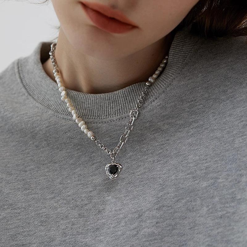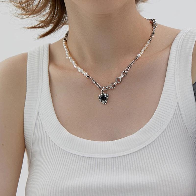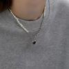 Black Love Pearl Stitching Necklace, Black Love Pearl Necklace