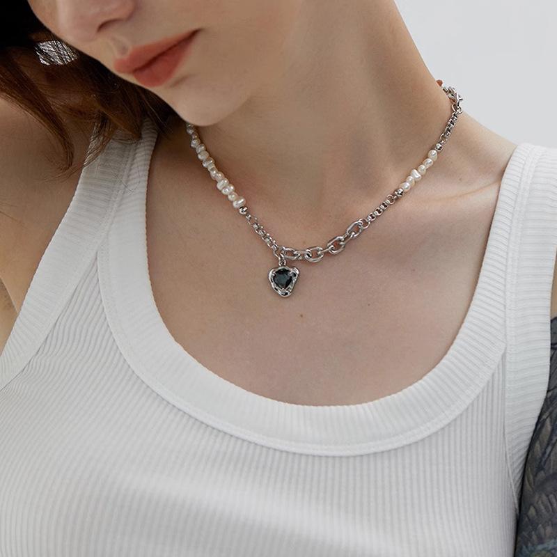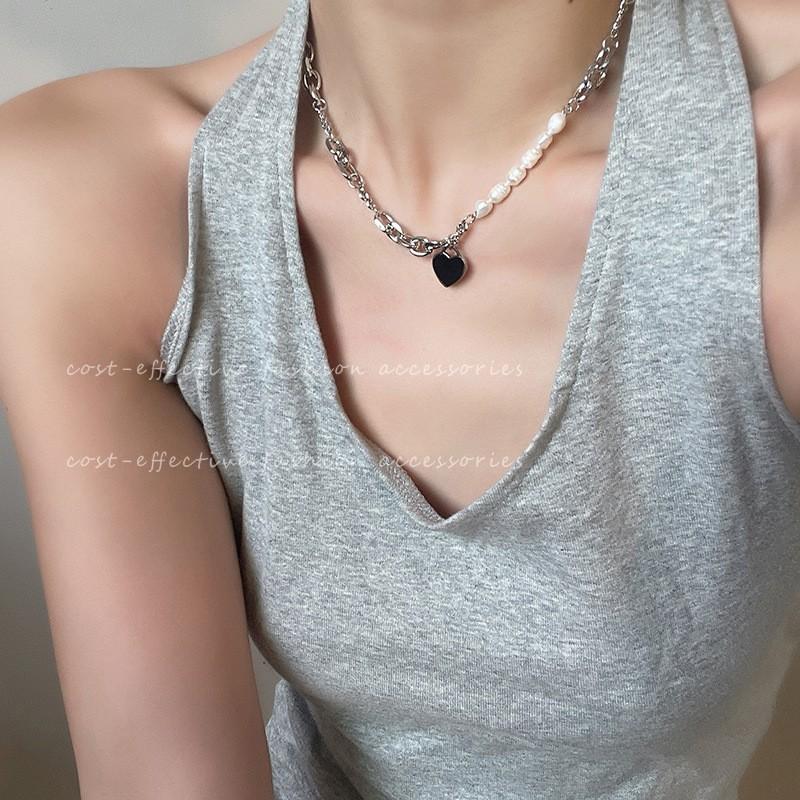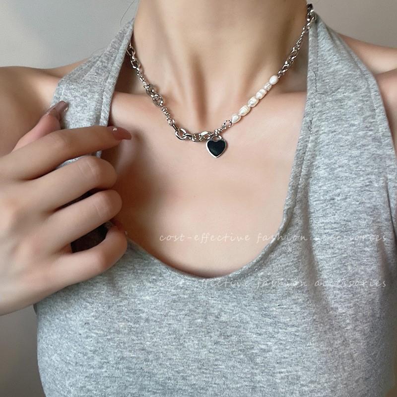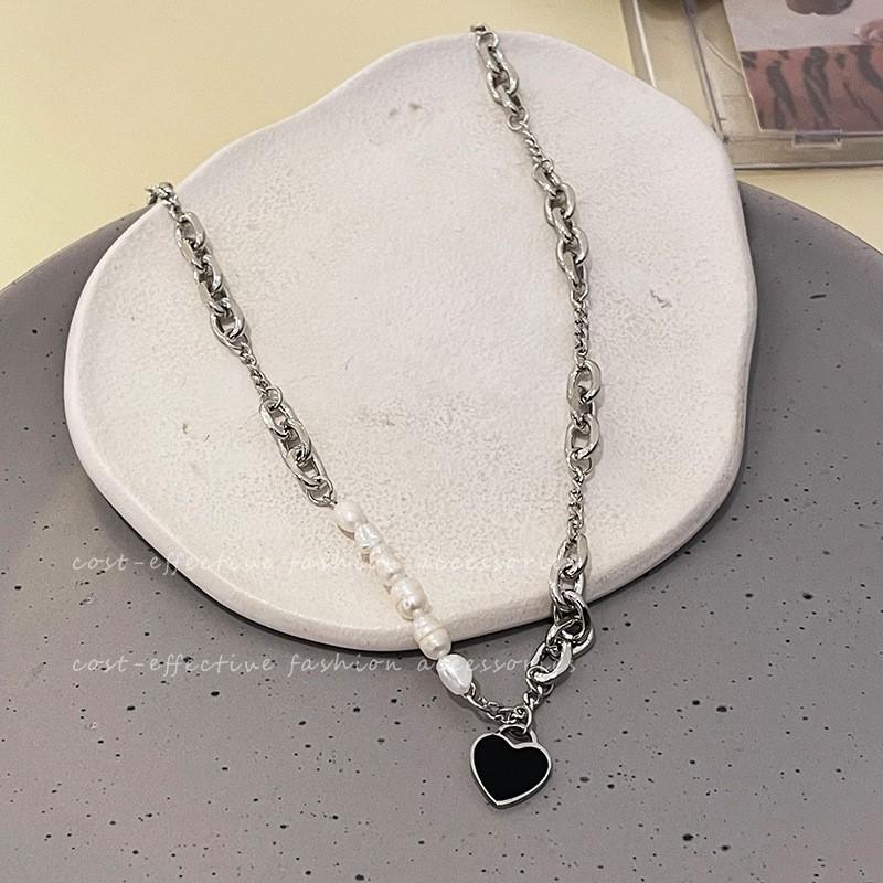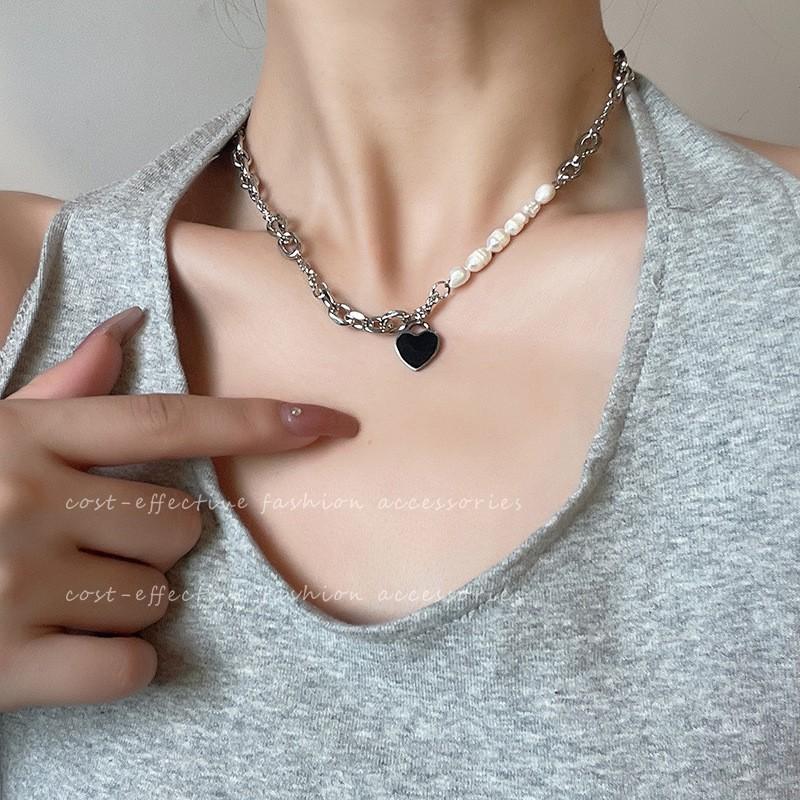 Collar de Perlas de Agua Dulce Nuevo 2024 para Mujer Colgante de Amor Negro Diseño de Nicho Versátil Cadena de Clavícula de Alta Gama