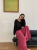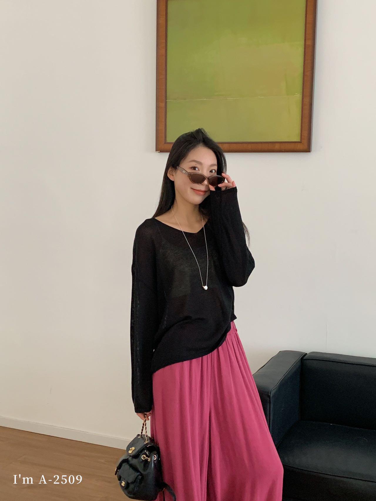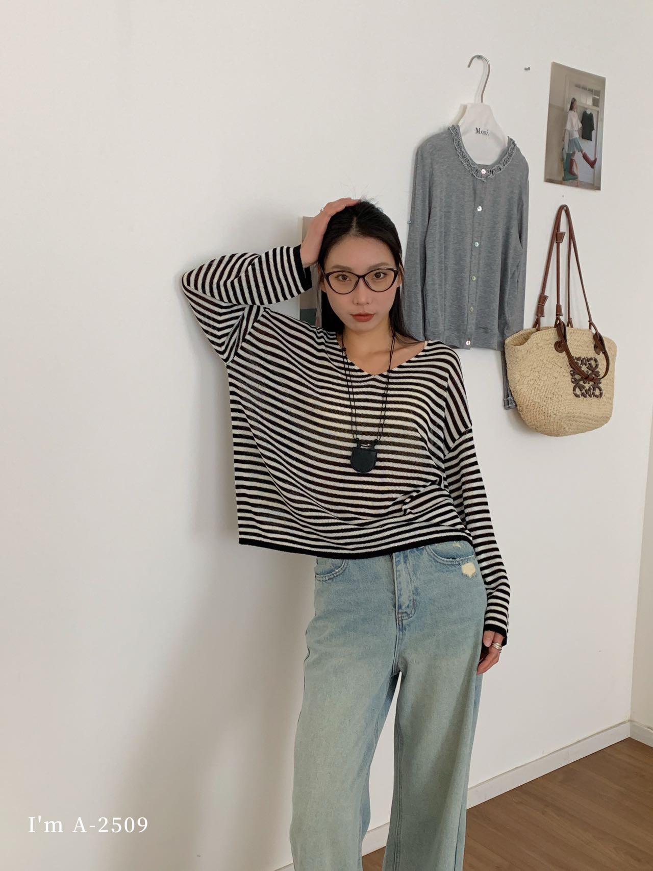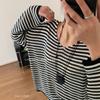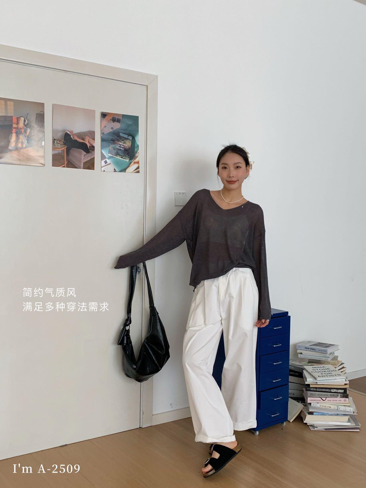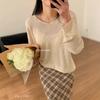 2025 Nuevo Tejido de Punto de Color Puro Coreano con Cuello en V y Manga Larga para Mujer, Estilo Lazy, Suéter Holgado que Adelgaza con Camiseta Interior