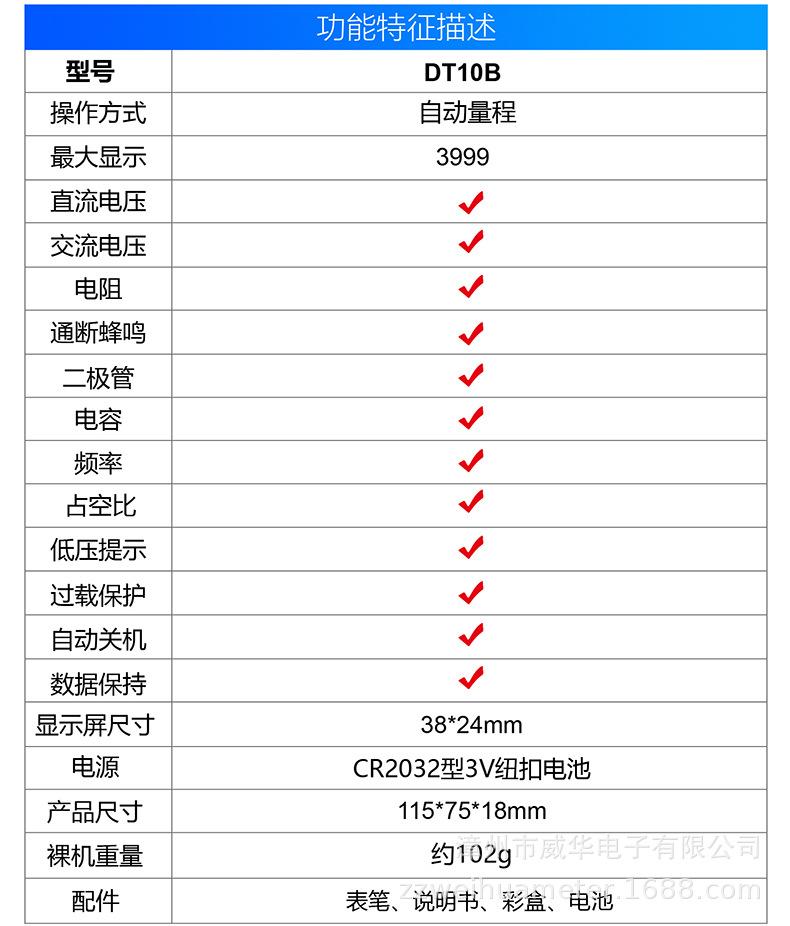 Multímetro Dt10B Ultrafino Digital Solapa Bolsillo Pantalones Multímetro Multímetro Pequeño Multímetro