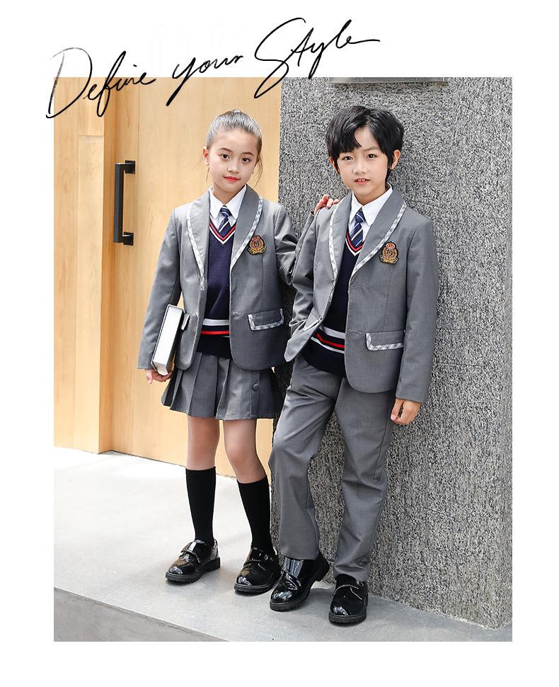 Ropa de Jardín de Infantes Estilo Inglés Ropa para Estudiantes de Primaria y Secundaria Primavera y Otoño Nuevo Traje de Uniforme Escolar Traje de Vestir para Niños Vestido de Clase