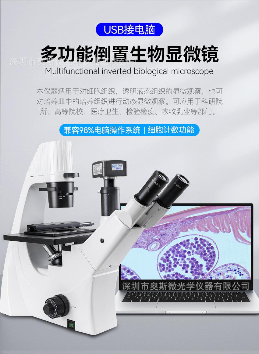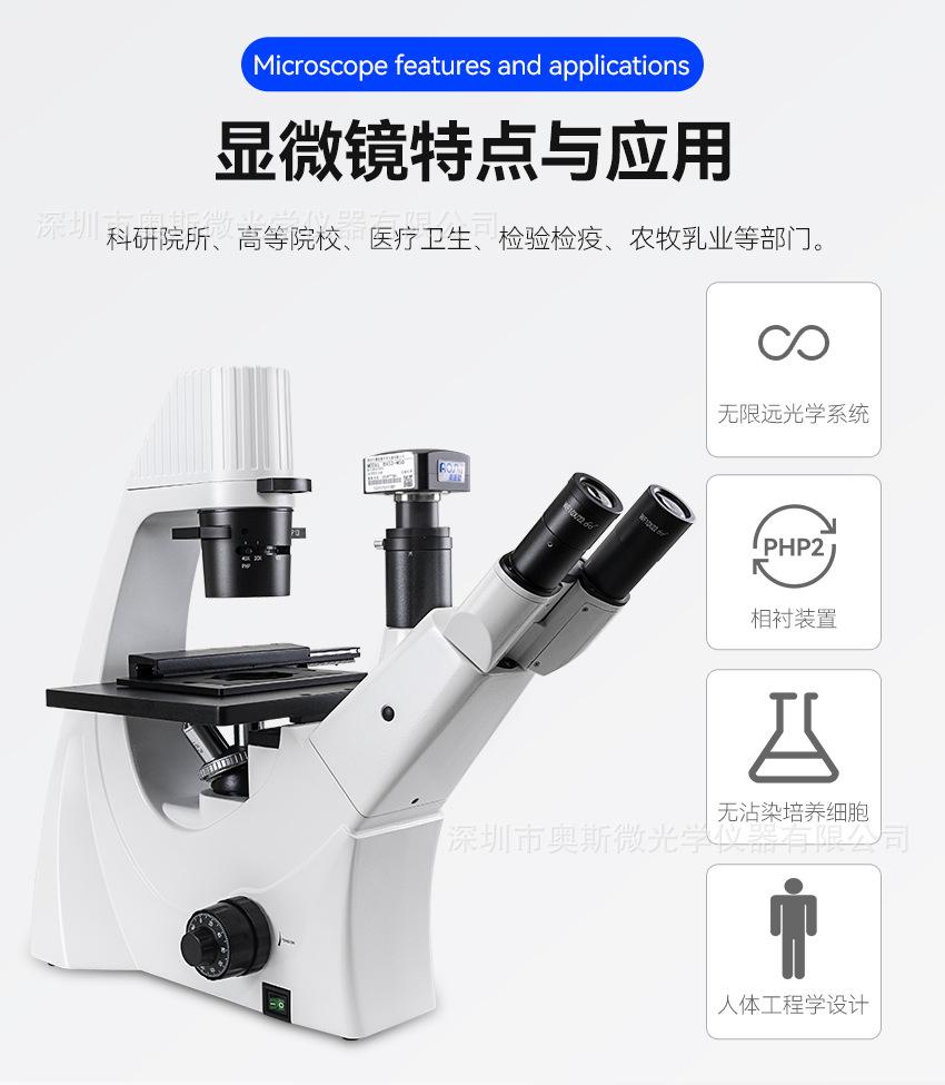 Microscopio Biológico Invertido de Observación de Cultivo Celular de Laboratorio Aosvi Bx53-3M180