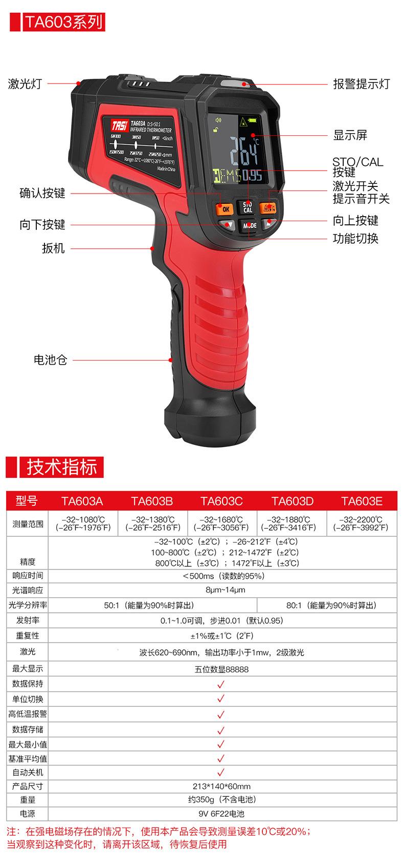 Ta603a official standard configuration [-32~1080℃The object distance ratio is 50:1