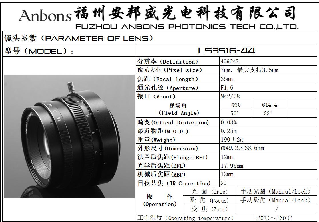 Lente de Inspección Industrial de Escaneo de Línea Hikvision Ls35Mmf1.6 4K7Um Lente Láser de Visión Artificial Lente F1.6