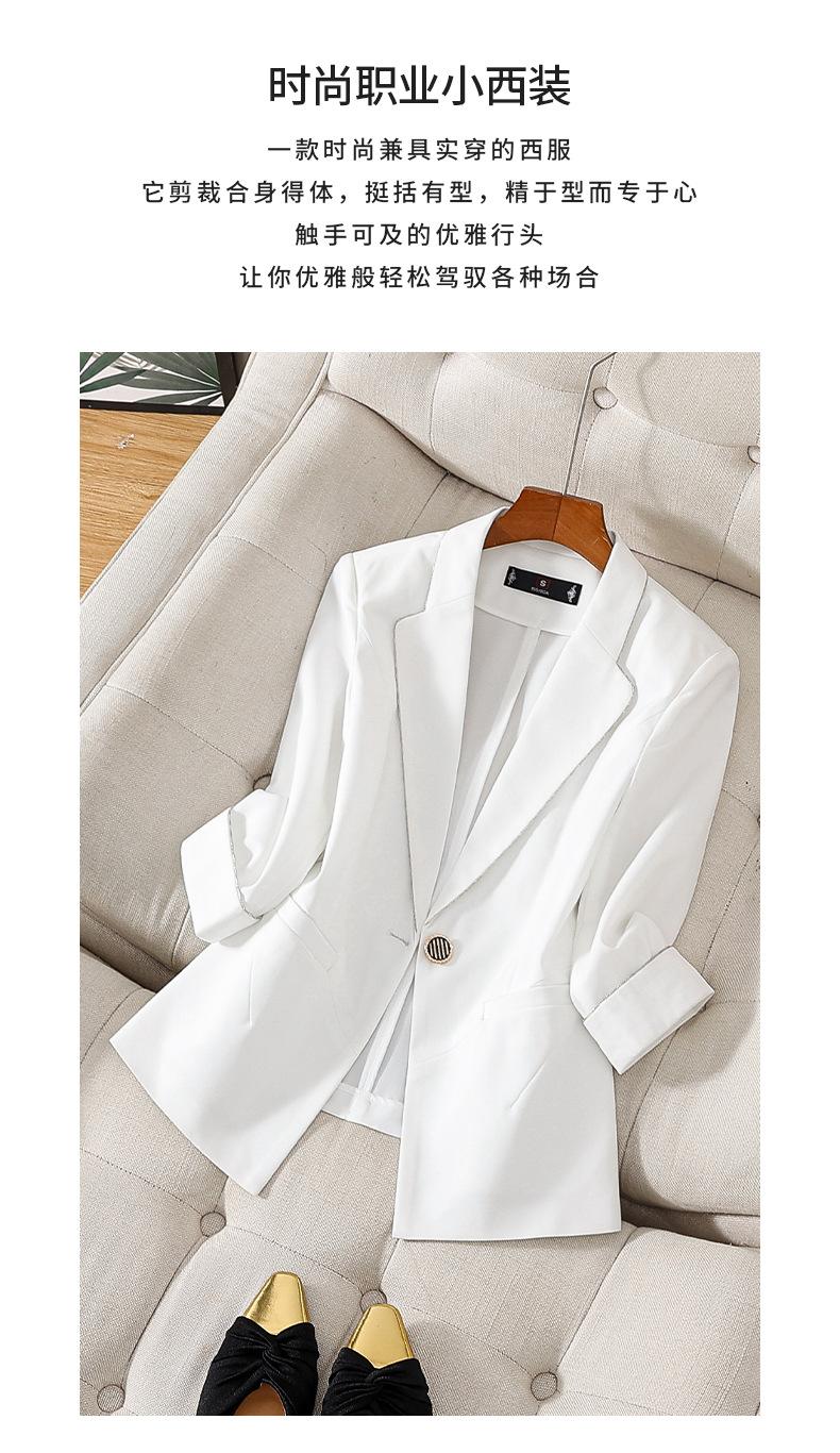 Chaqueta de traje pequeña blanca para mujer, primavera verano otoño 2025, elegante, ajustada, de siete mangas, a la moda.