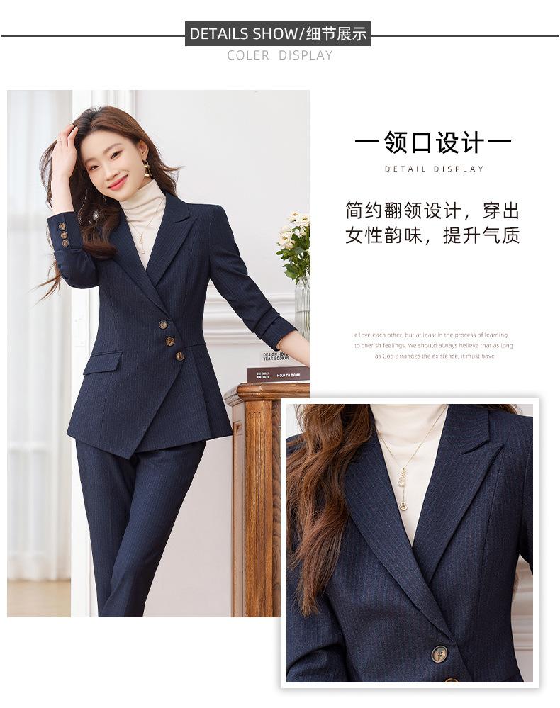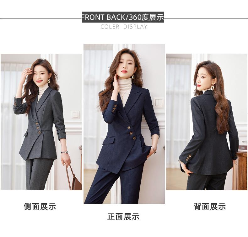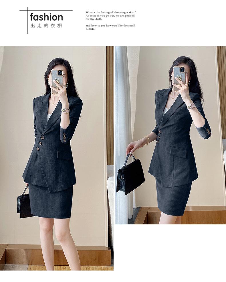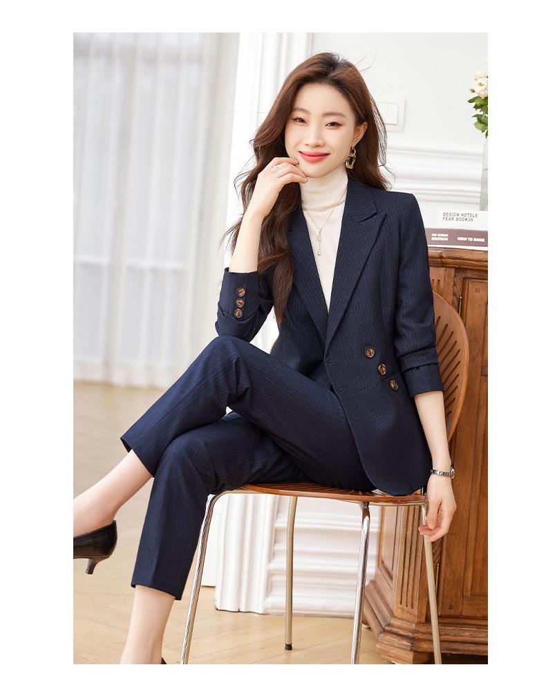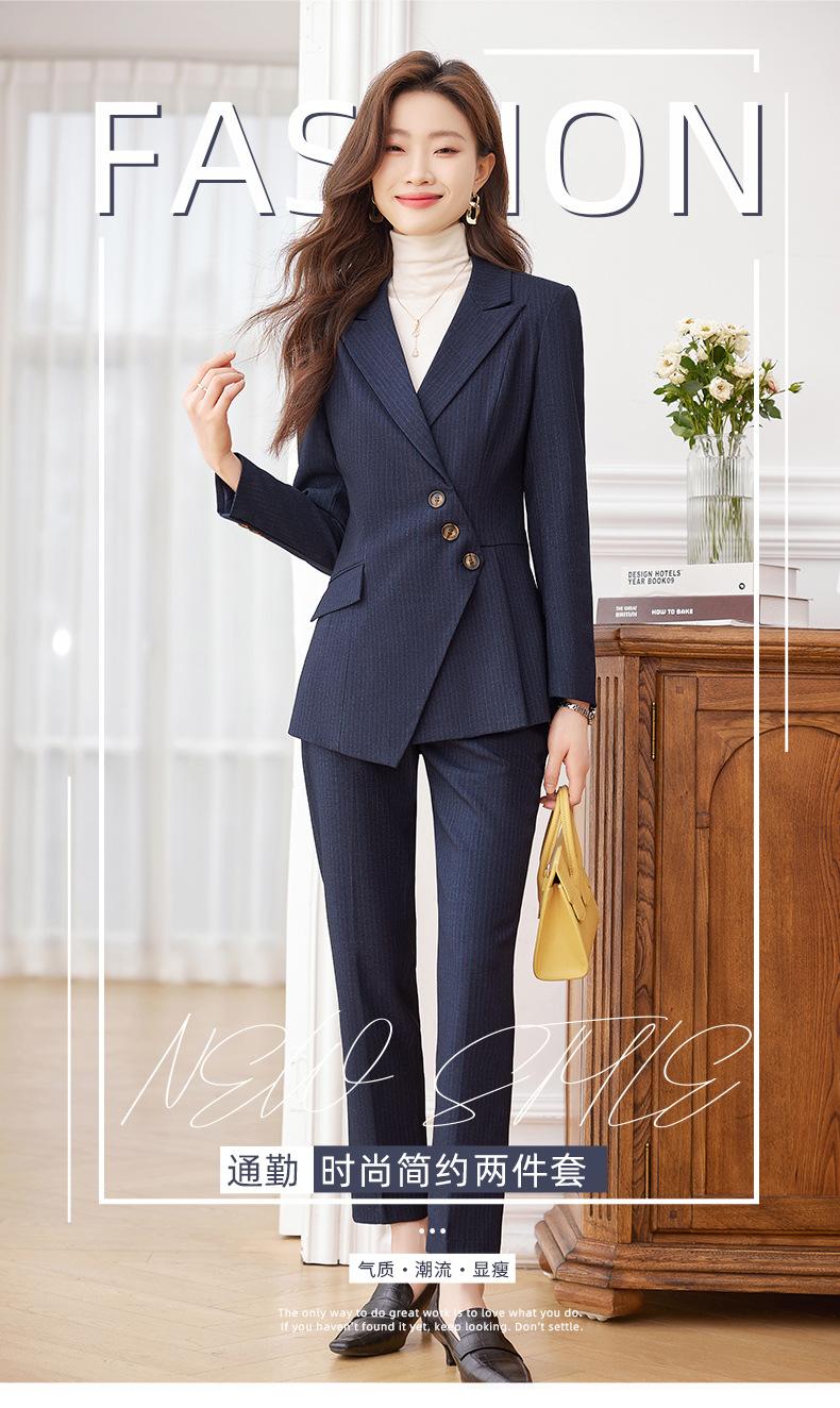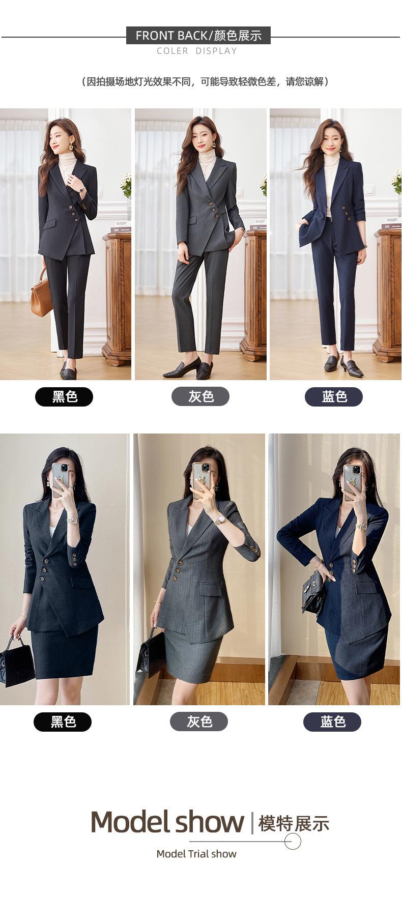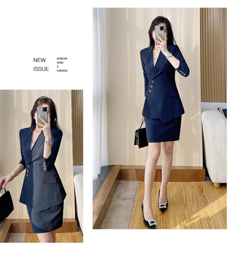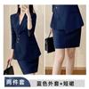 2024 Primavera y otoño nuevo azul manga larga profesional pequeño traje cuello chaqueta mujer pantalones falda traje de dos piezas moda