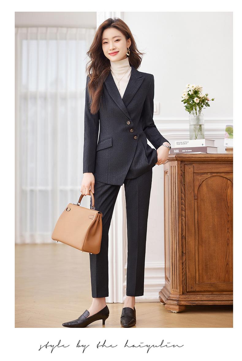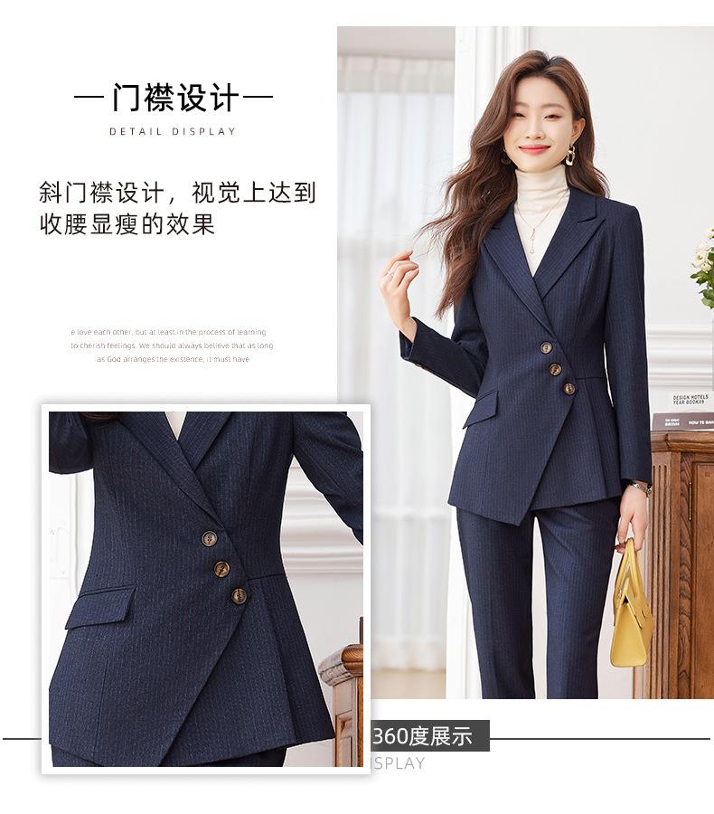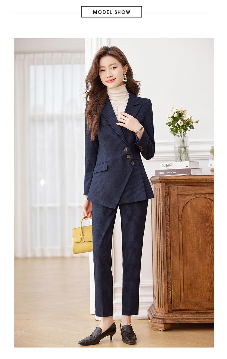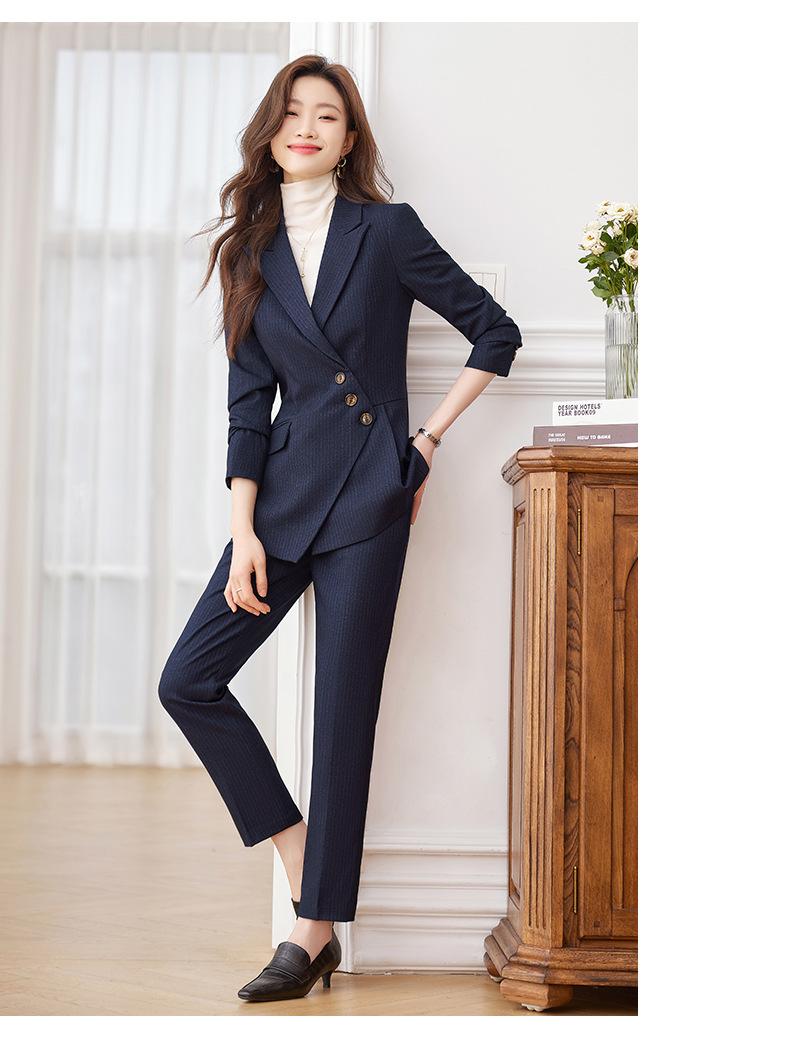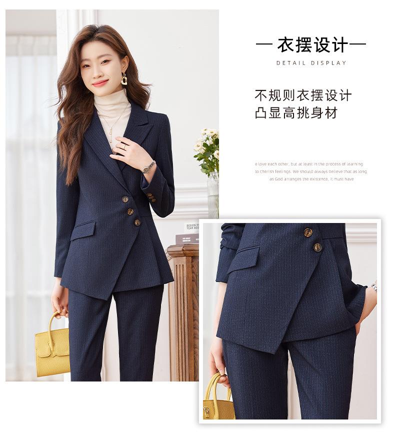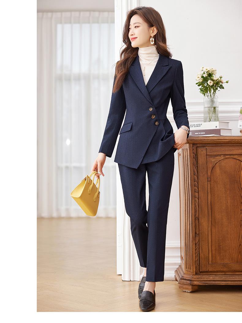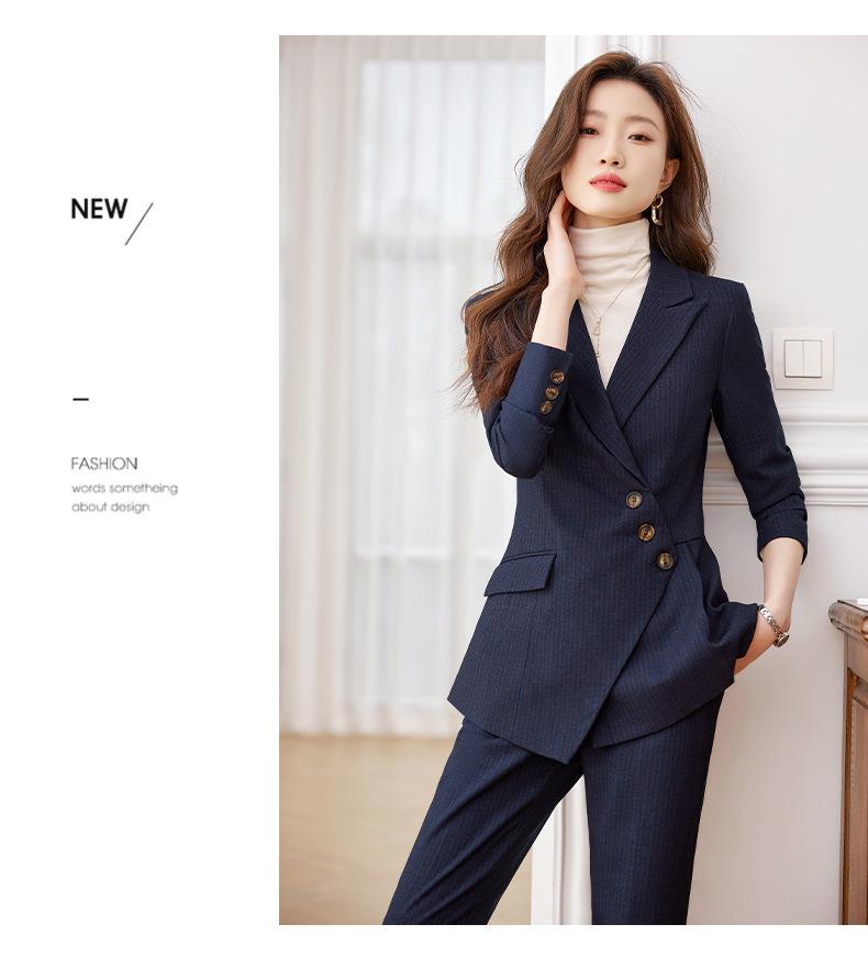 2024 Primavera y otoño nuevo azul manga larga profesional pequeño traje cuello chaqueta mujer pantalones falda traje de dos piezas moda