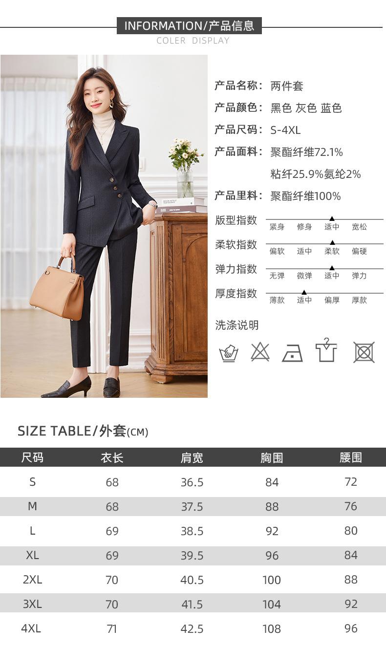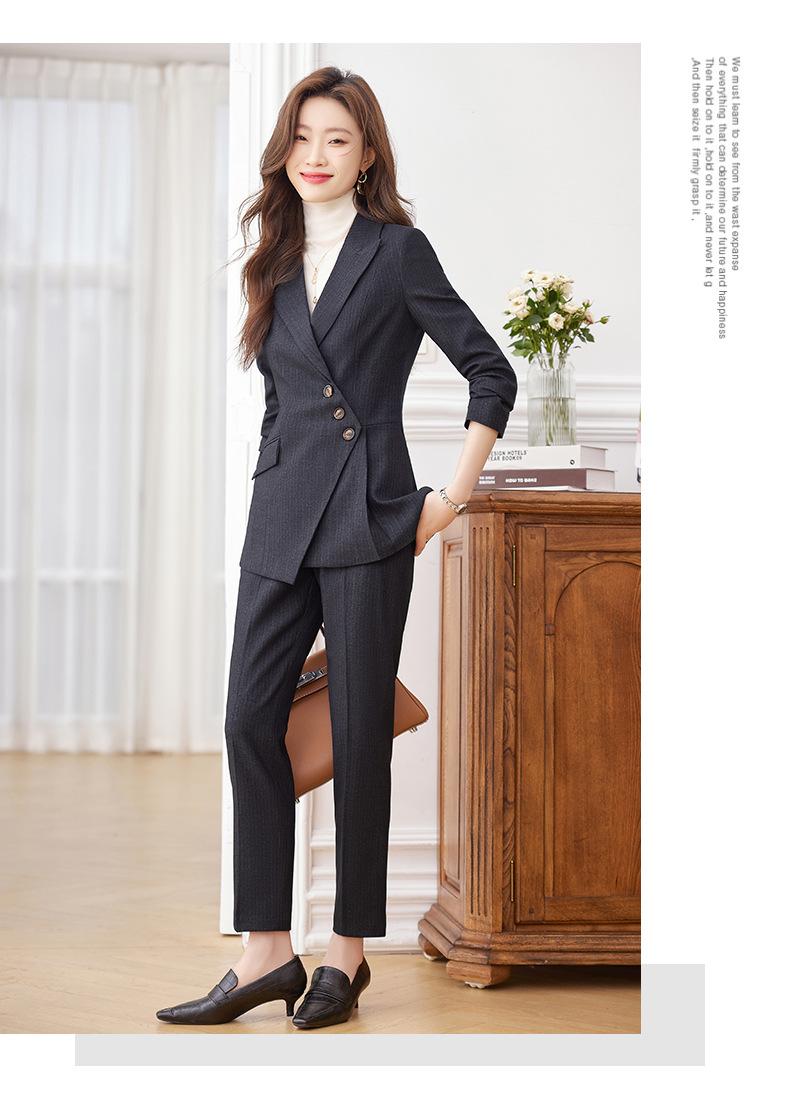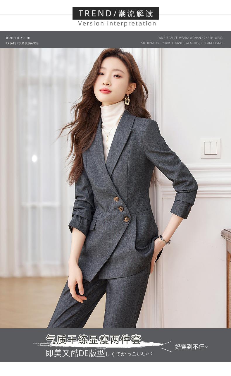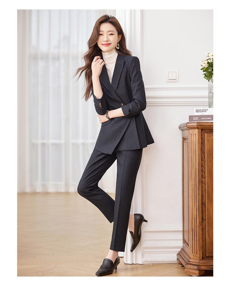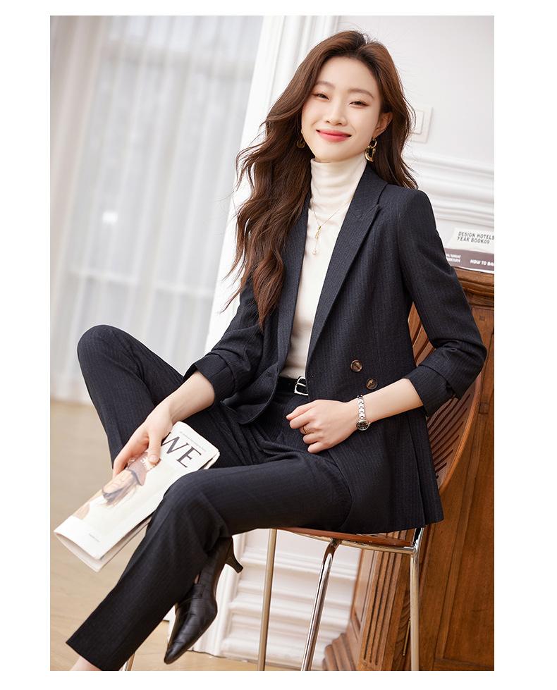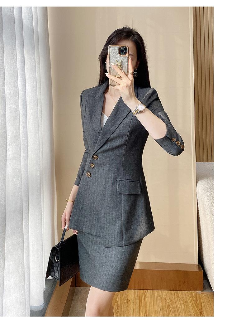 2024 Primavera y otoño nuevo azul manga larga profesional pequeño traje cuello chaqueta mujer pantalones falda traje de dos piezas moda