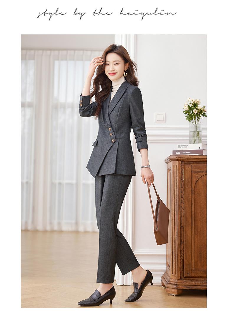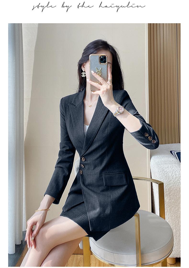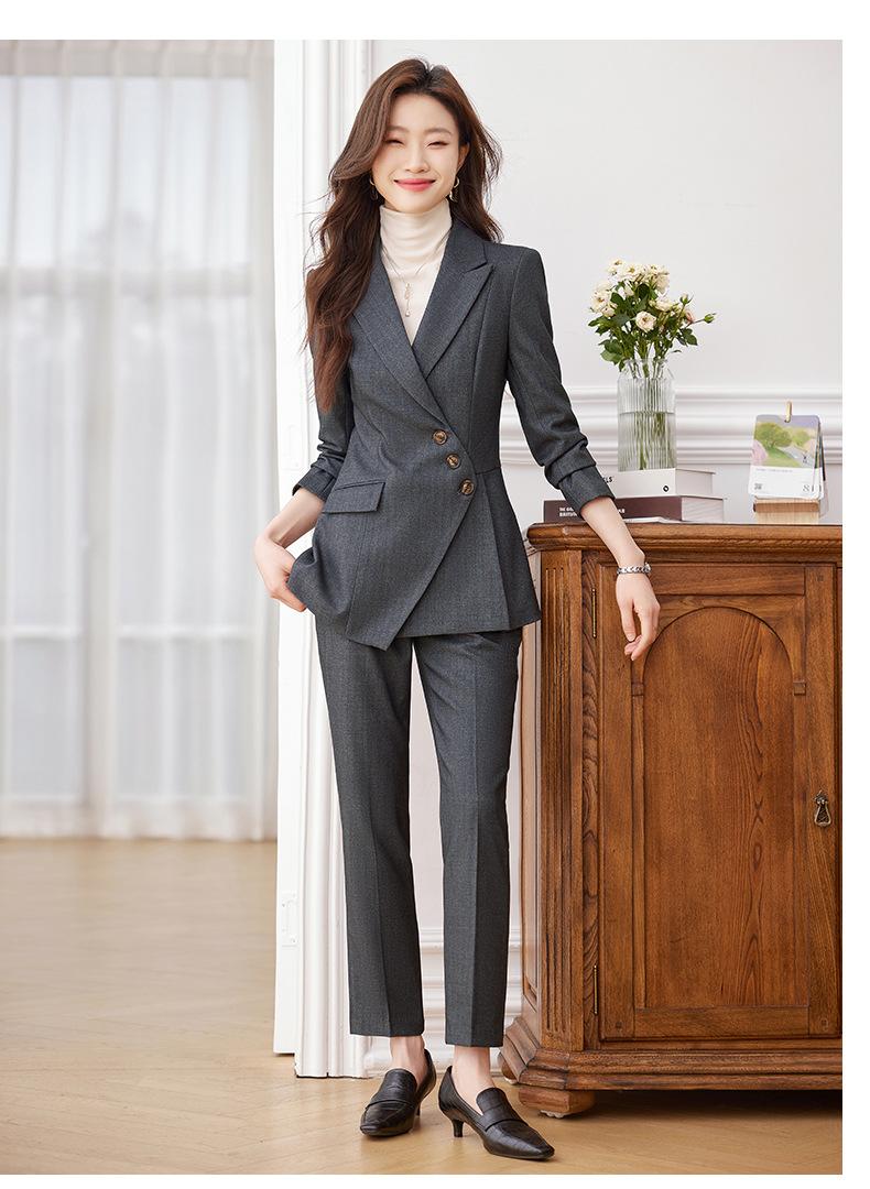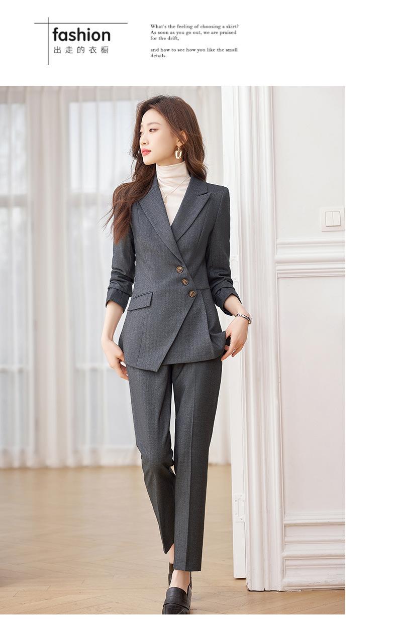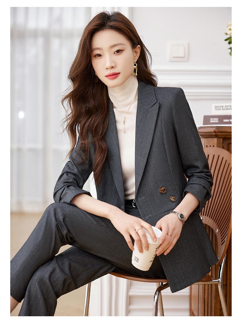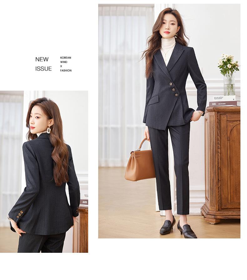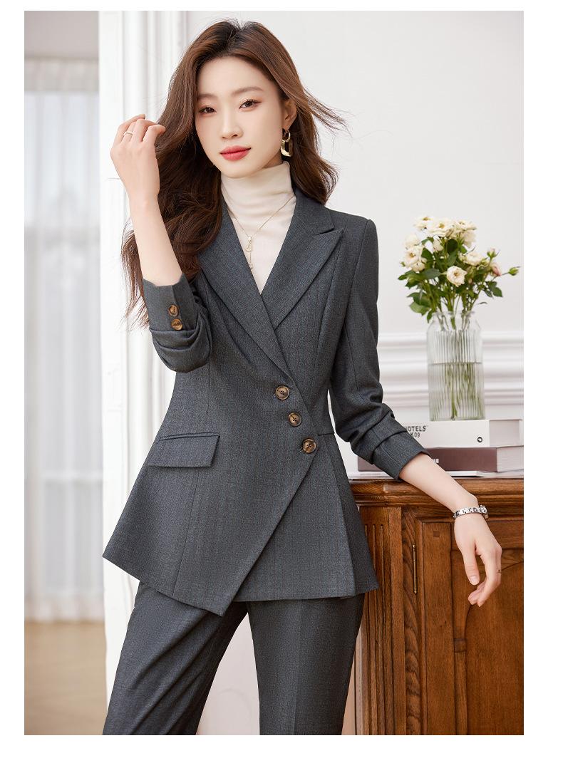 2024 Primavera y otoño nuevo azul manga larga profesional pequeño traje cuello chaqueta mujer pantalones falda traje de dos piezas moda