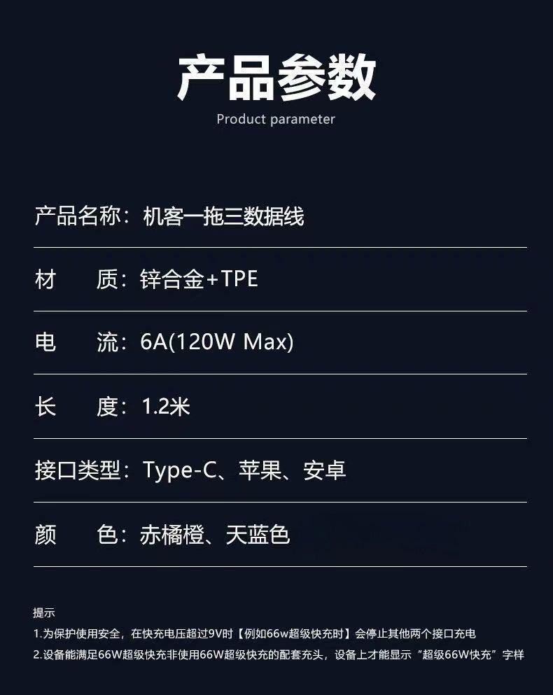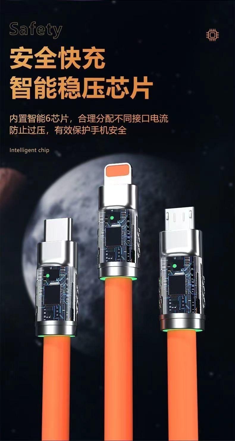 Cable de Datos para Teléfono Móvil 120W Uno a Tres Carga Súper Rápida 6A para Huawei Glory Apple Android Tpye Cable de Carga