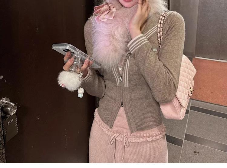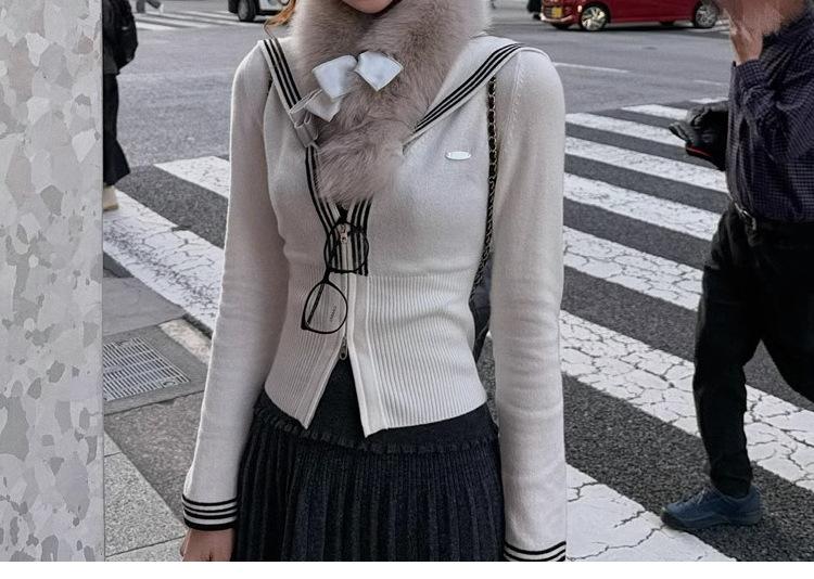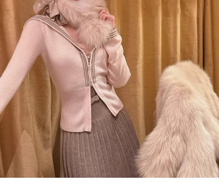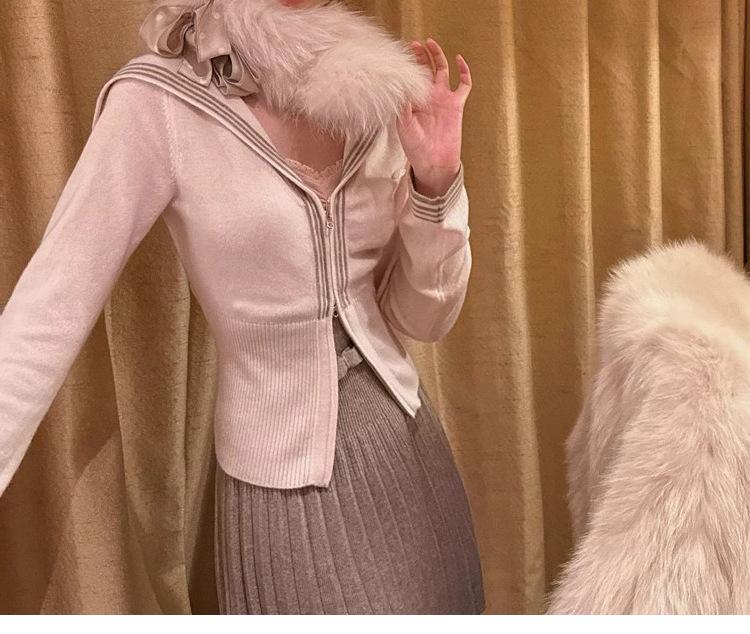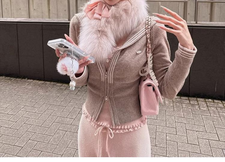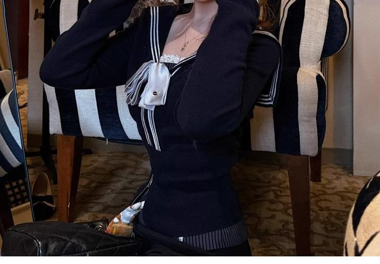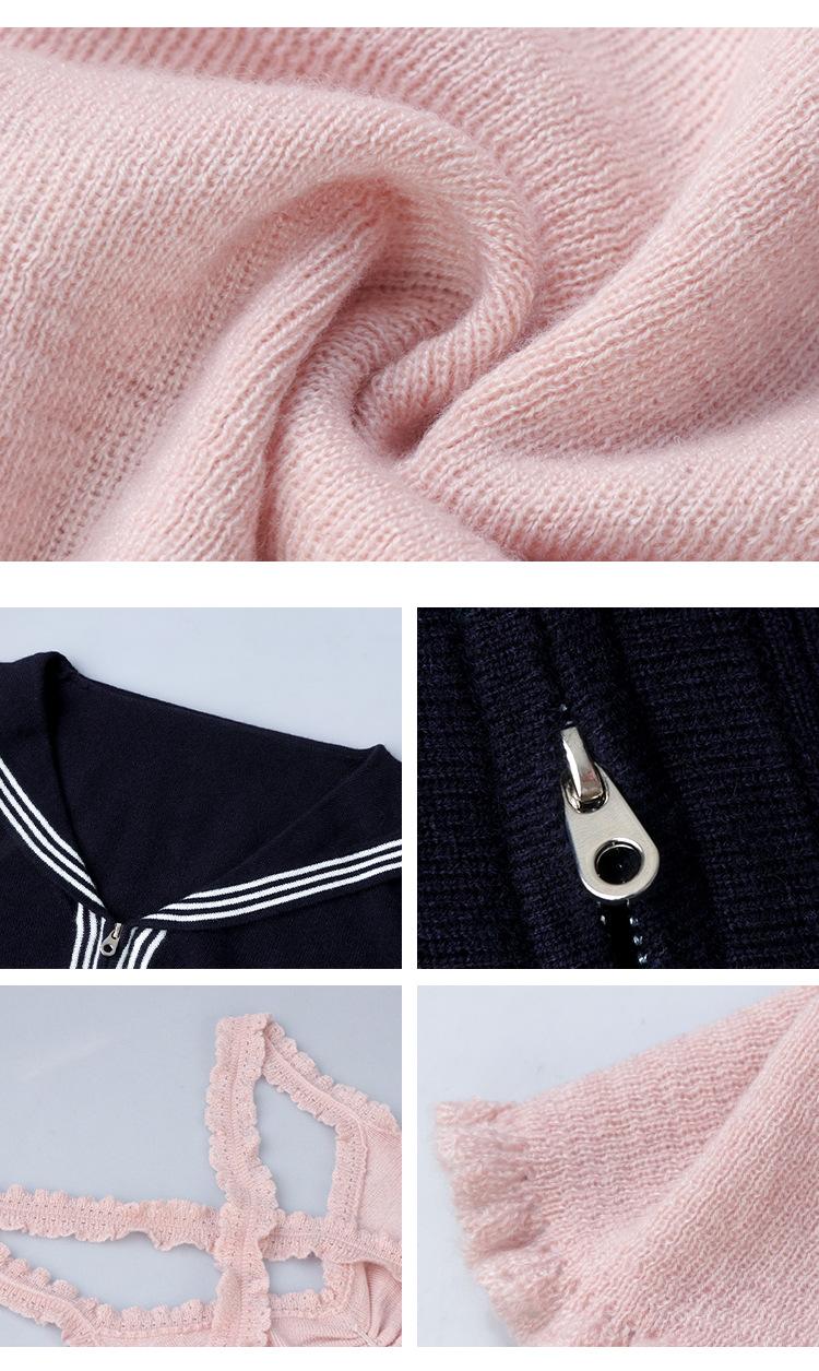 Sailor knitting - navy blue, Sailor knitting - white, Sailor knitting - light pink, Lace sling - pink, Bow buttoned shirt - white