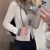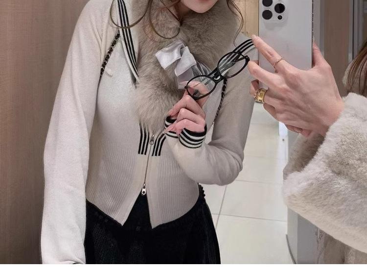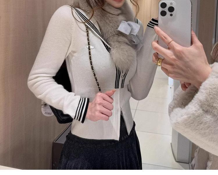 Es difícil no amar un top de punto a rayas de cinco colores con cuello redondo y doble cremallera.