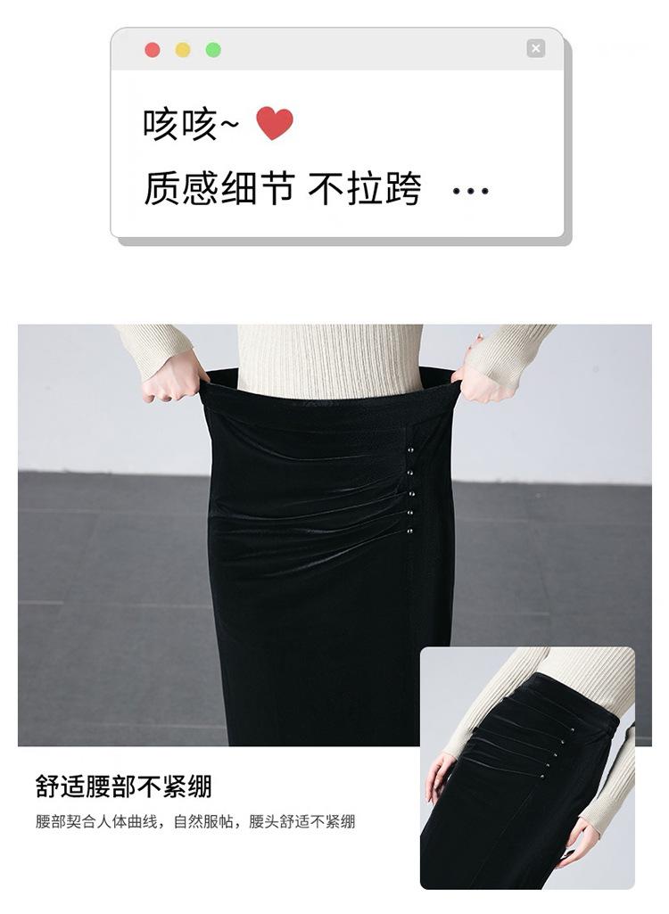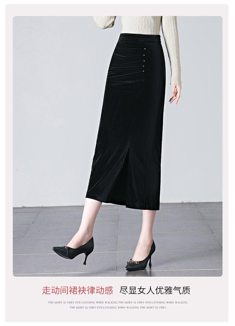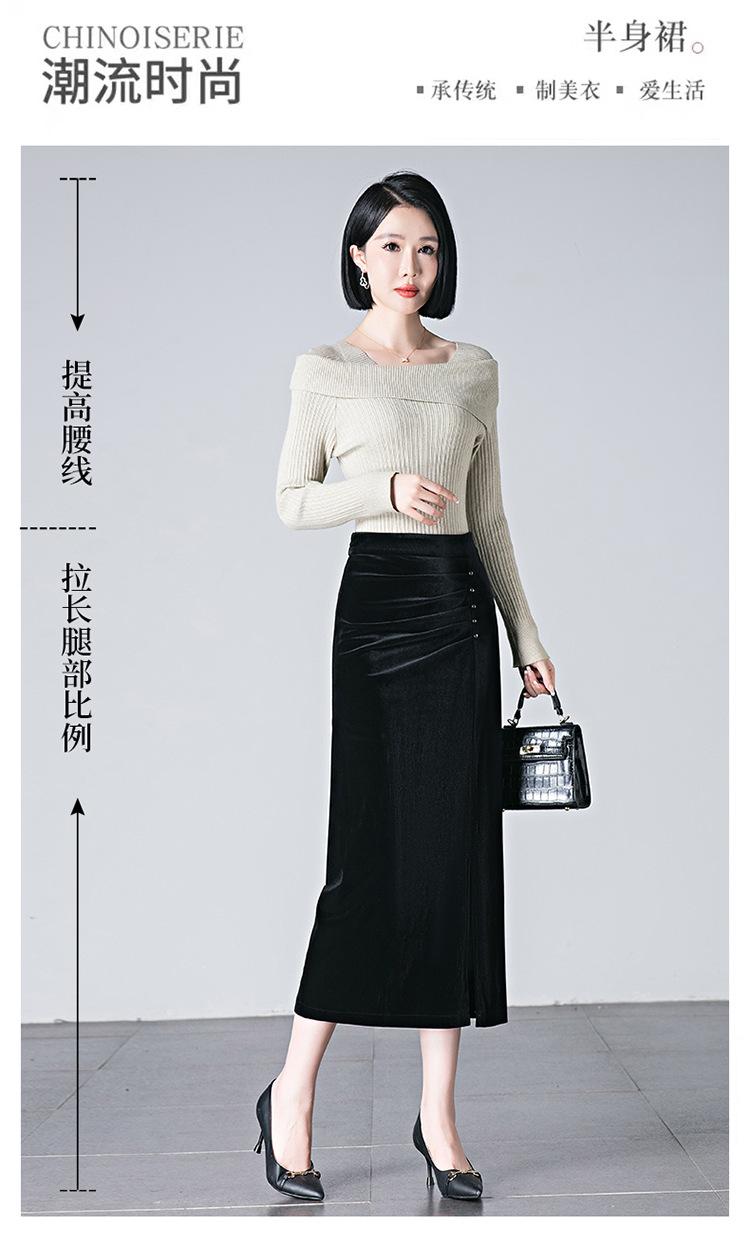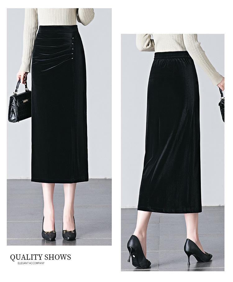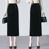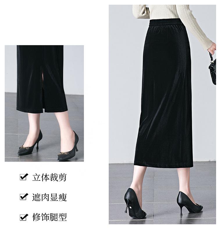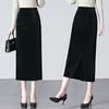 Falda de cola de pez negra de terciopelo dorado para mujer, primavera y otoño 2025, elegante, adelgazante, de longitud media, de un solo paso.
