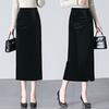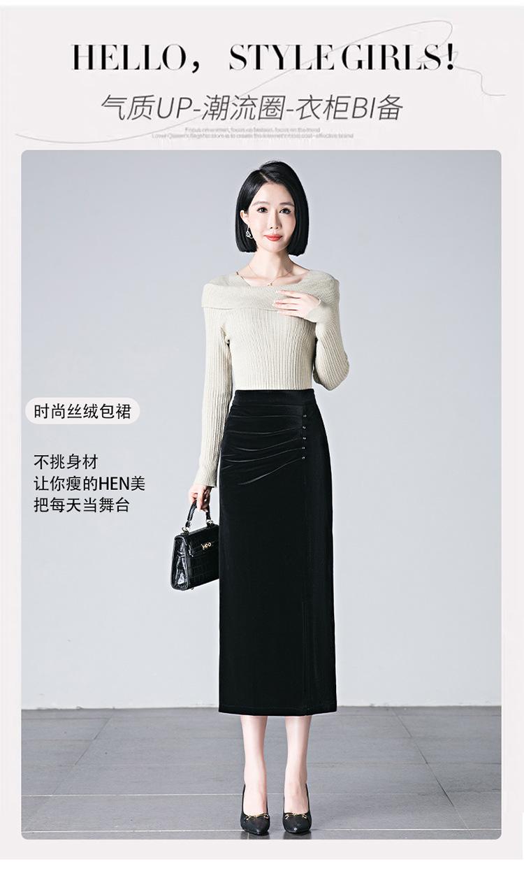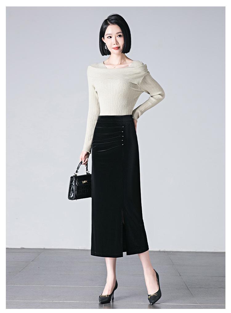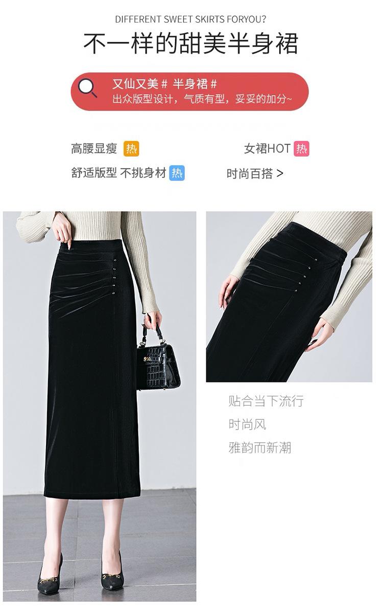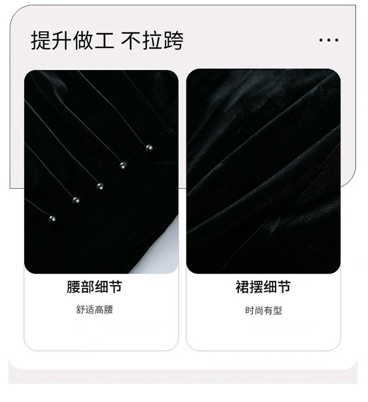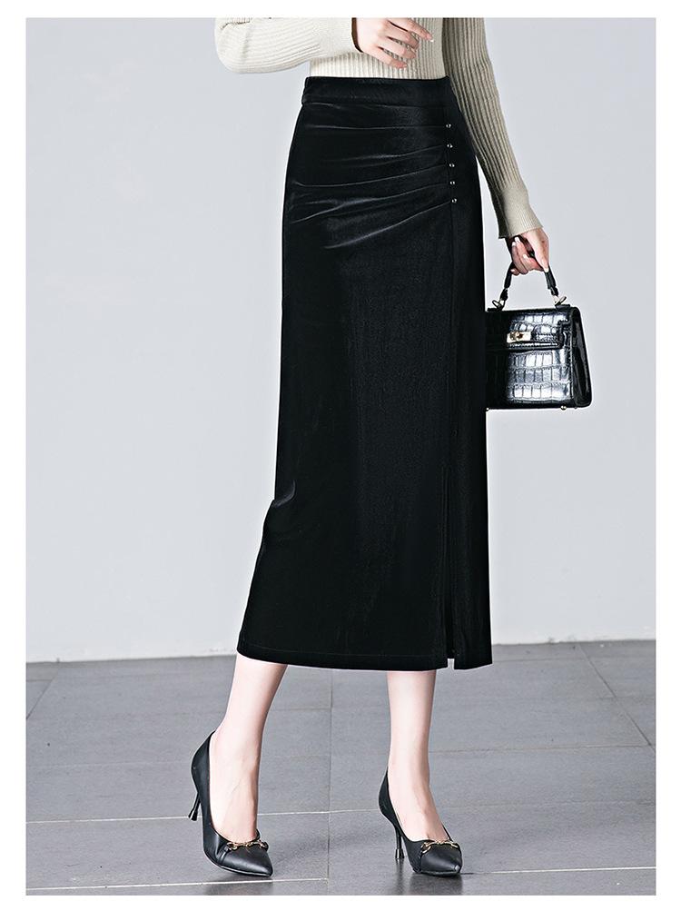 Falda de cola de pez negra de terciopelo dorado para mujer, primavera y otoño 2025, elegante, adelgazante, de longitud media, de un solo paso.