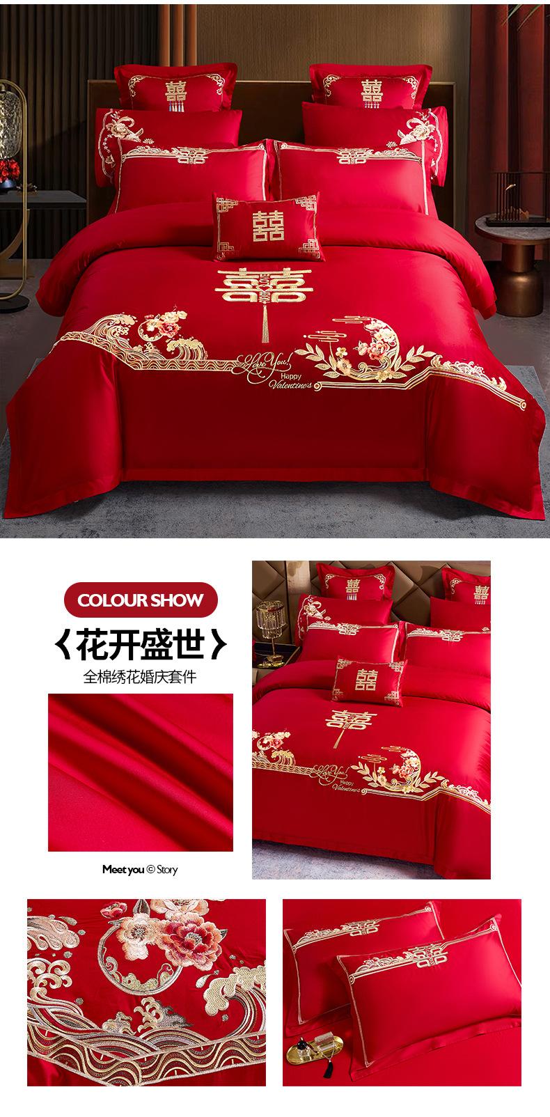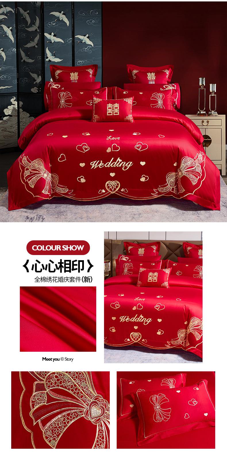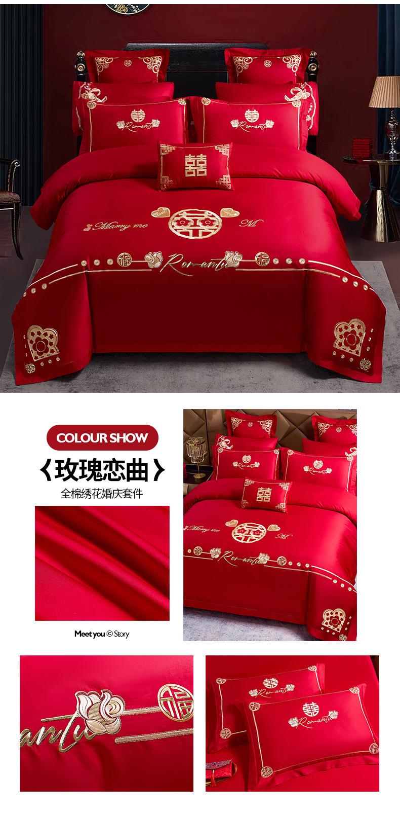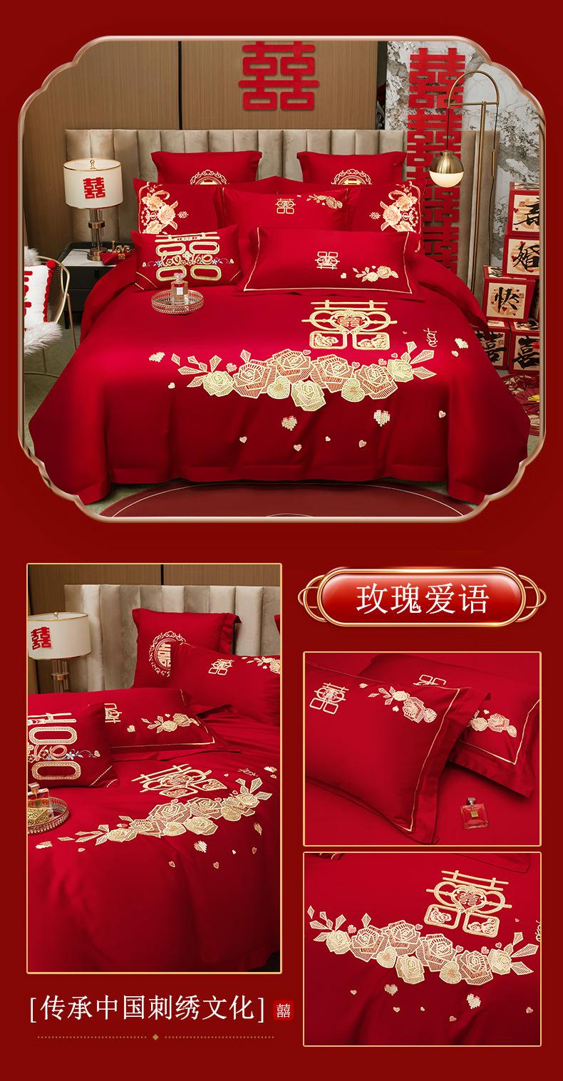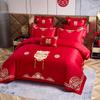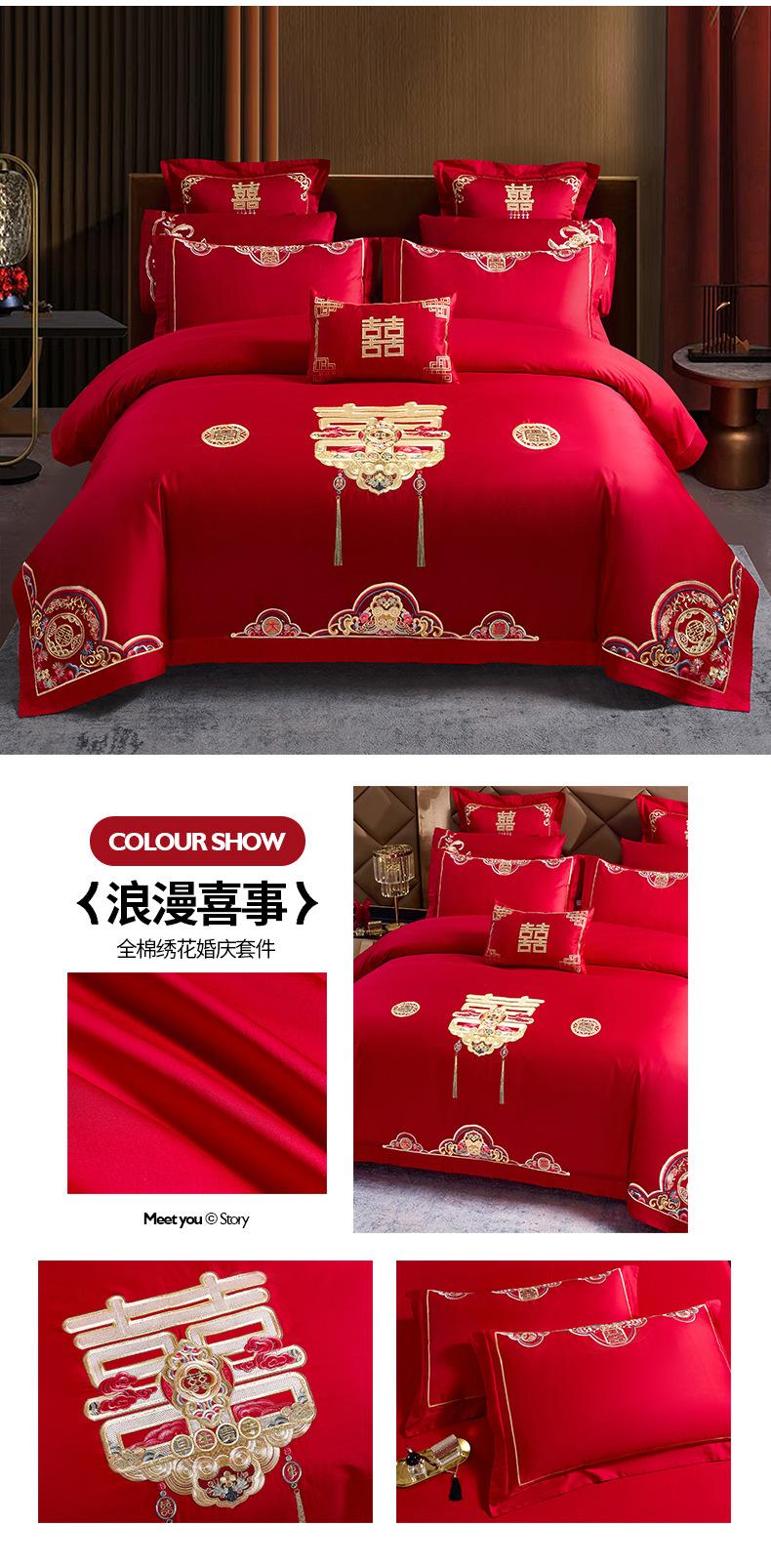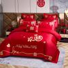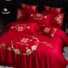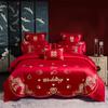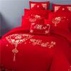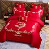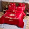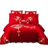 Boda de algodón de cuatro piezas de satén bordado rojo boda boda boda boda boda boda seis piezas ropa de cama al por mayor