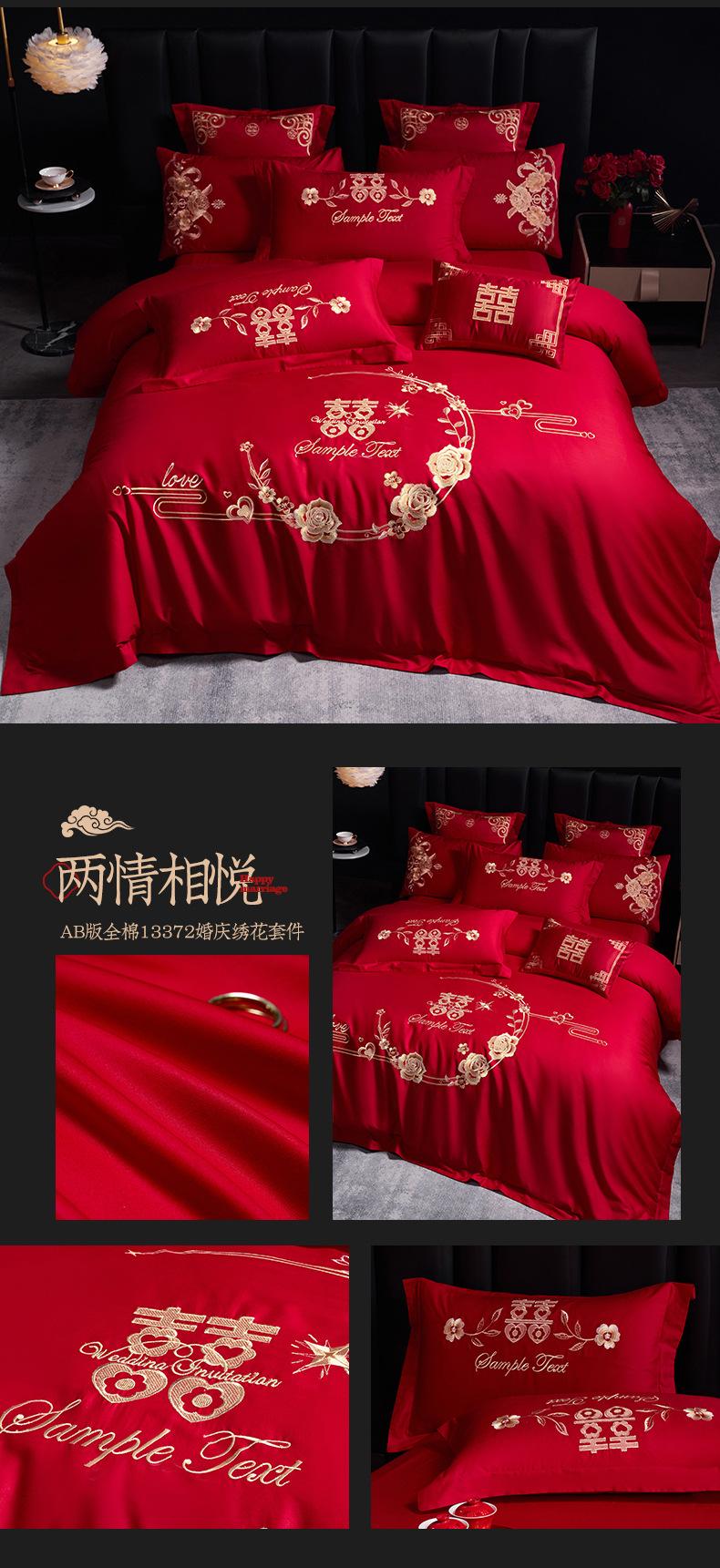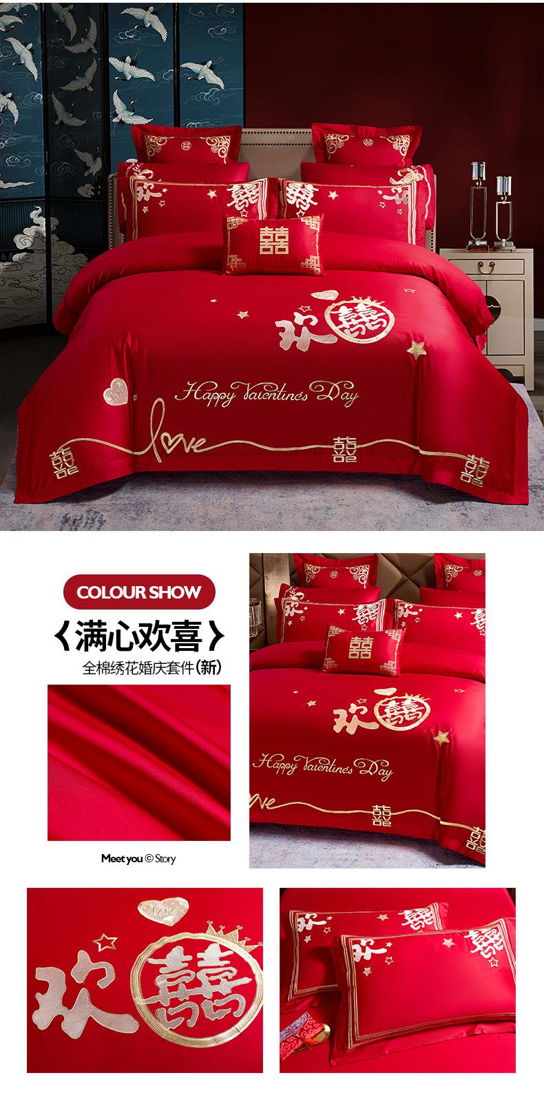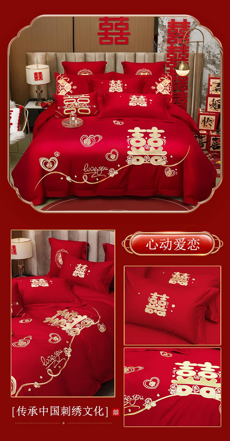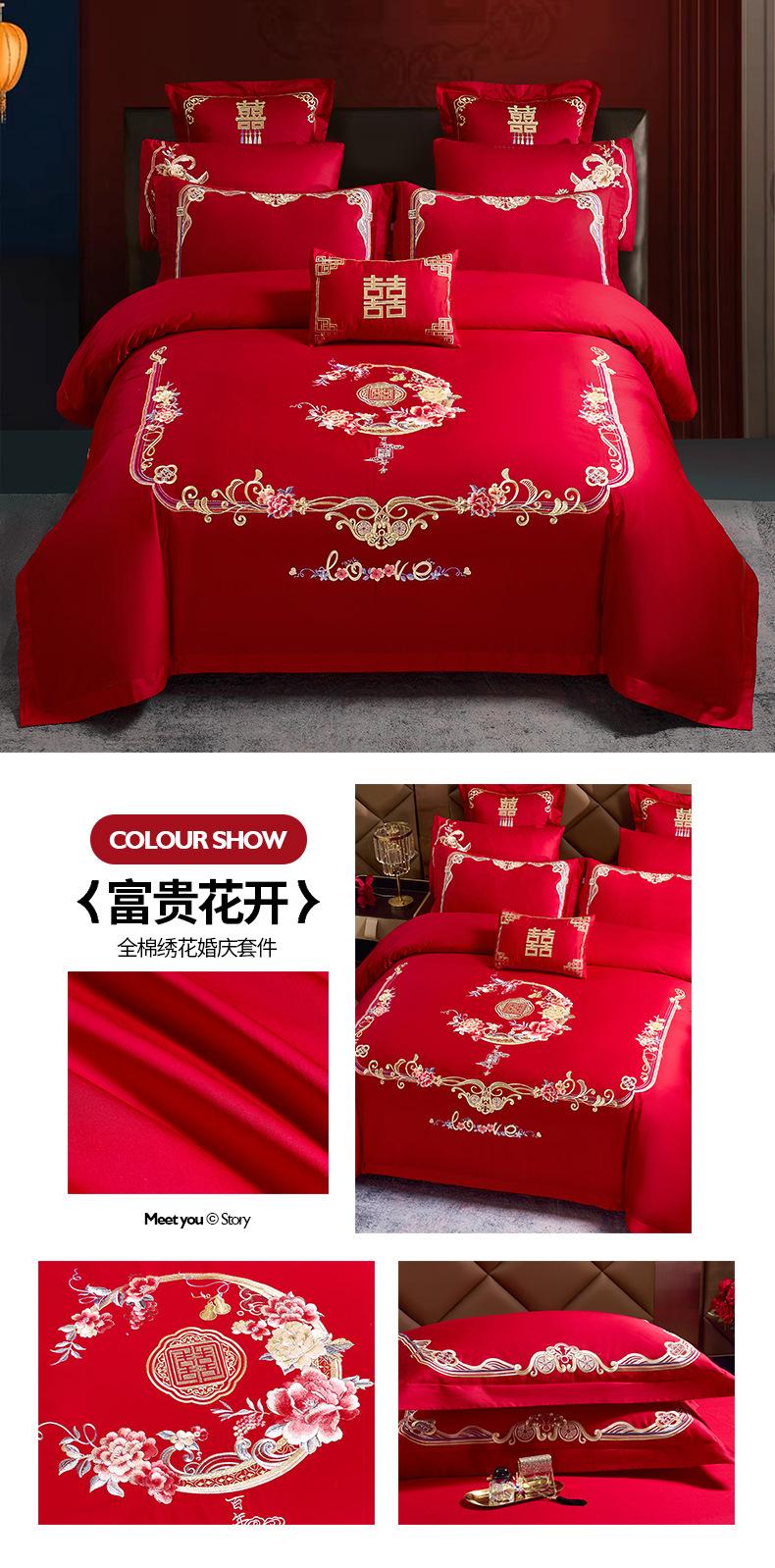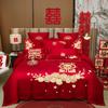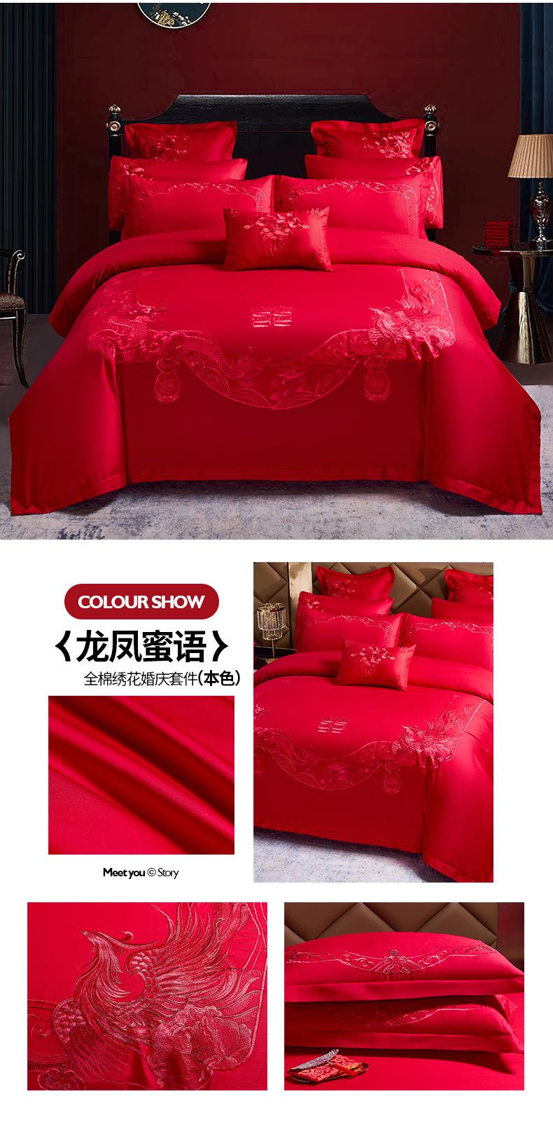 Boda de algodón de cuatro piezas de satén bordado rojo boda boda boda boda boda boda seis piezas ropa de cama al por mayor