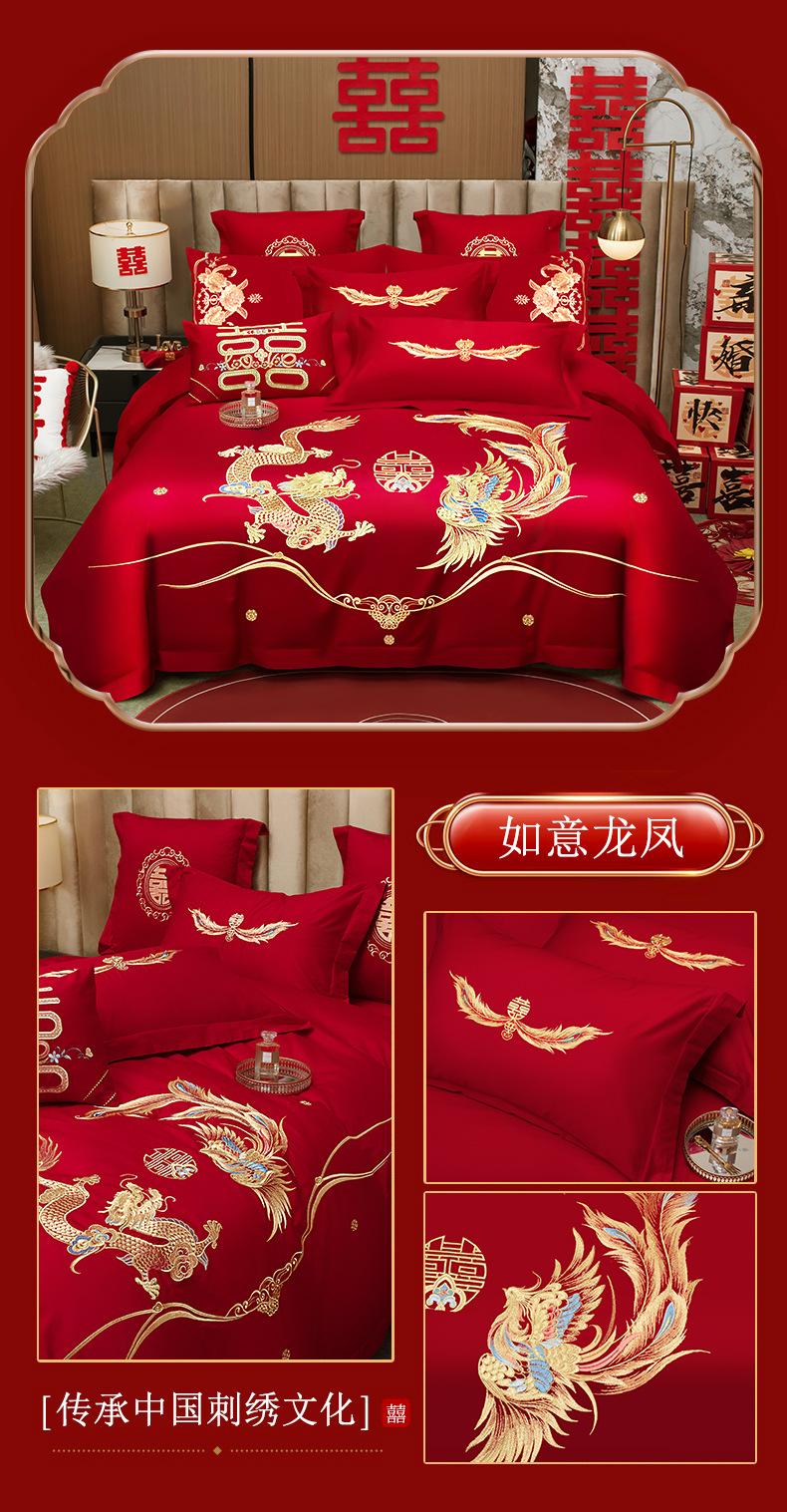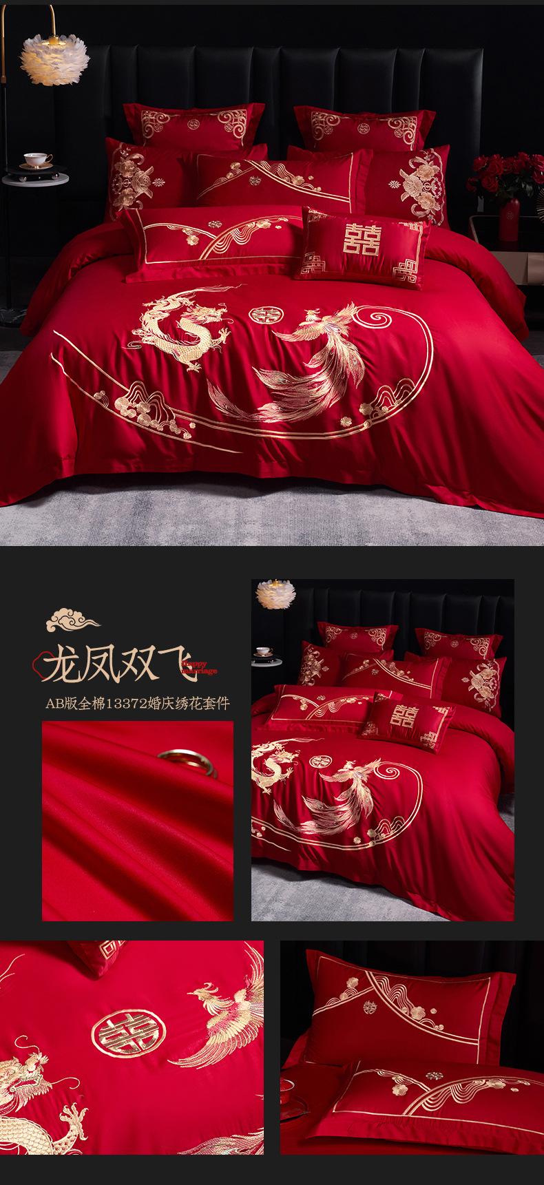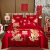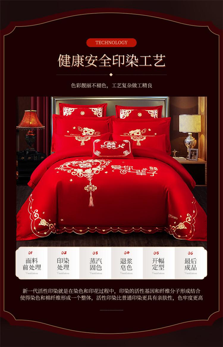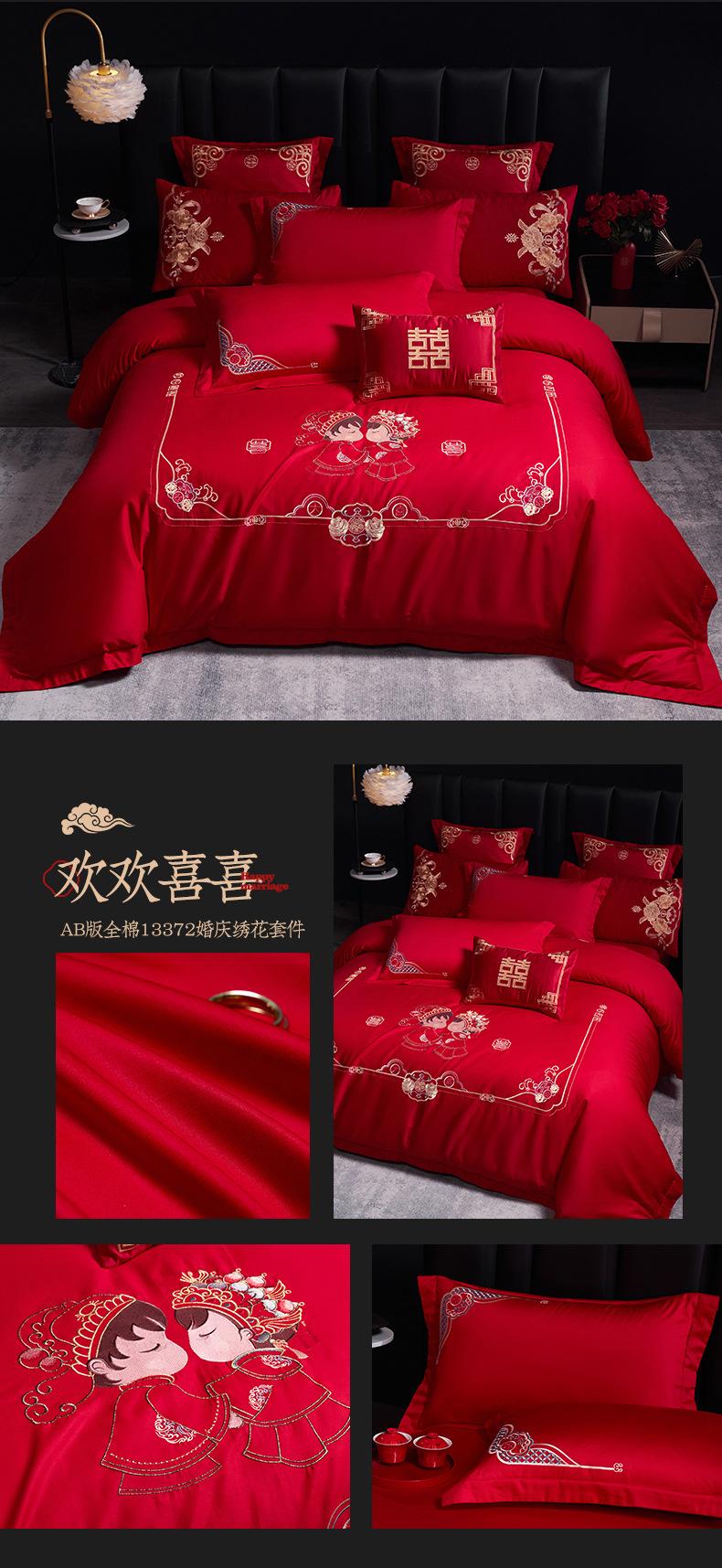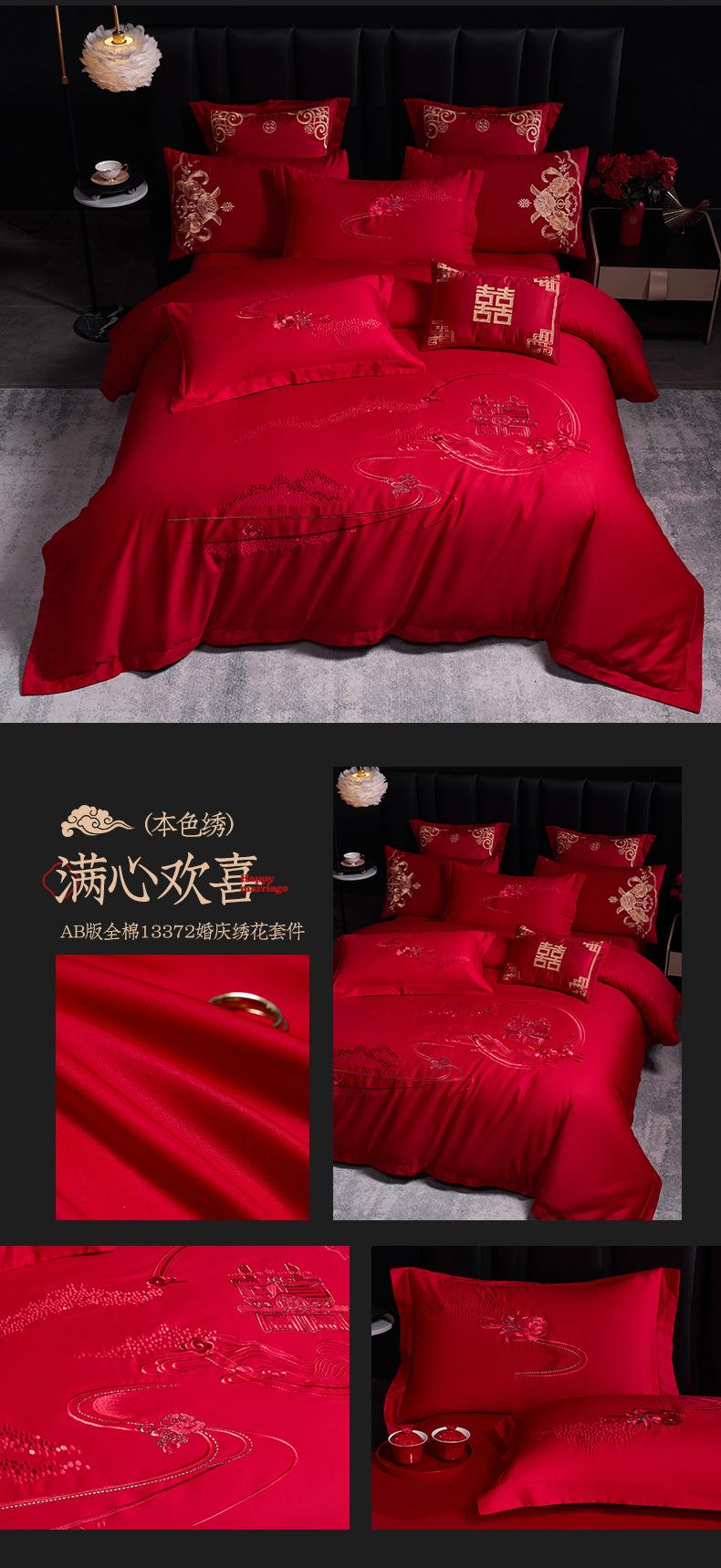 Boda de algodón de cuatro piezas de satén bordado rojo boda boda boda boda boda boda seis piezas ropa de cama al por mayor