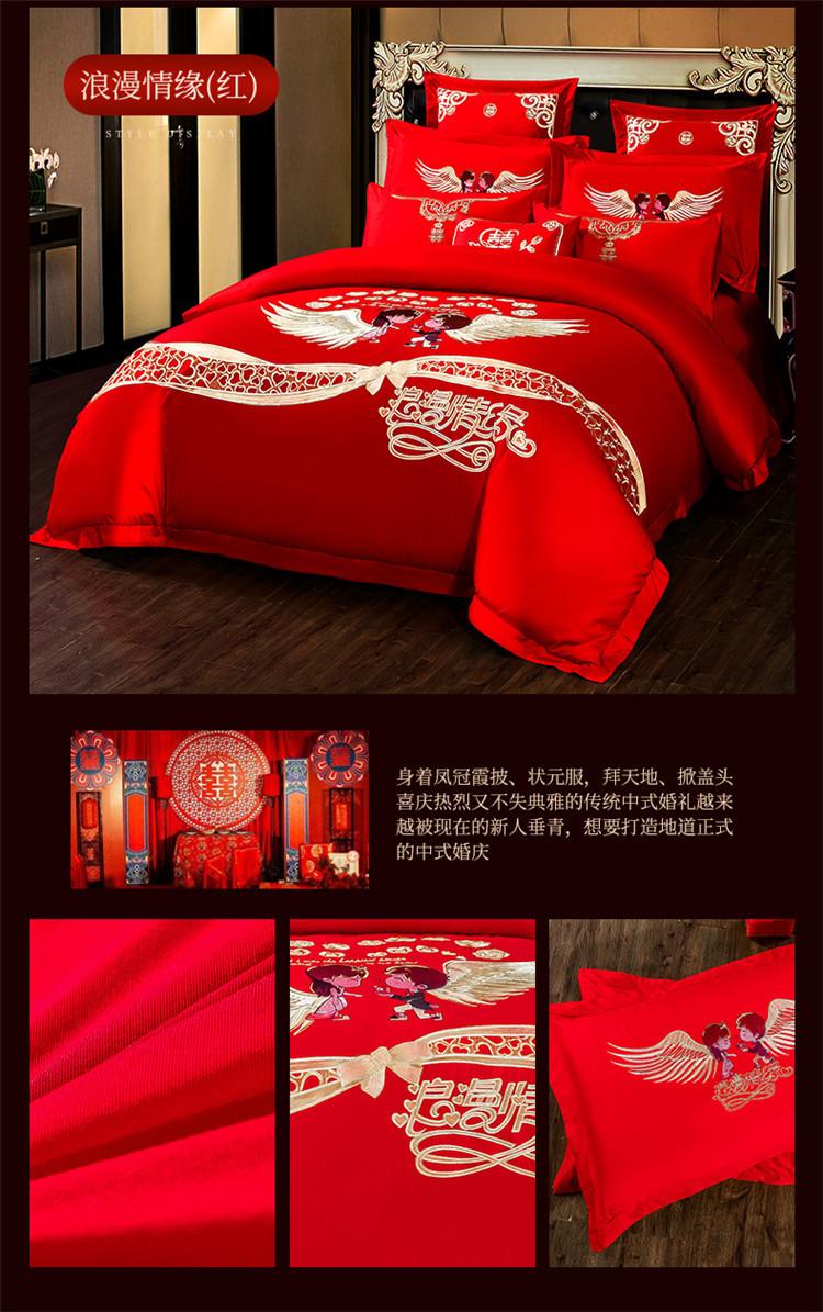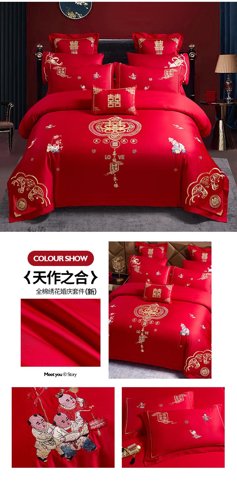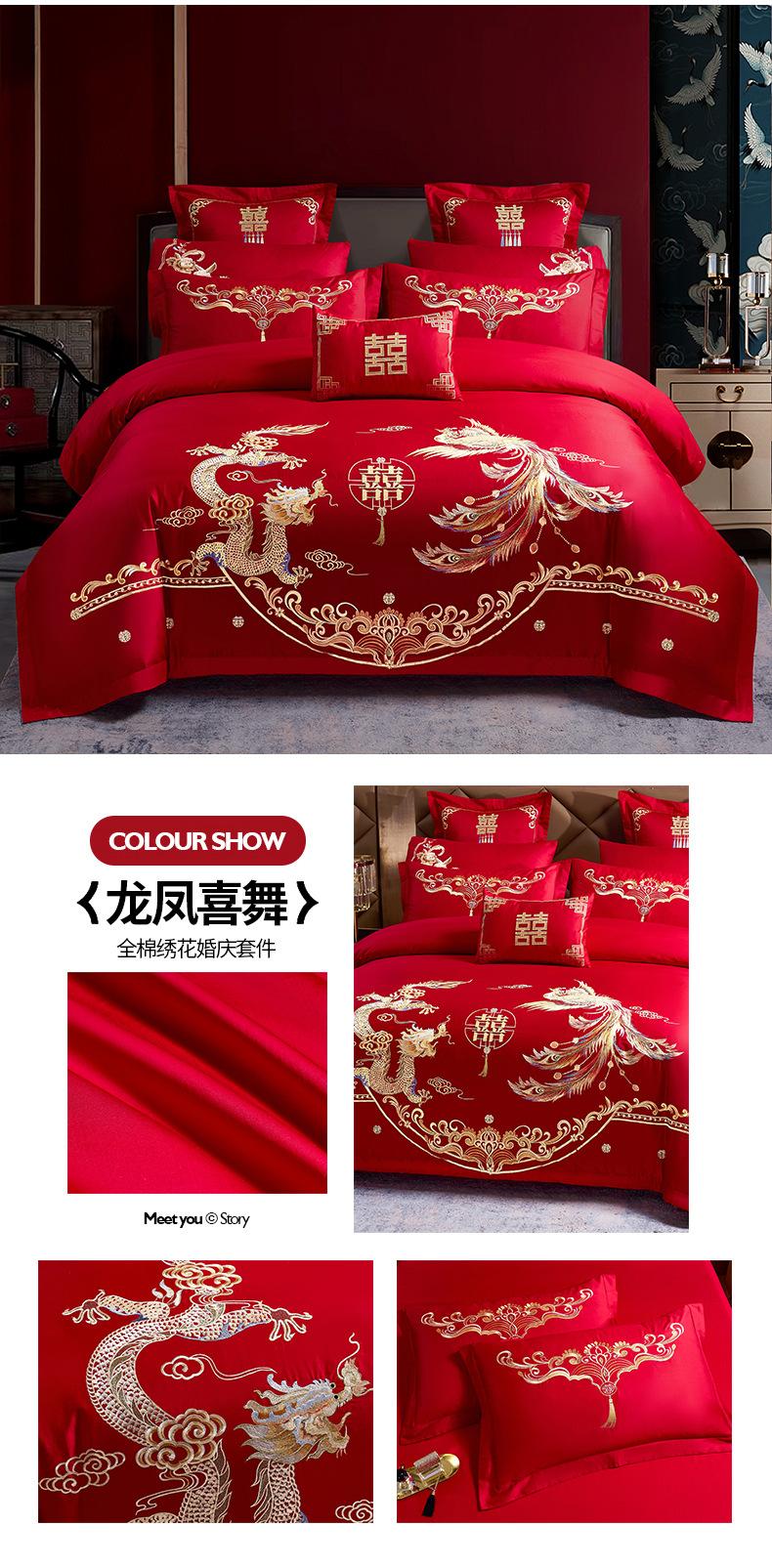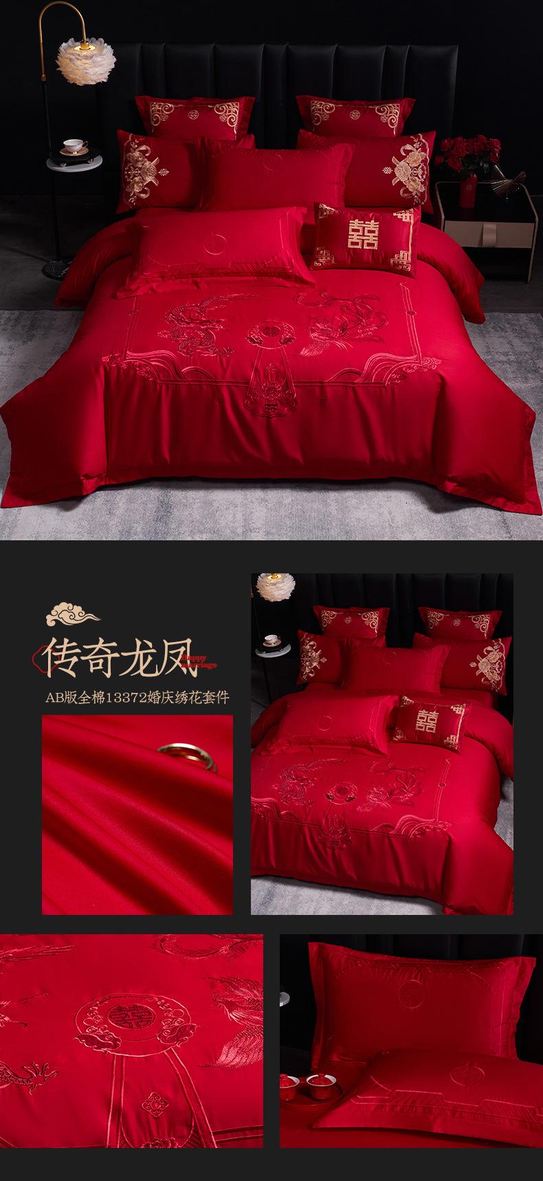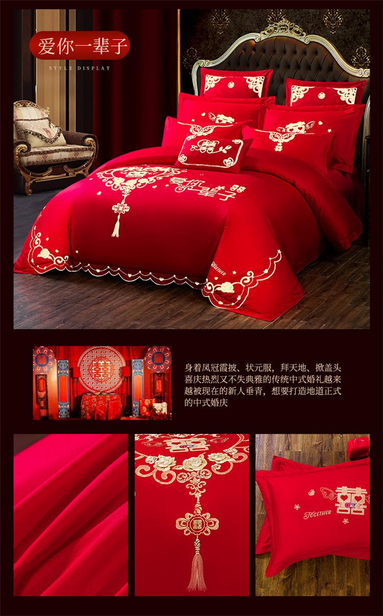 Boda de algodón de cuatro piezas de satén bordado rojo boda boda boda boda boda boda seis piezas ropa de cama al por mayor