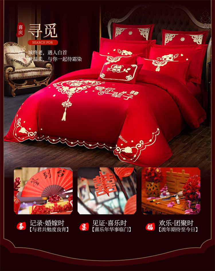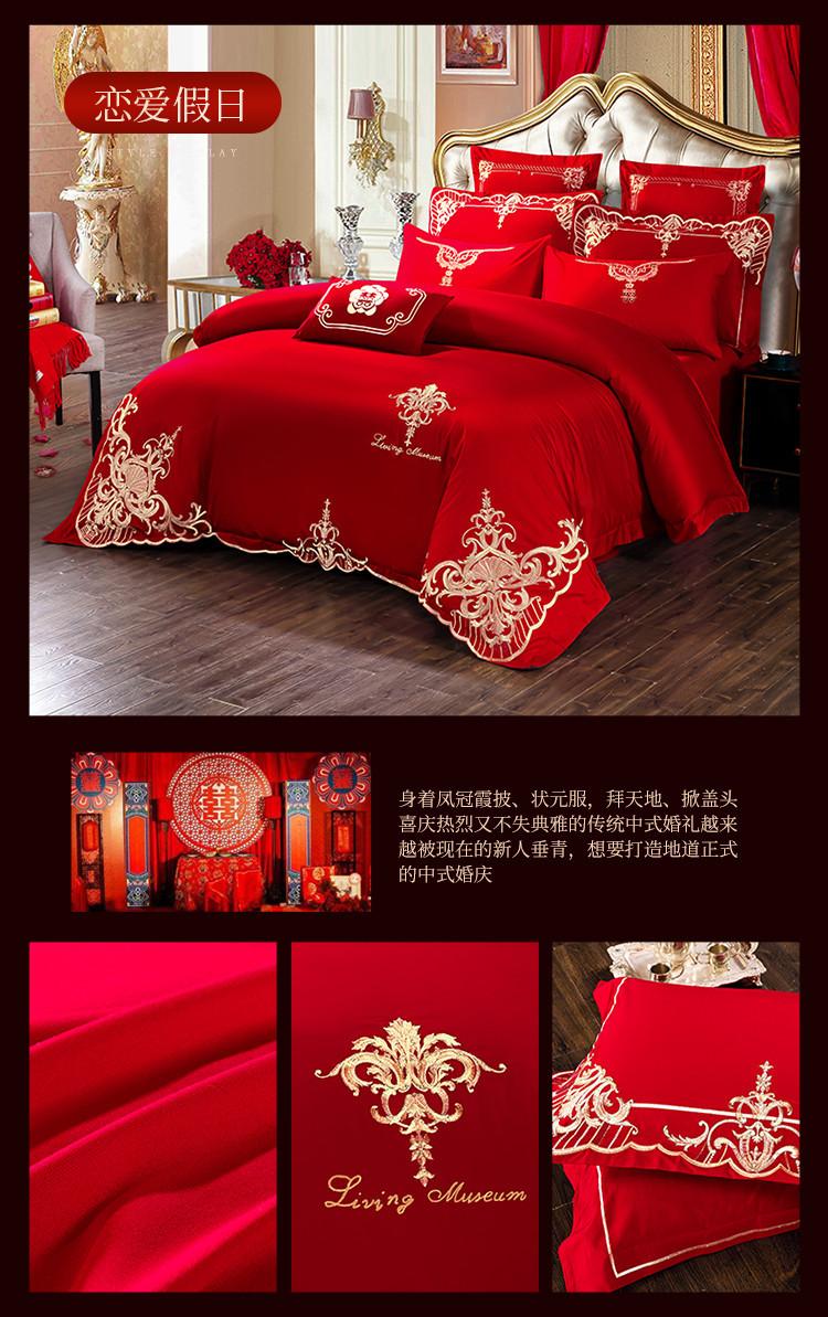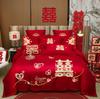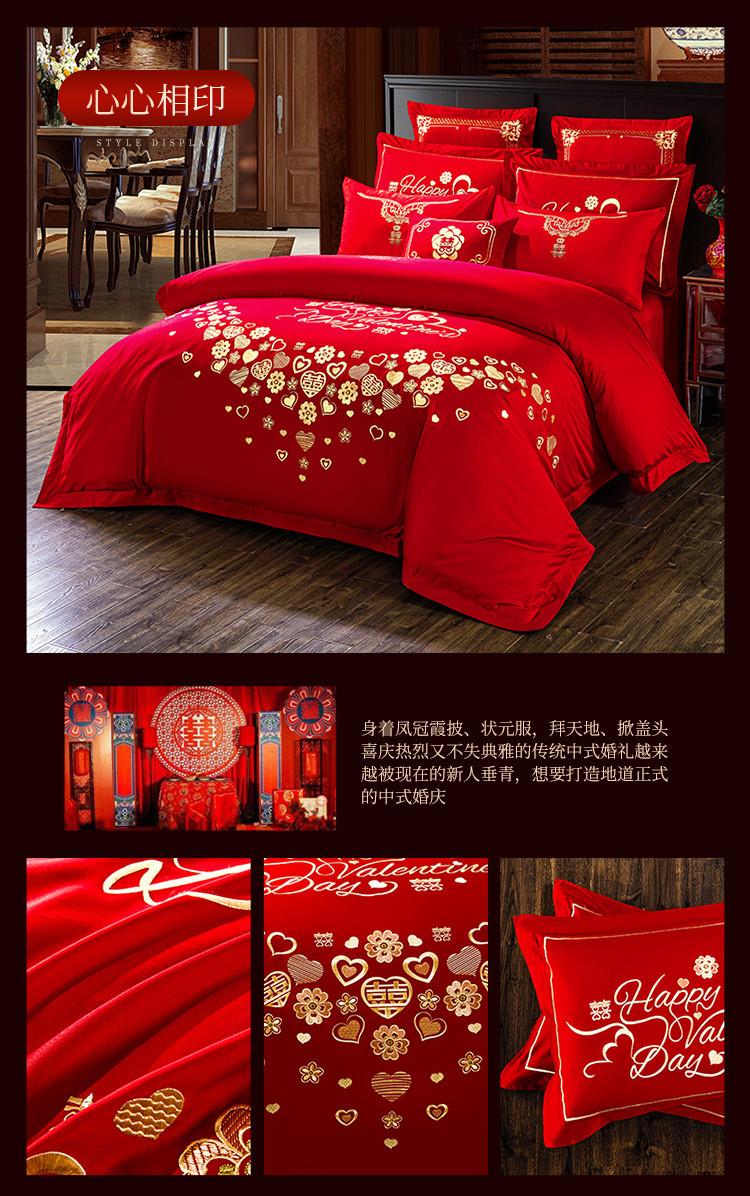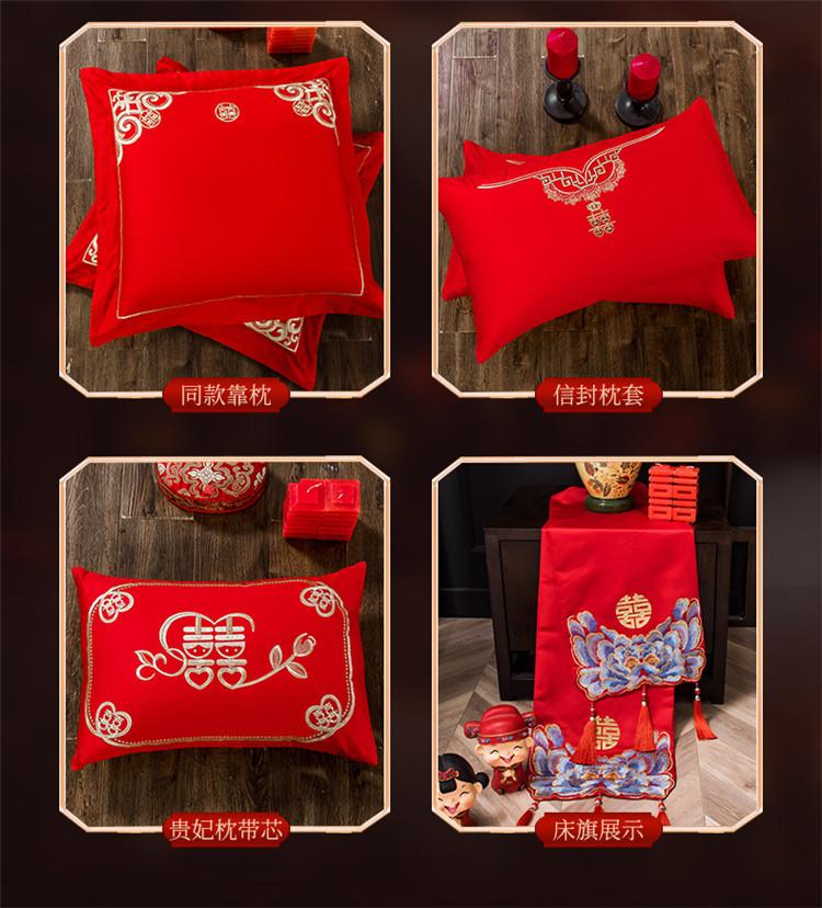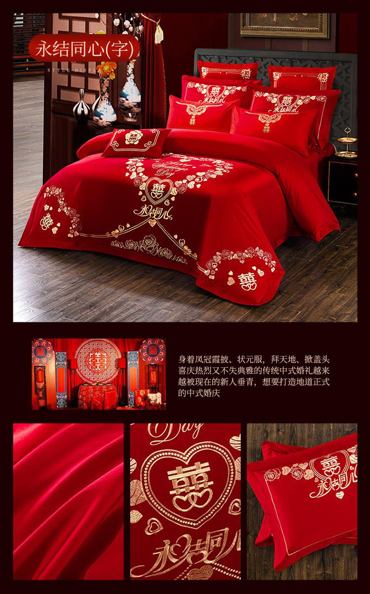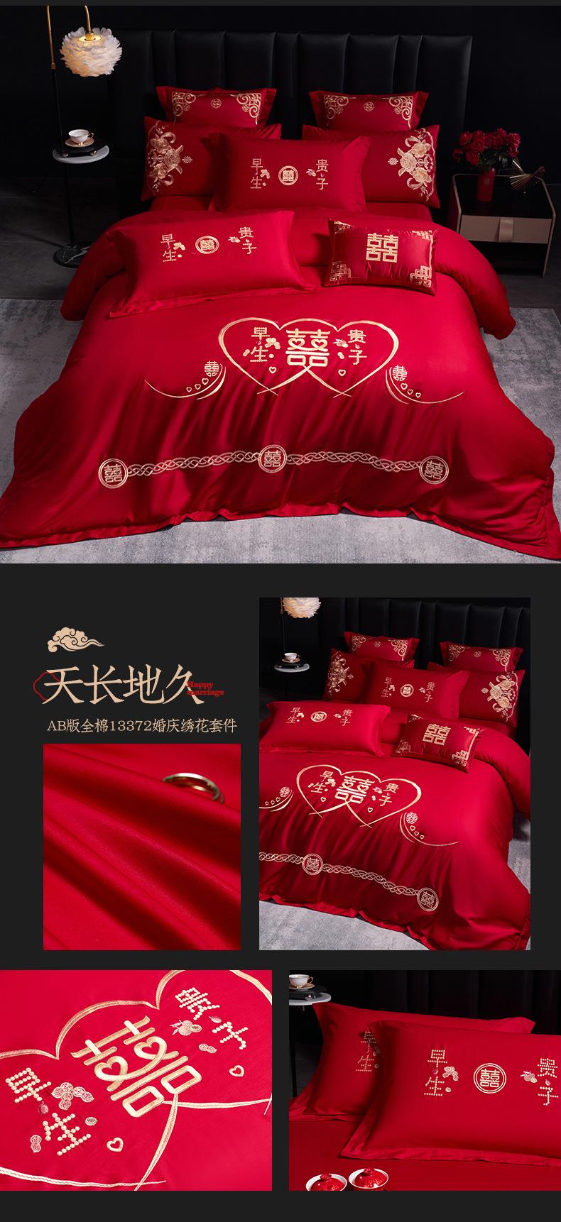Boda de algodón de cuatro piezas de satén bordado rojo boda boda boda boda boda boda seis piezas ropa de cama al por mayor