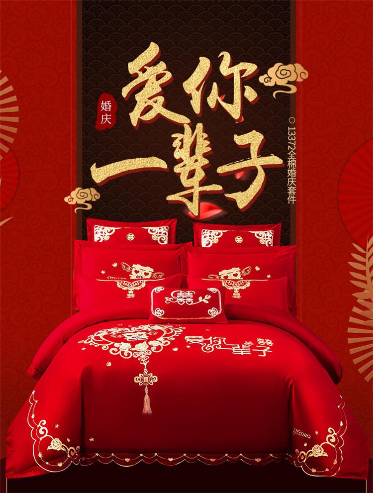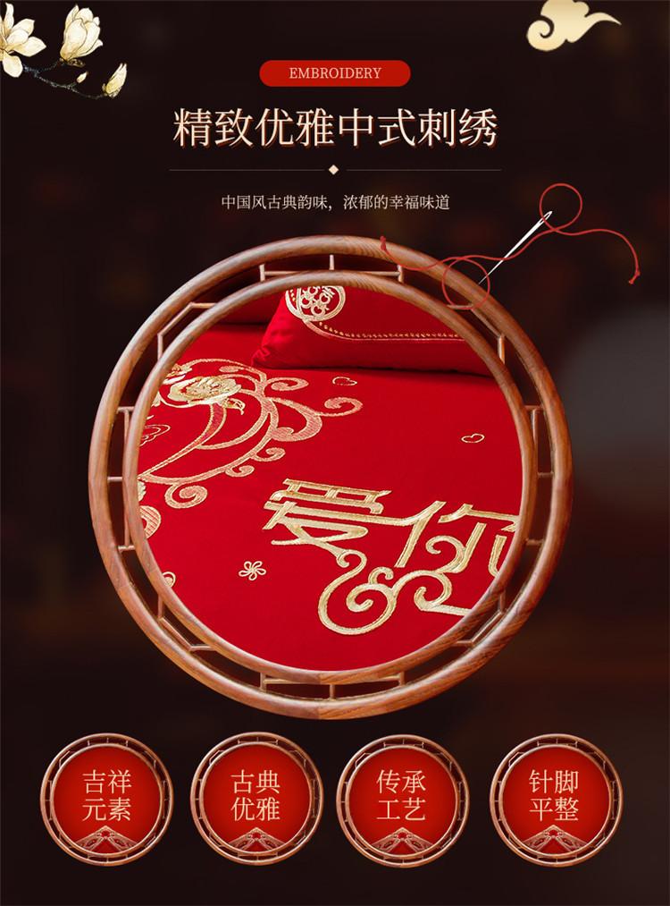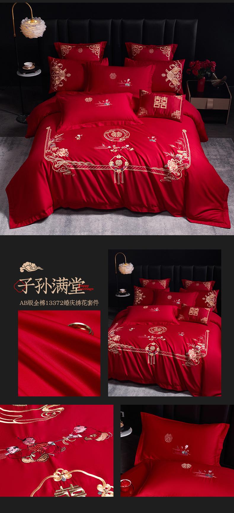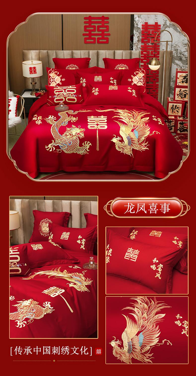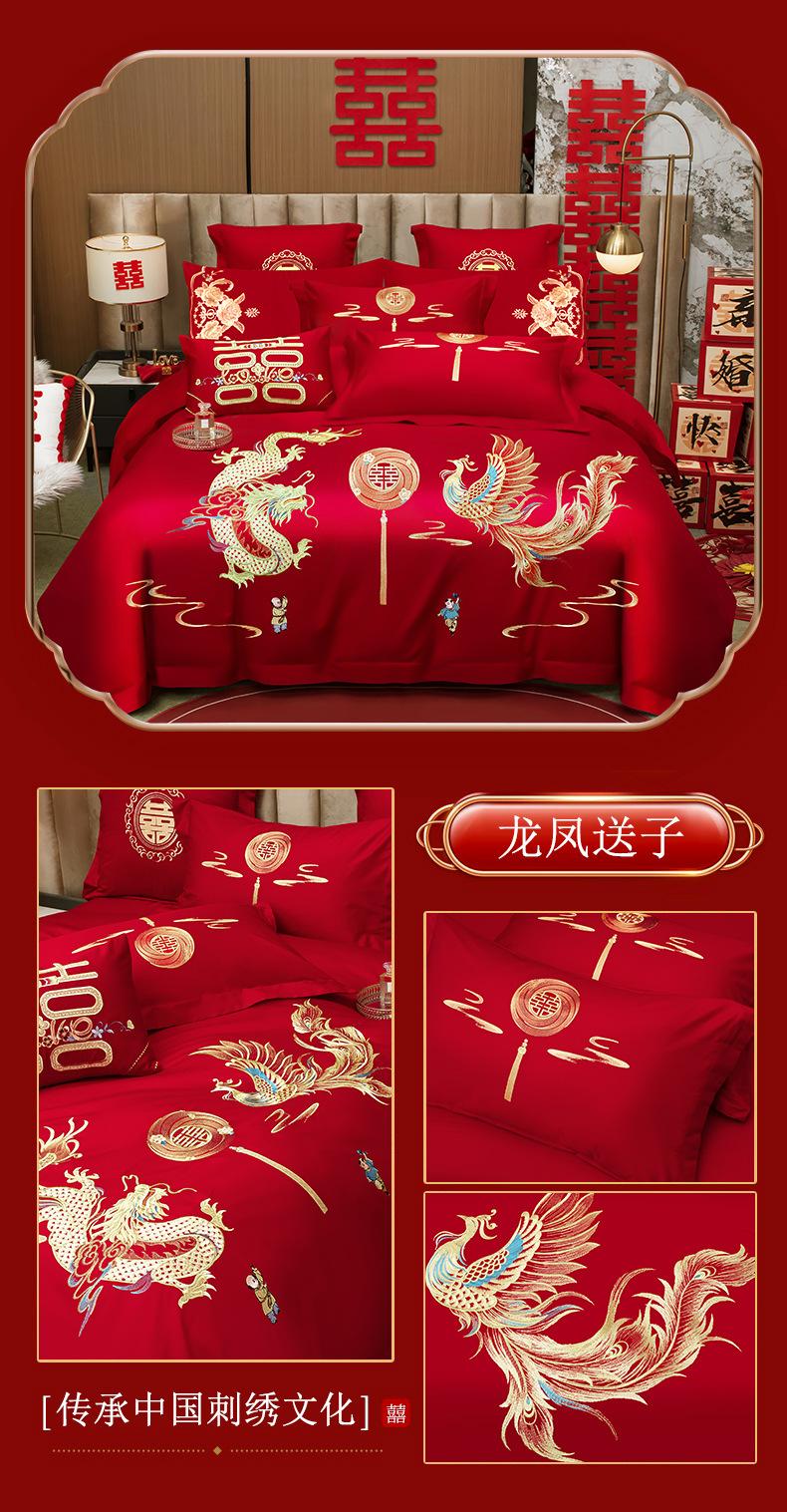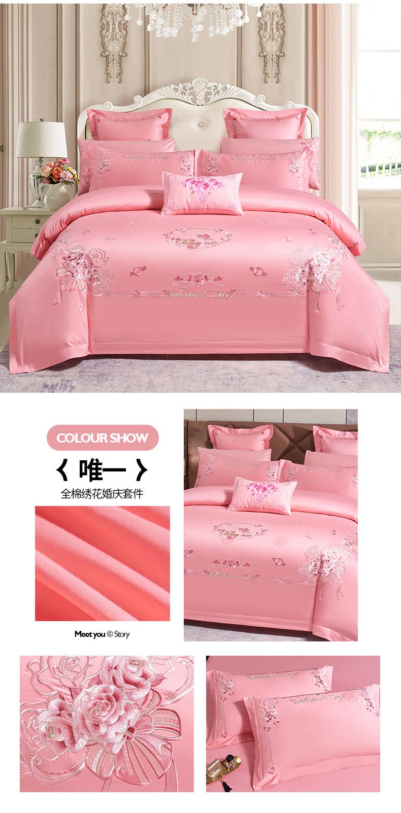 Boda de algodón de cuatro piezas de satén bordado rojo boda boda boda boda boda boda seis piezas ropa de cama al por mayor