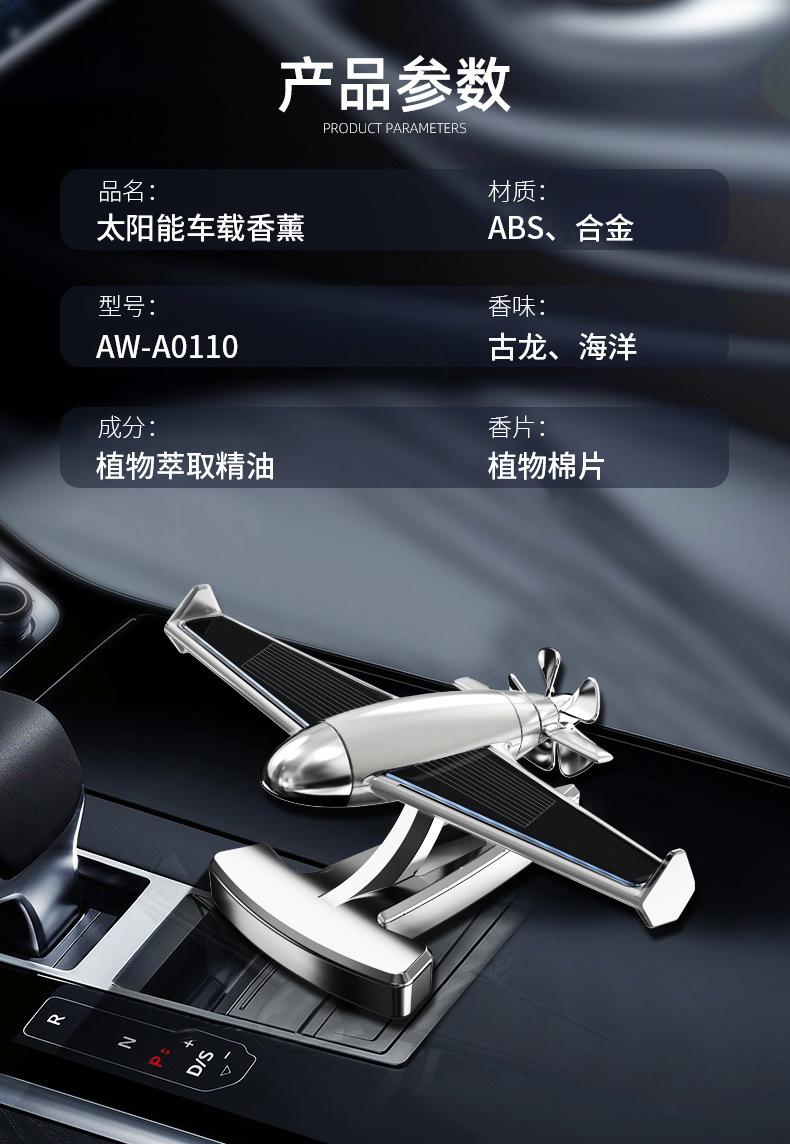 Nuevo coche solar avión aromaterapia coche giratorio perfume fragancia ligera duradera adornos de aromaterapia para coche