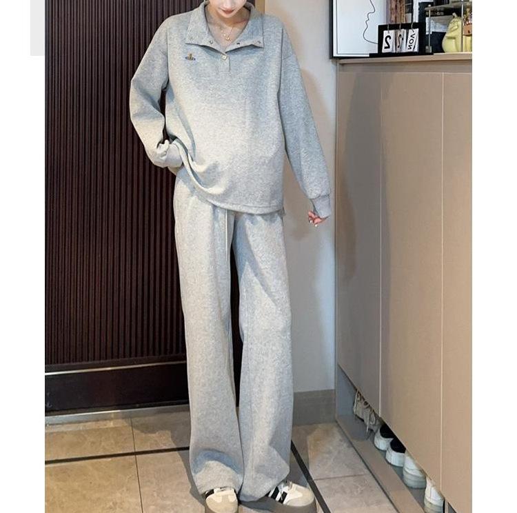 Conjunto de dos piezas de ropa de maternidad para mujer embarazada, pantalones y blusa holgados ajustados a la moda, primavera y otoño