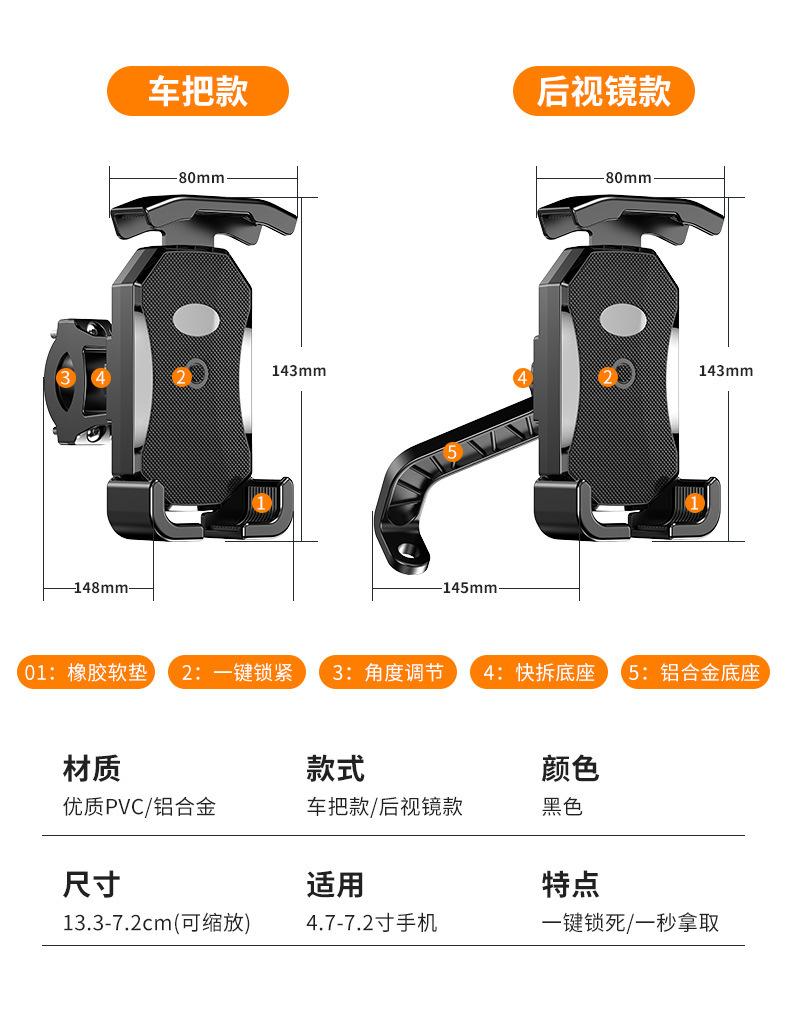 Handlebar style, Rearview mirror plastic rod, Rearview mirror alloy rod
