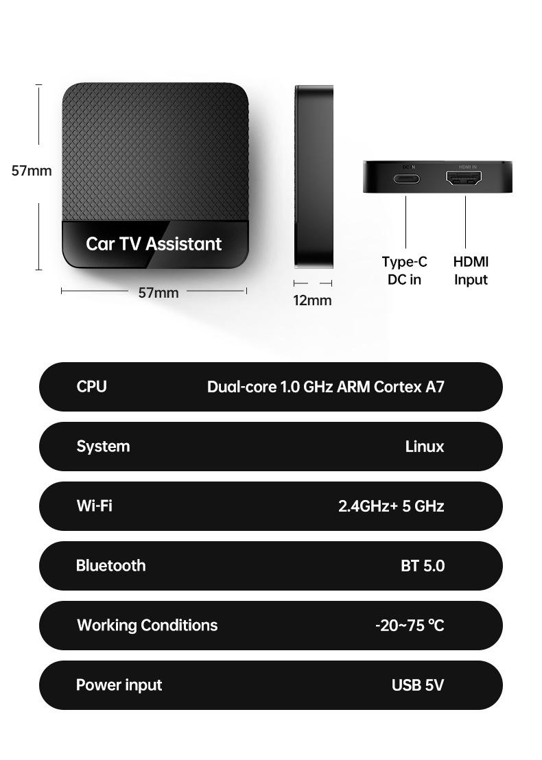 Caja Carplay Inalámbrico con Cable Androidauto con Interfaz HDMI Proyección de Pantalla Aibox Versión Inalámbrica