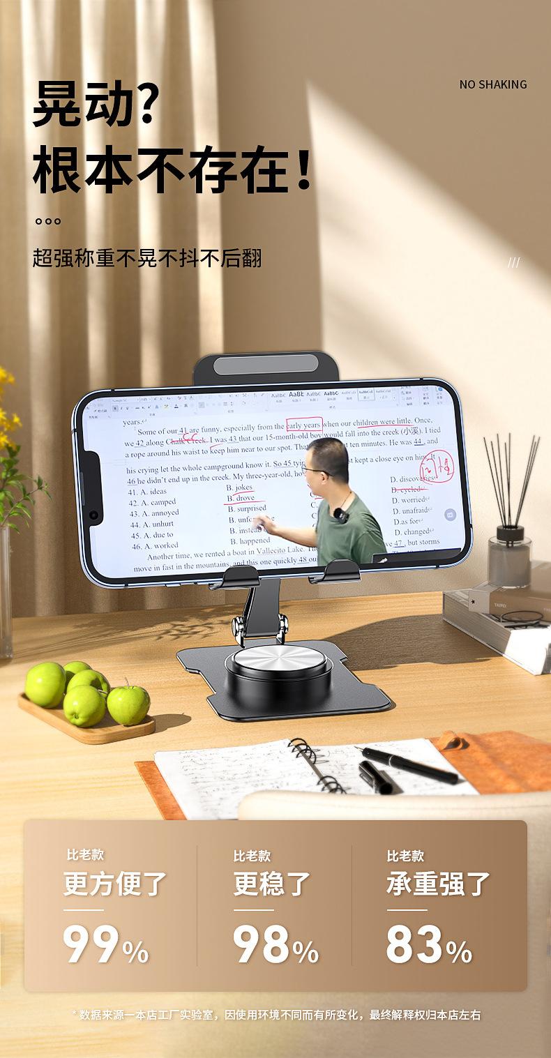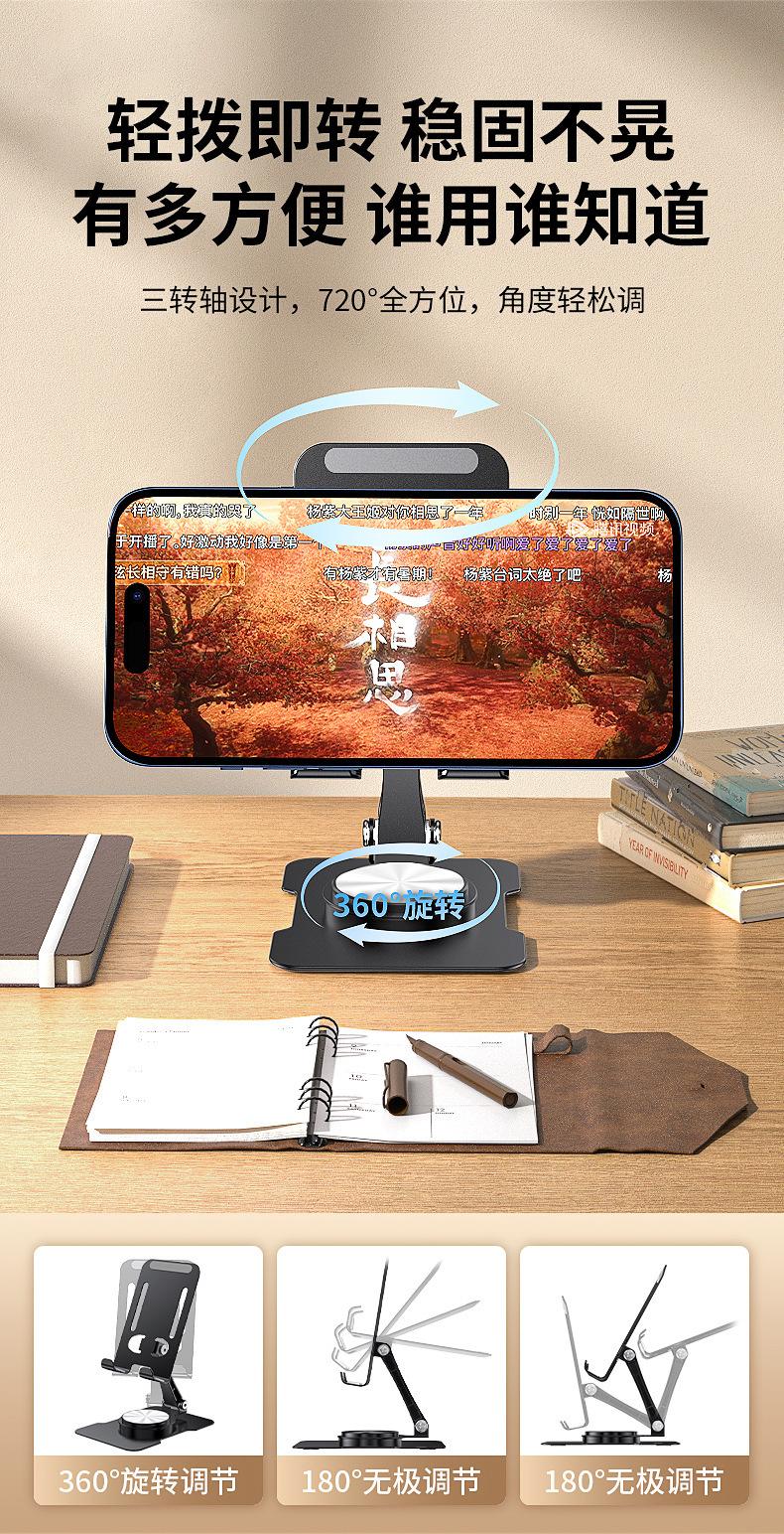 Soporte para teléfono móvil de escritorio giratorio de 360 grados, soporte multifuncional para tableta y teléfono móvil, marco de soporte de elevación ajustable de aleación de aluminio