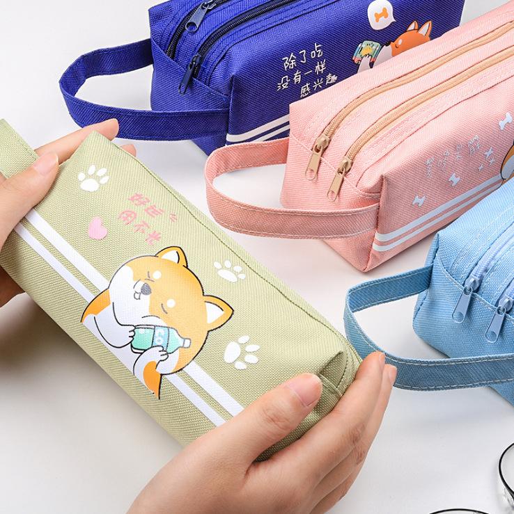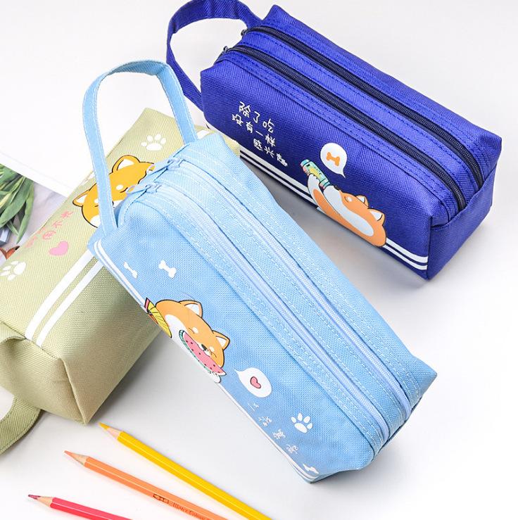 Estuche portátil creativo de doble capa y gran capacidad para estudiantes de primaria, bolsa de papelería sencilla de tela Oxford con doble cremallera, caja de papelería de estilo coreano.