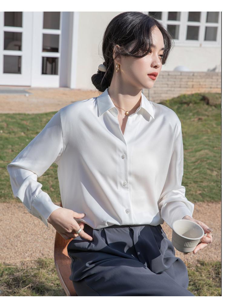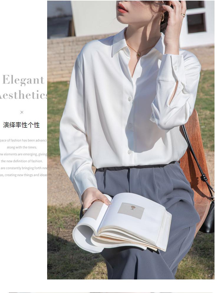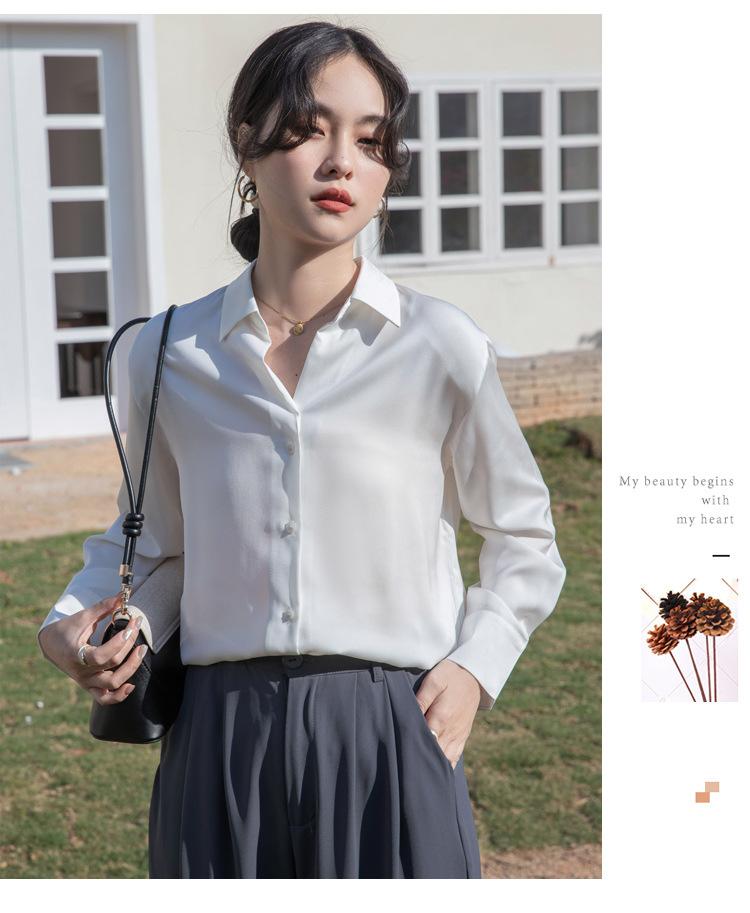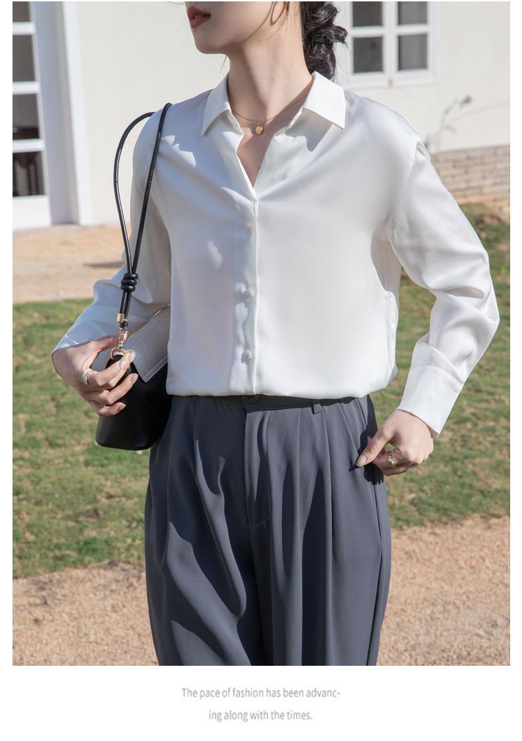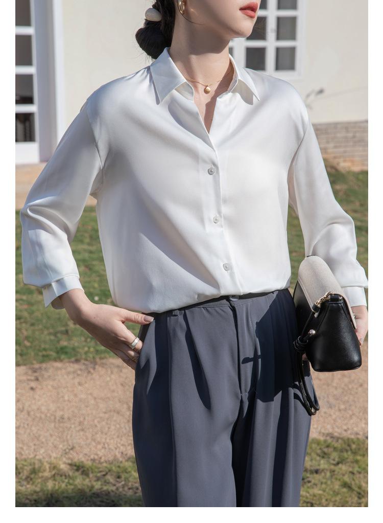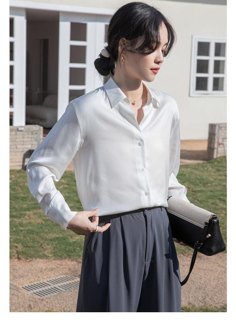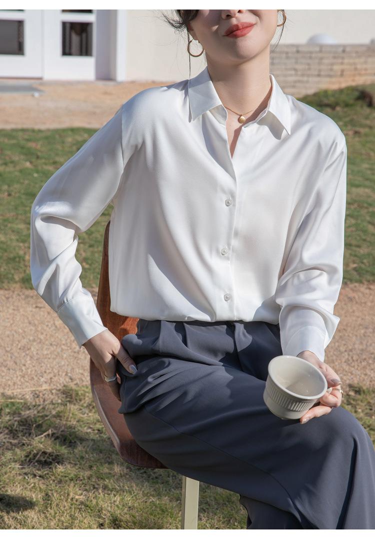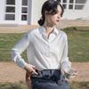 Camisa de satén blanco con cuello en V para mujer Primavera y Otoño 2024 Nuevo diseño Sensation Niche French Chic Ropa interior superior