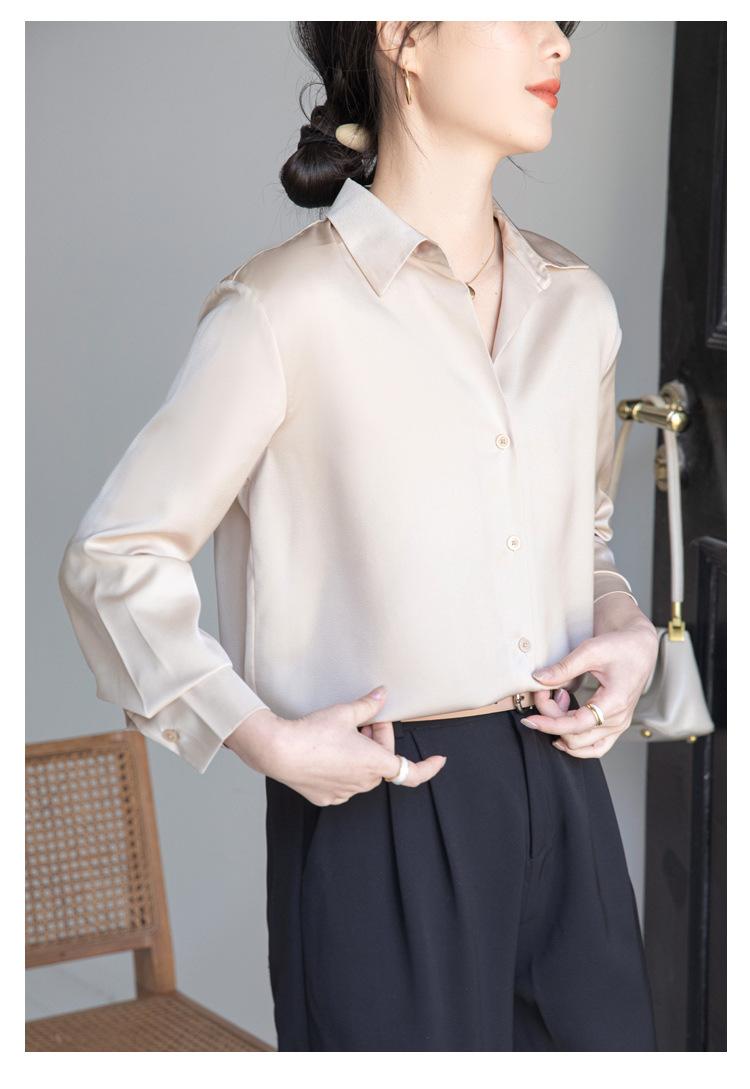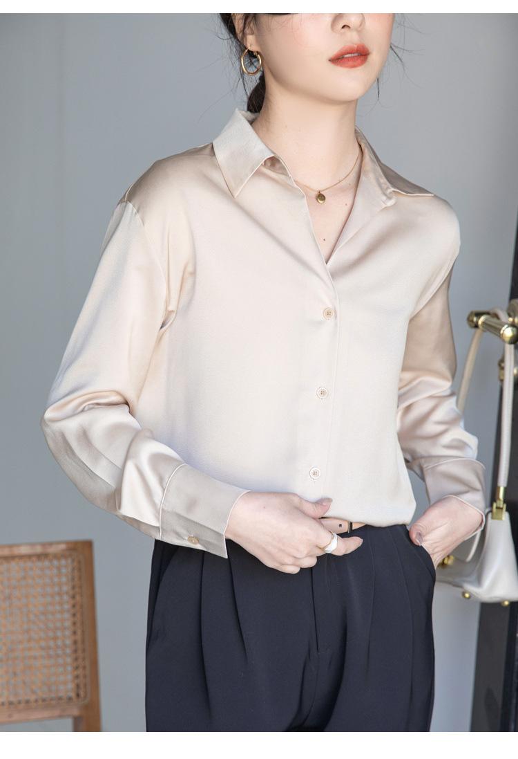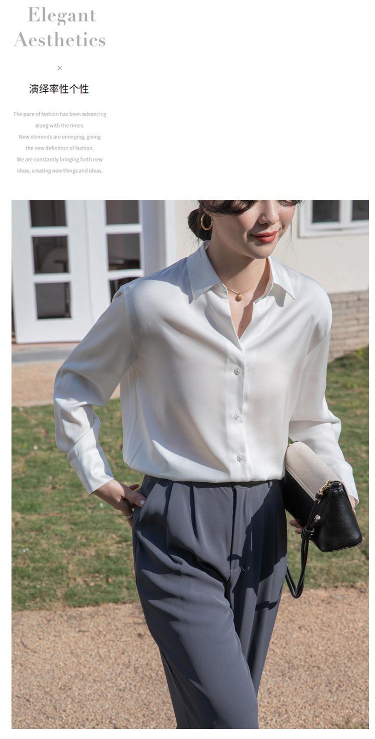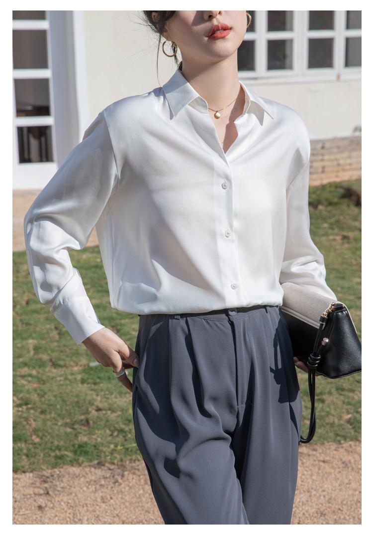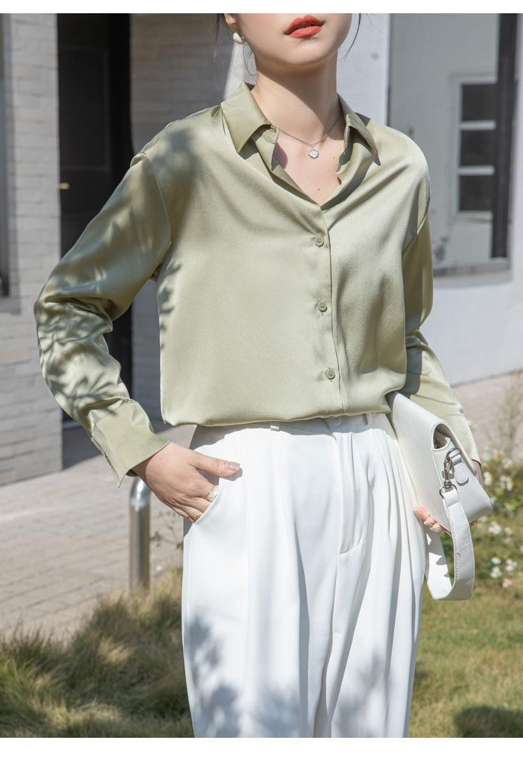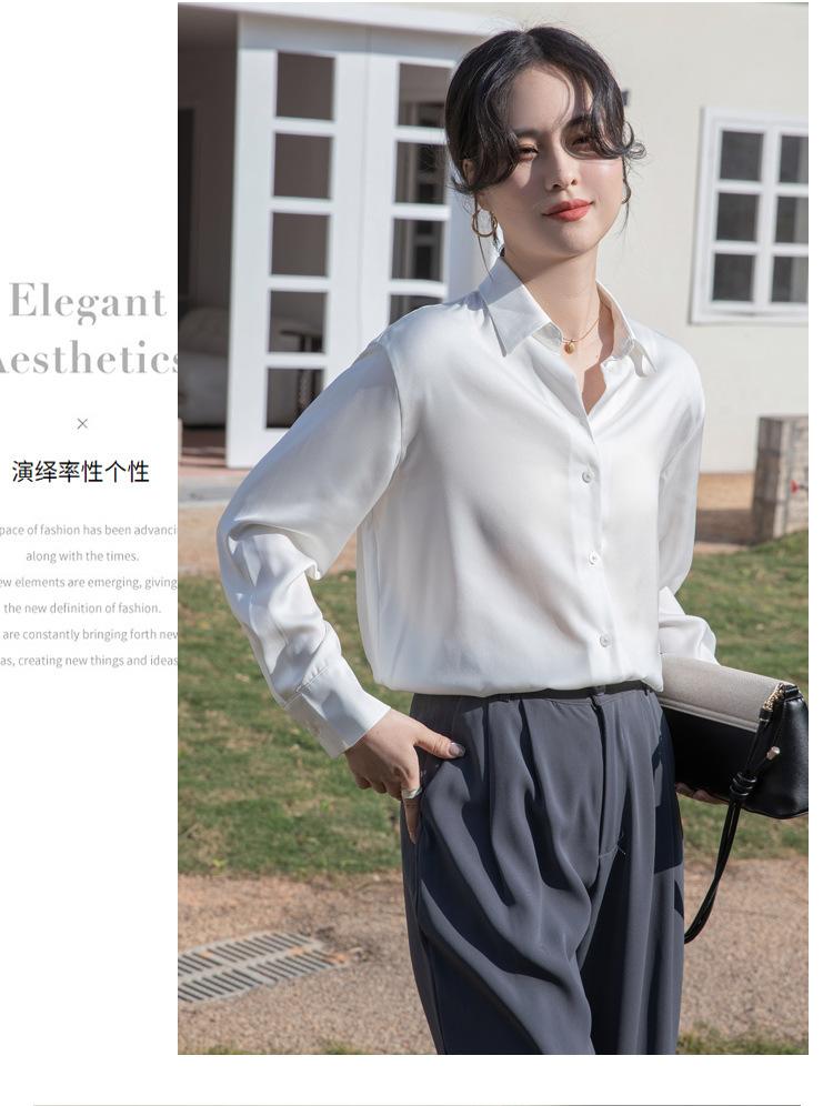 Camisa de satén blanco con cuello en V para mujer Primavera y Otoño 2024 Nuevo diseño Sensation Niche French Chic Ropa interior superior