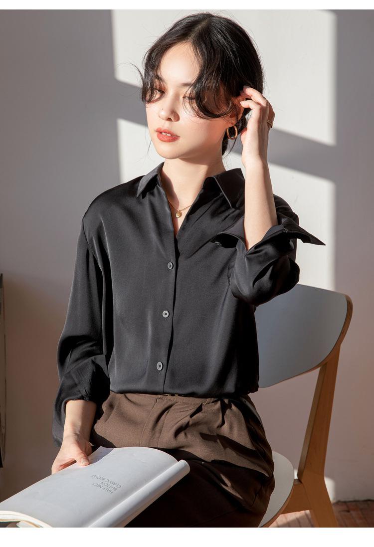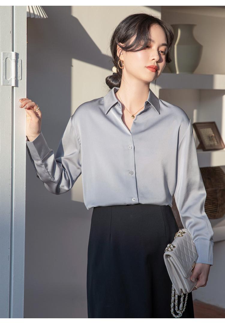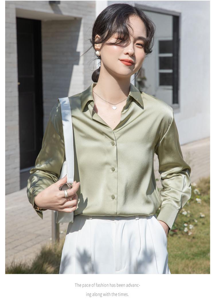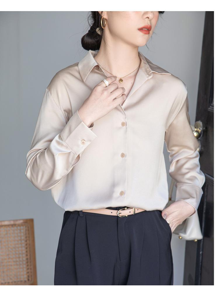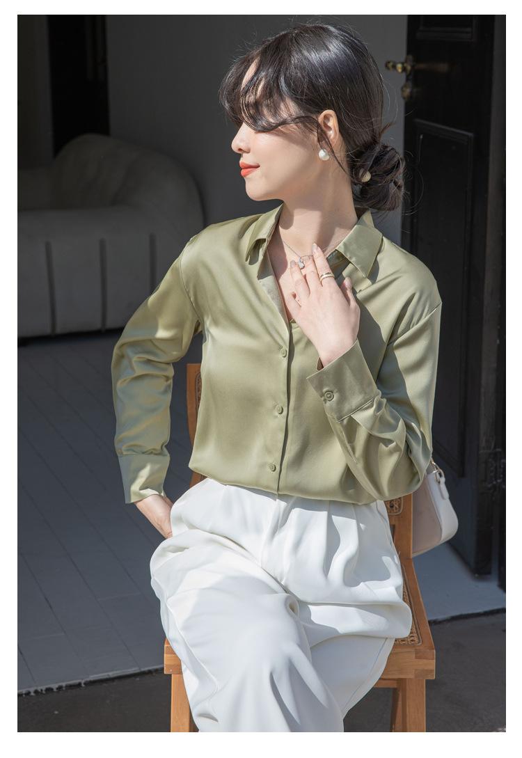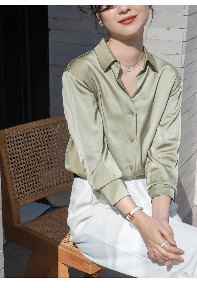 Camisa de satén blanco con cuello en V para mujer Primavera y Otoño 2024 Nuevo diseño Sensation Niche French Chic Ropa interior superior