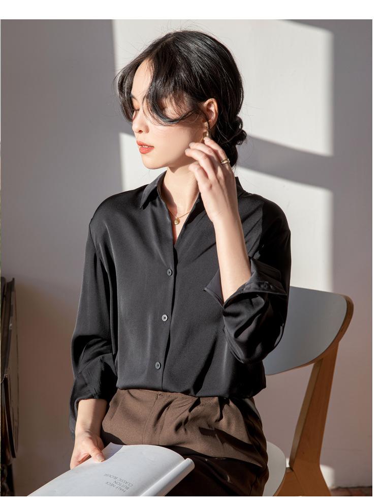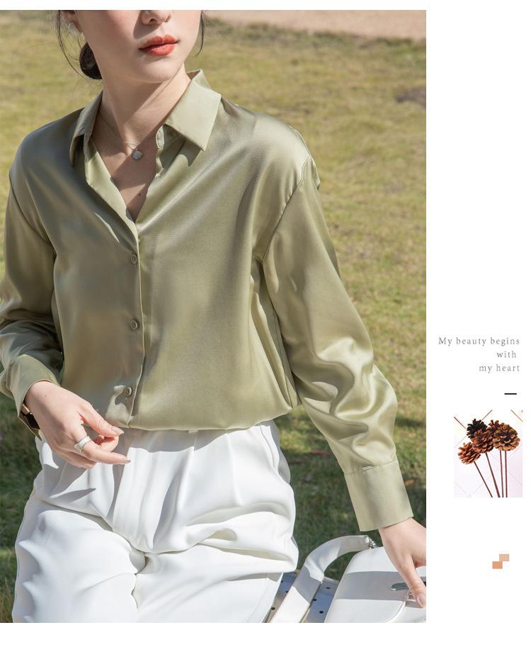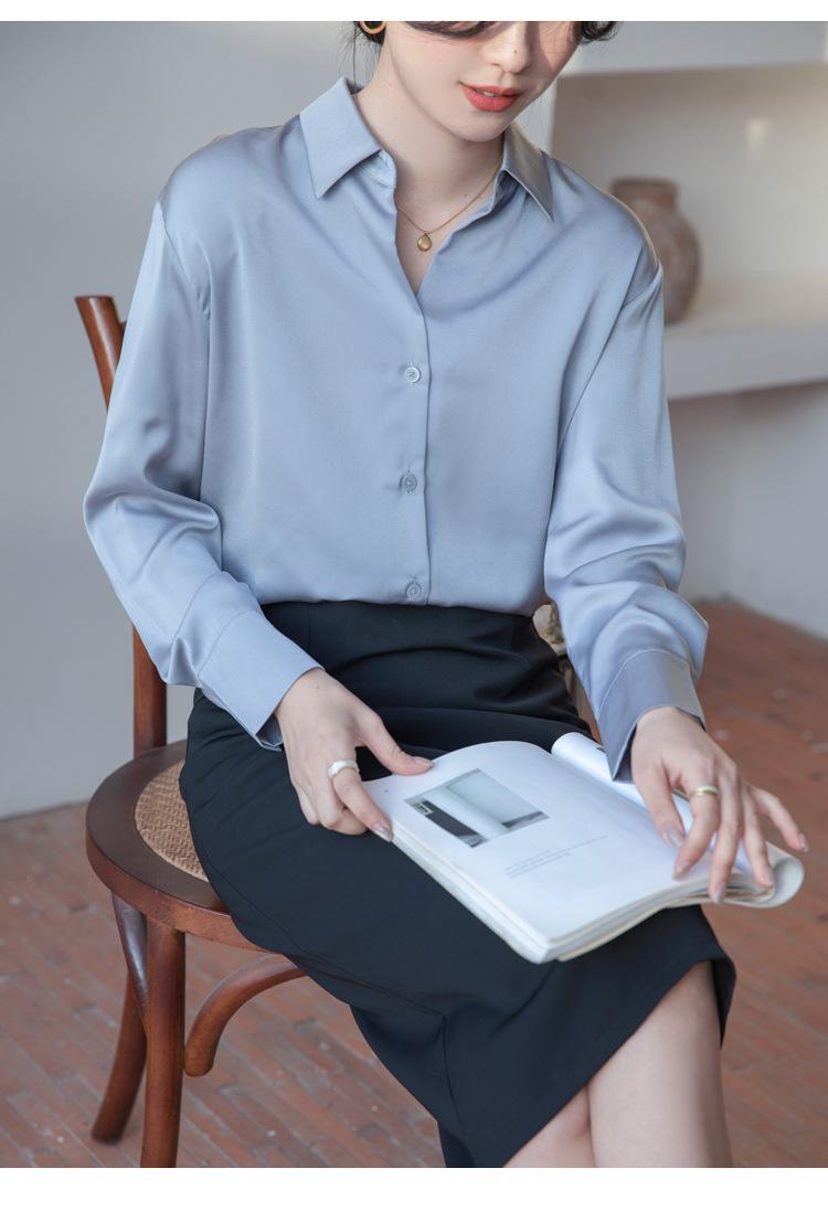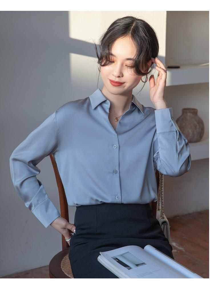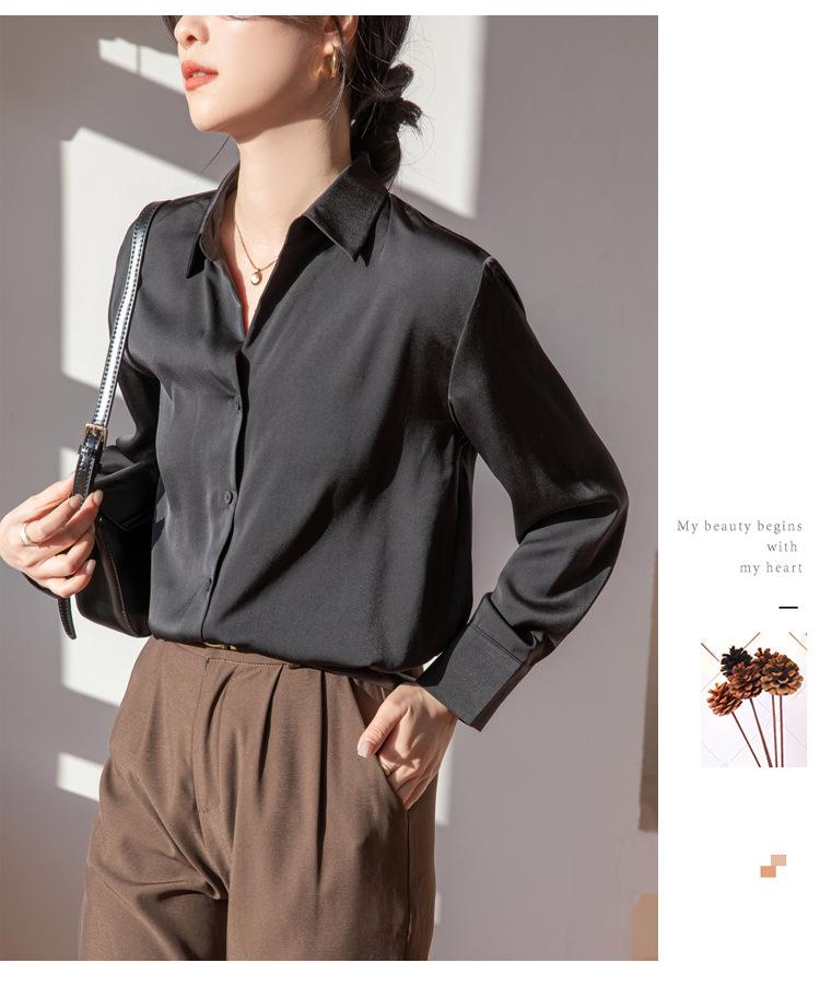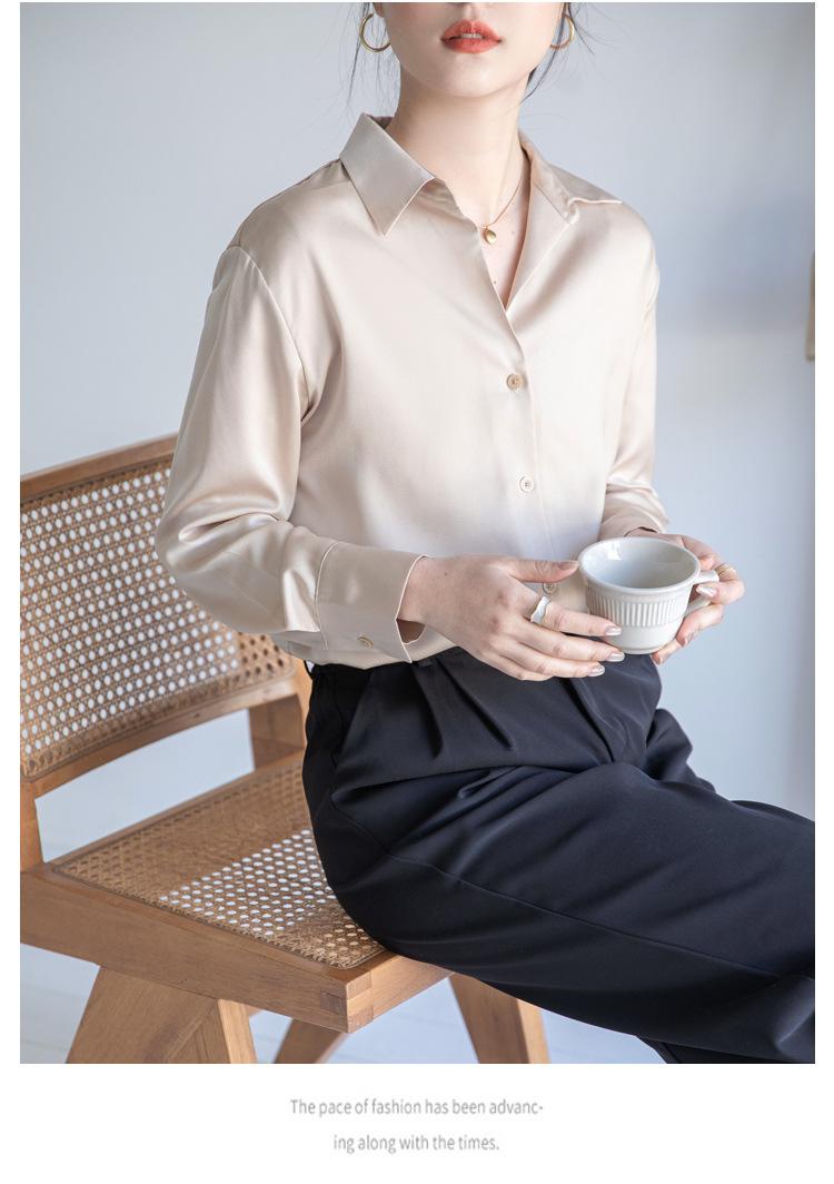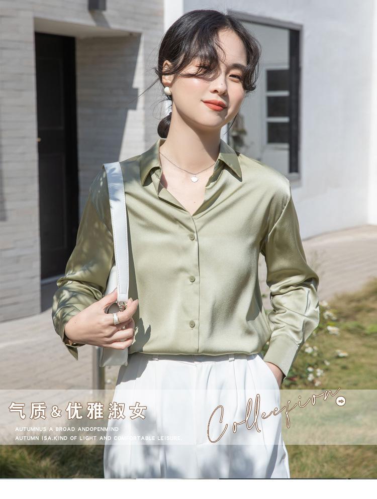 Camisa de satén blanco con cuello en V para mujer Primavera y Otoño 2024 Nuevo diseño Sensation Niche French Chic Ropa interior superior