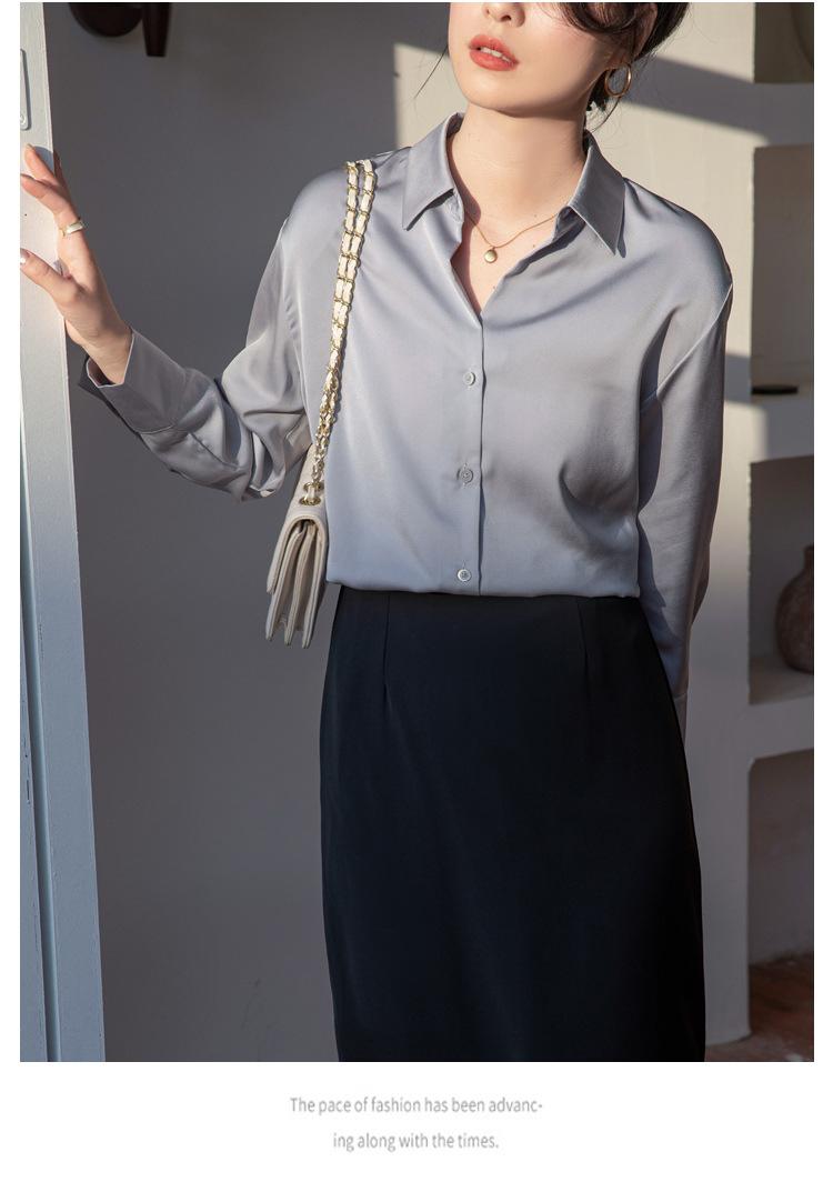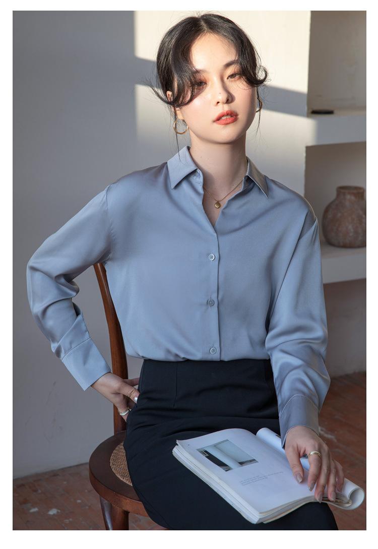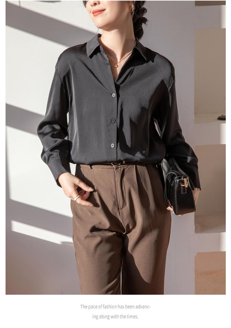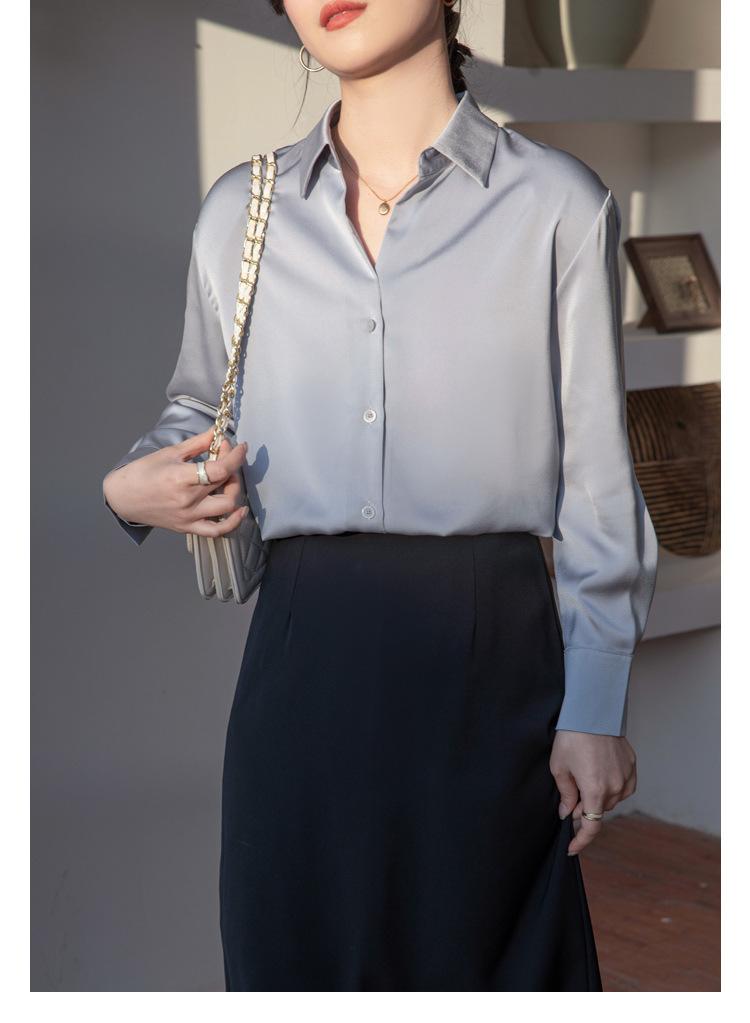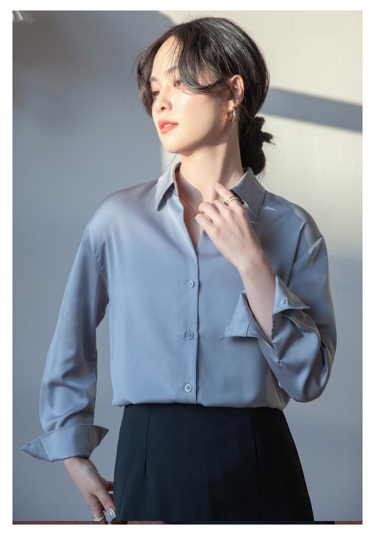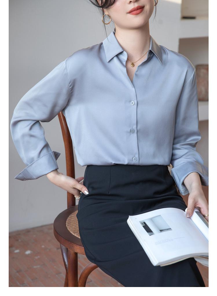 Camisa de satén blanco con cuello en V para mujer Primavera y Otoño 2024 Nuevo diseño Sensation Niche French Chic Ropa interior superior