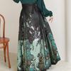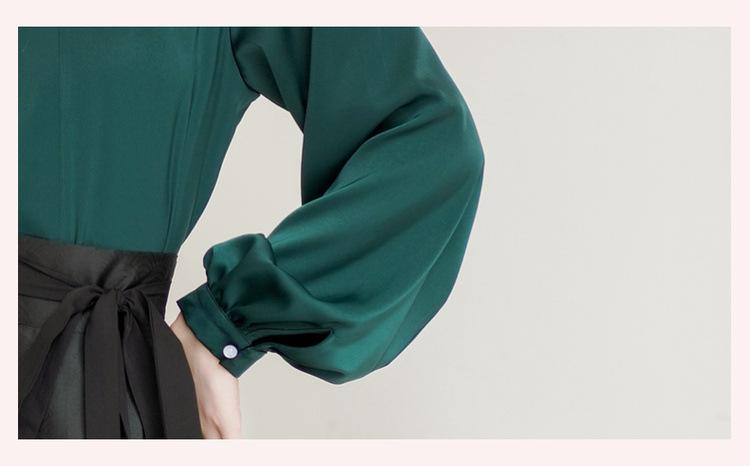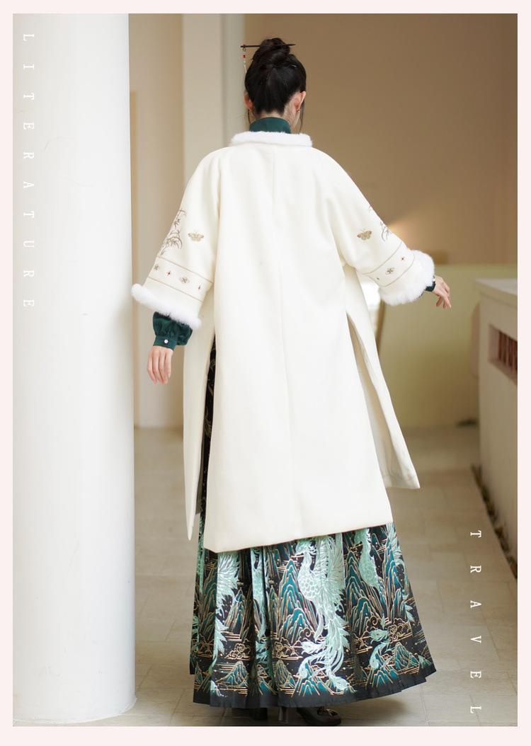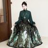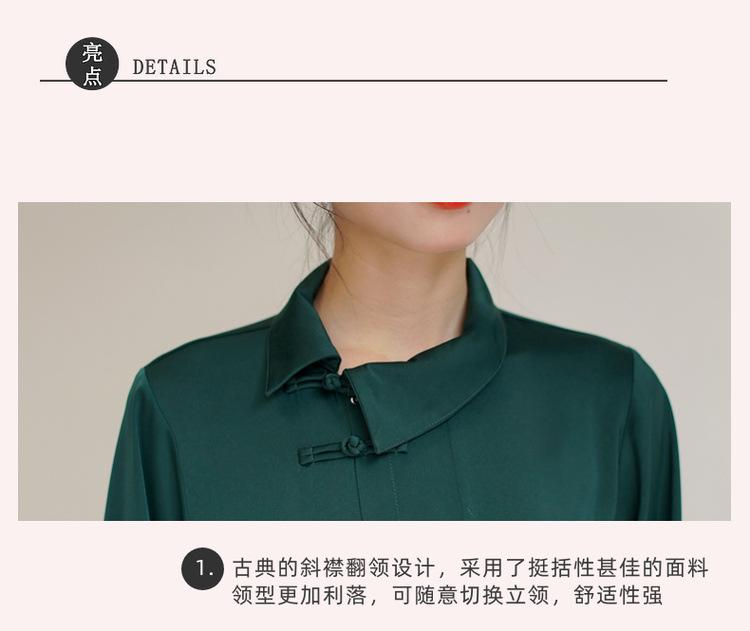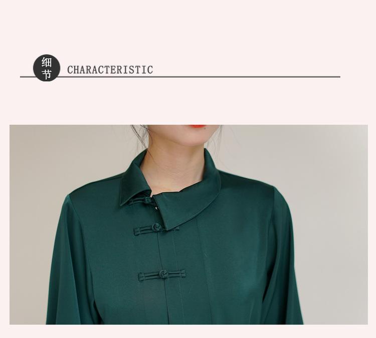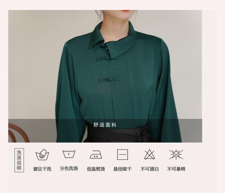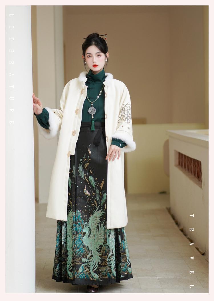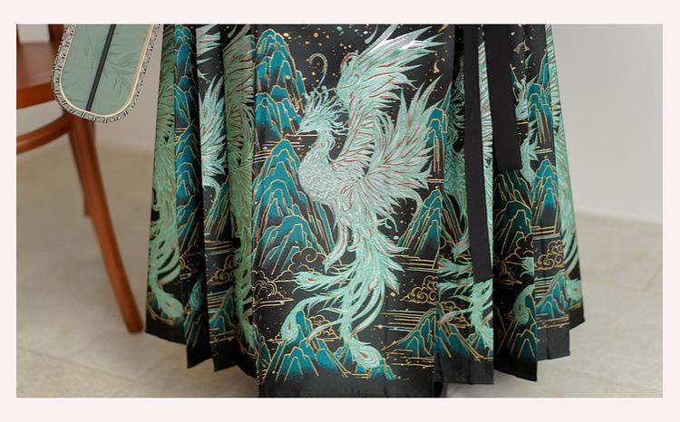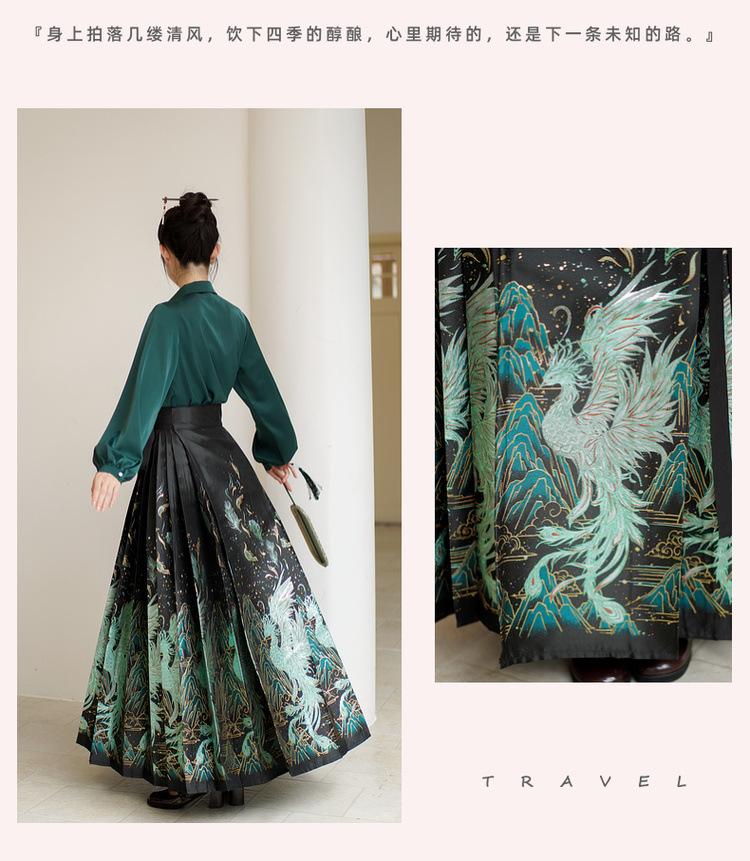 Nuevo traje de ropa Ming Han china 2024 Primavera cuello alto camisa de dos vías top verde pluma tejida flor de maquillaje dorado chaleco falda
