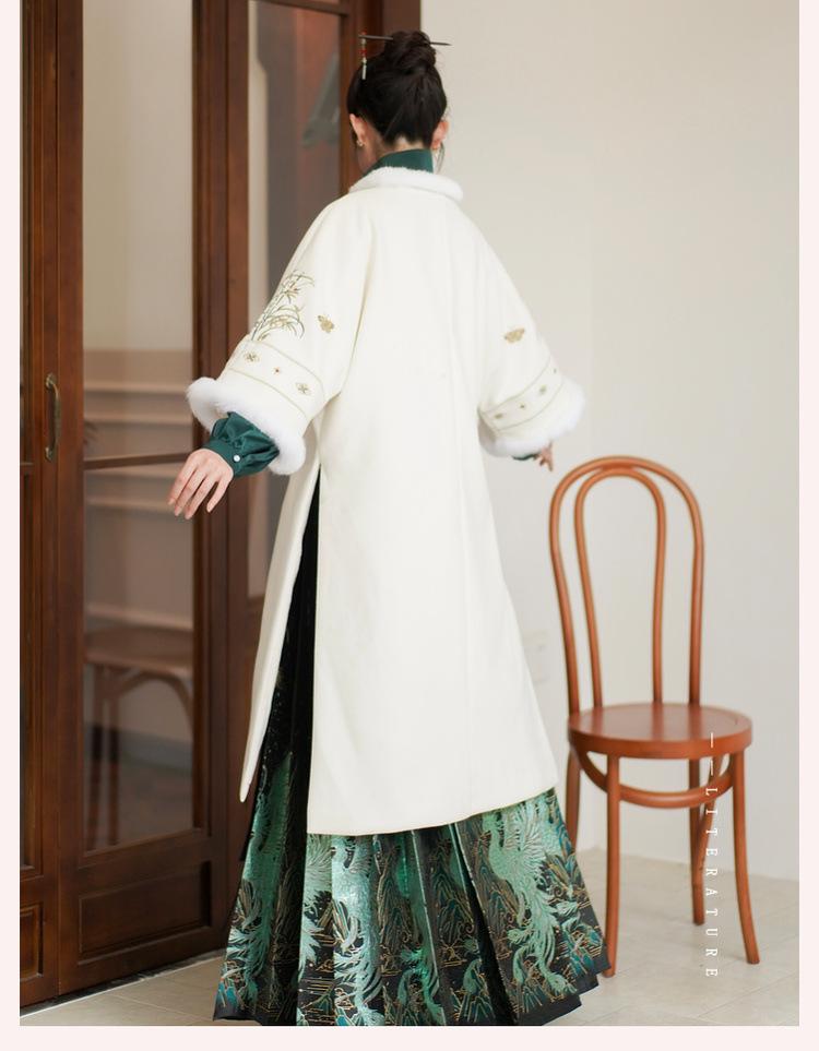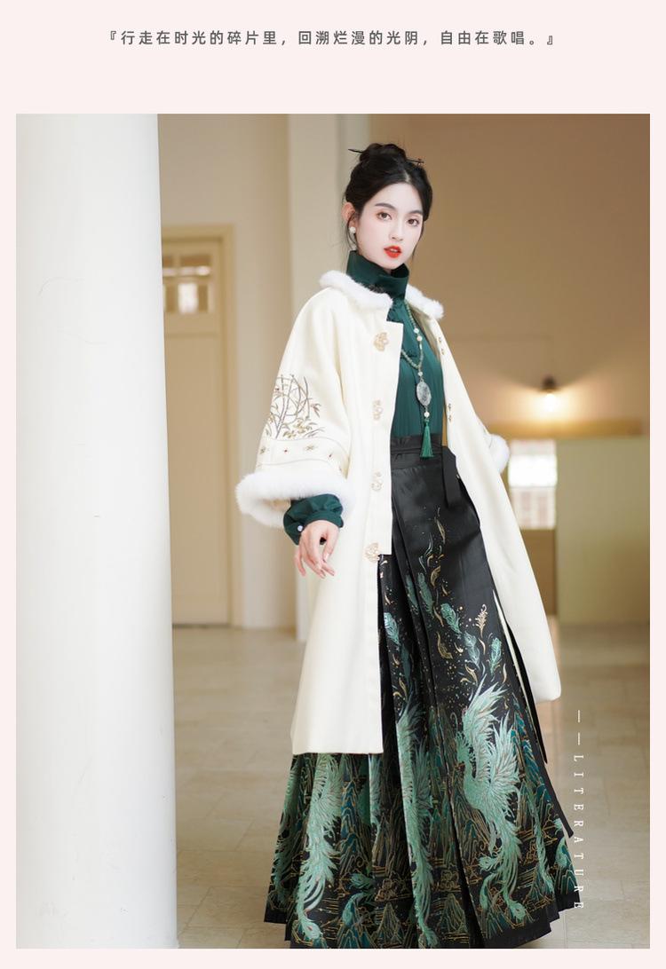 9591 green clothes regular, 9591H green coat fleece-lined, 9588 green feather vest skirt, 9565 woolen coat