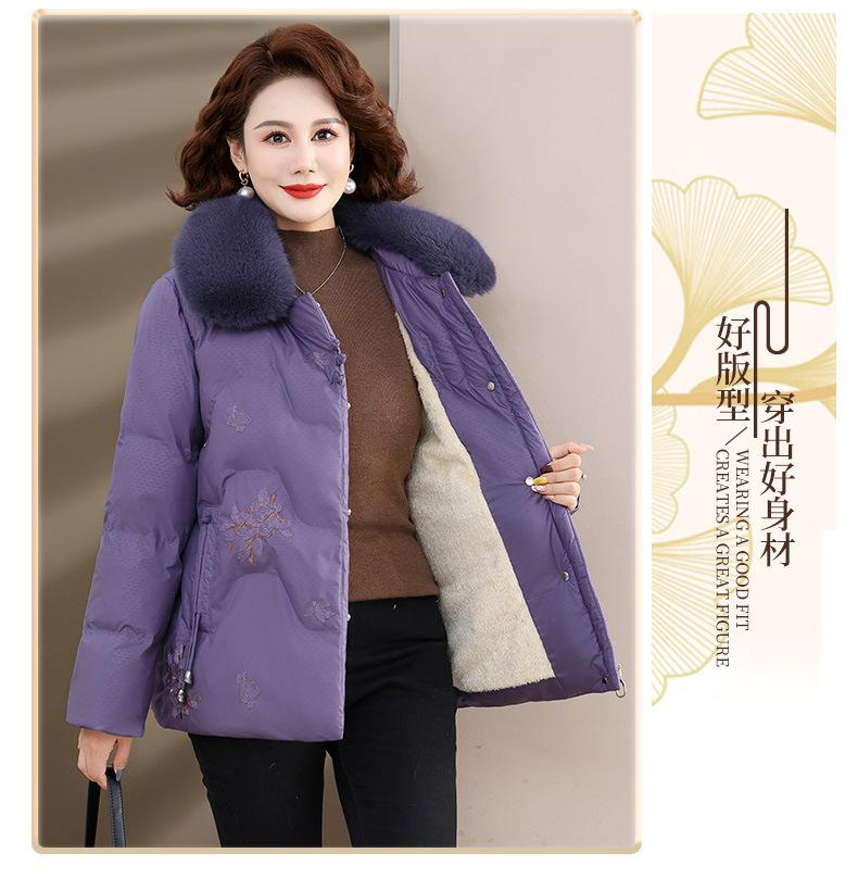 Ropa de invierno para madre de mediana edad Abrigo grueso con forro polar acolchado de algodón para mujer Ropa para mujeres de mediana edad y ancianas Ropa de estilo occidental Noble Cálido Abrigo acolchado de algodón
