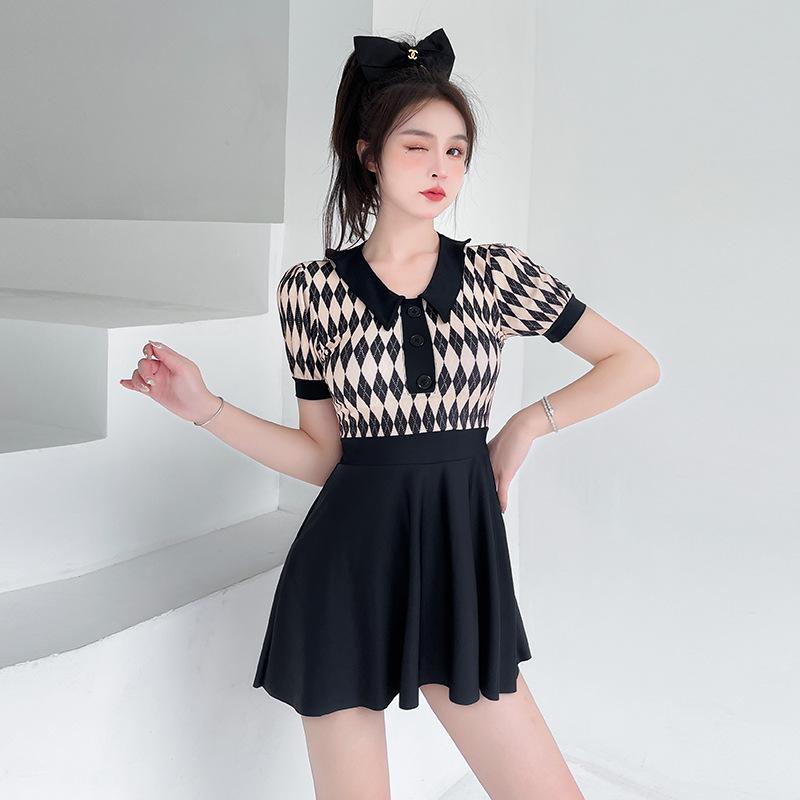 Traje de Baño Conservador para Mujer con Falda Nueva 2023, Boxer con Abertura, Cubre Vientre, Adelgazante, para Aguas Termales [una generación de cabello]]