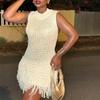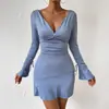 122065 Vestido Elegante Europeo y Americano de Cuello en V Profundo y Manga Acampanada Otoño e Invierno Sexy con Cordones Manga Larga Falda de Cadera para Mujer