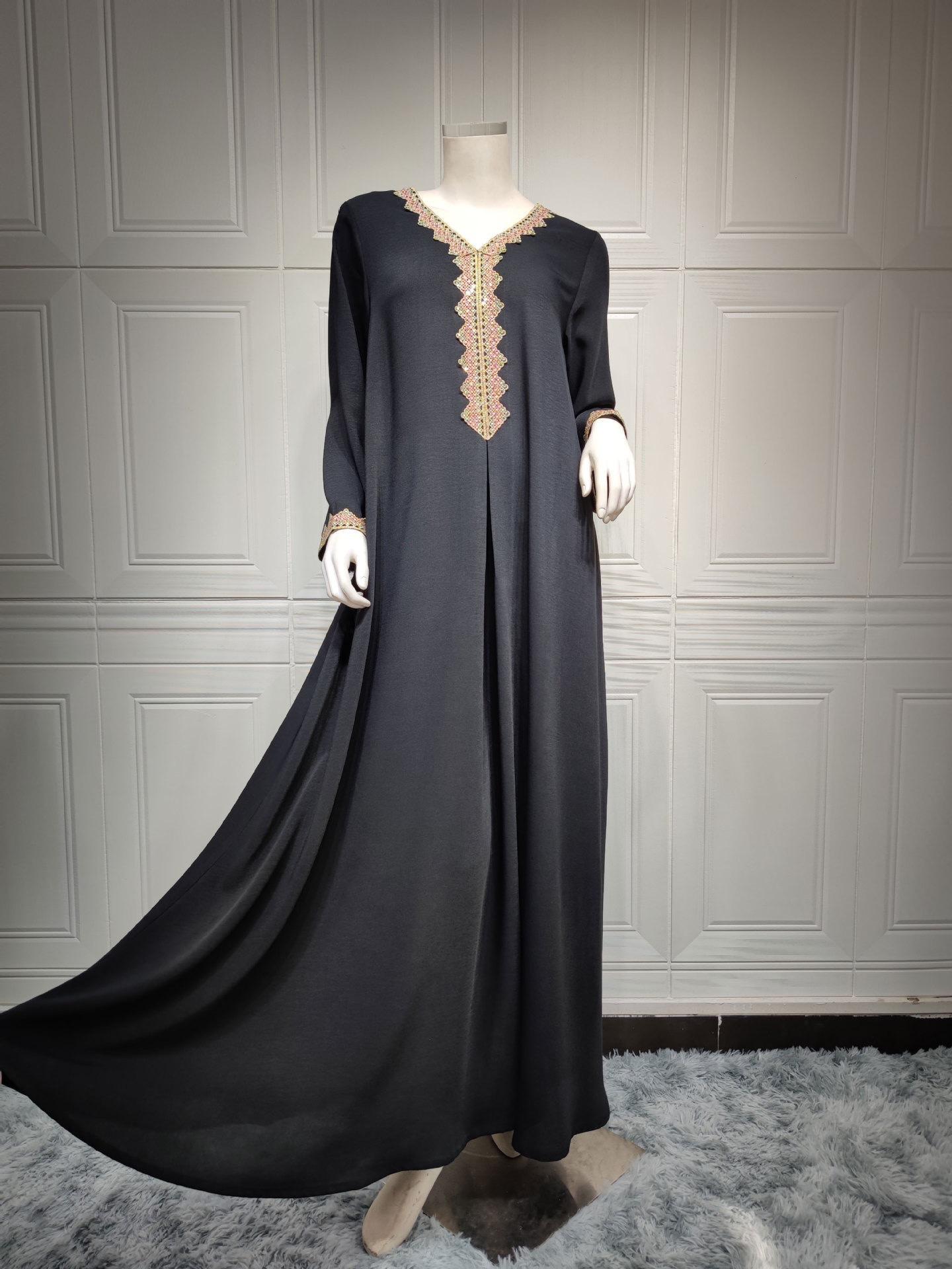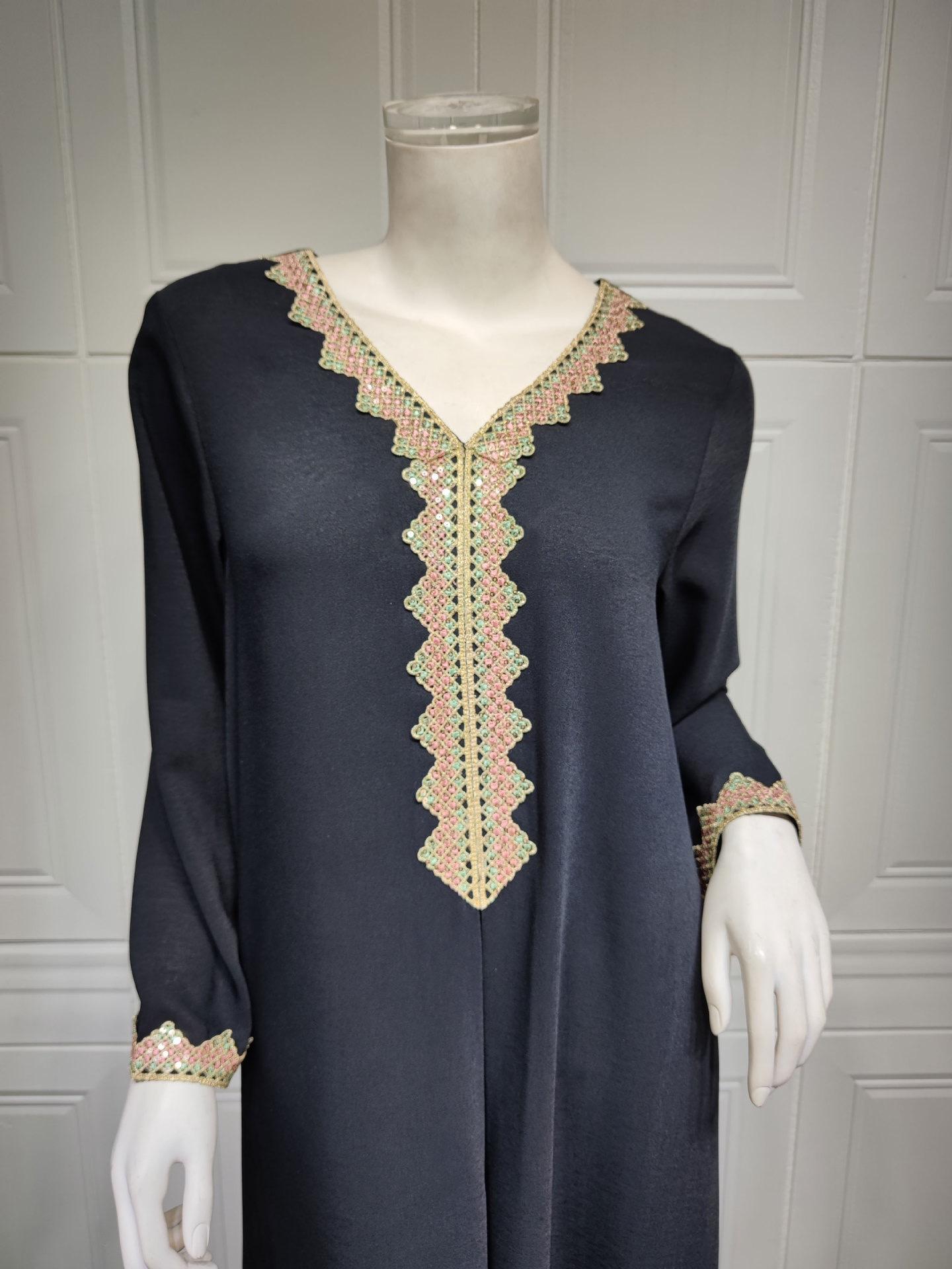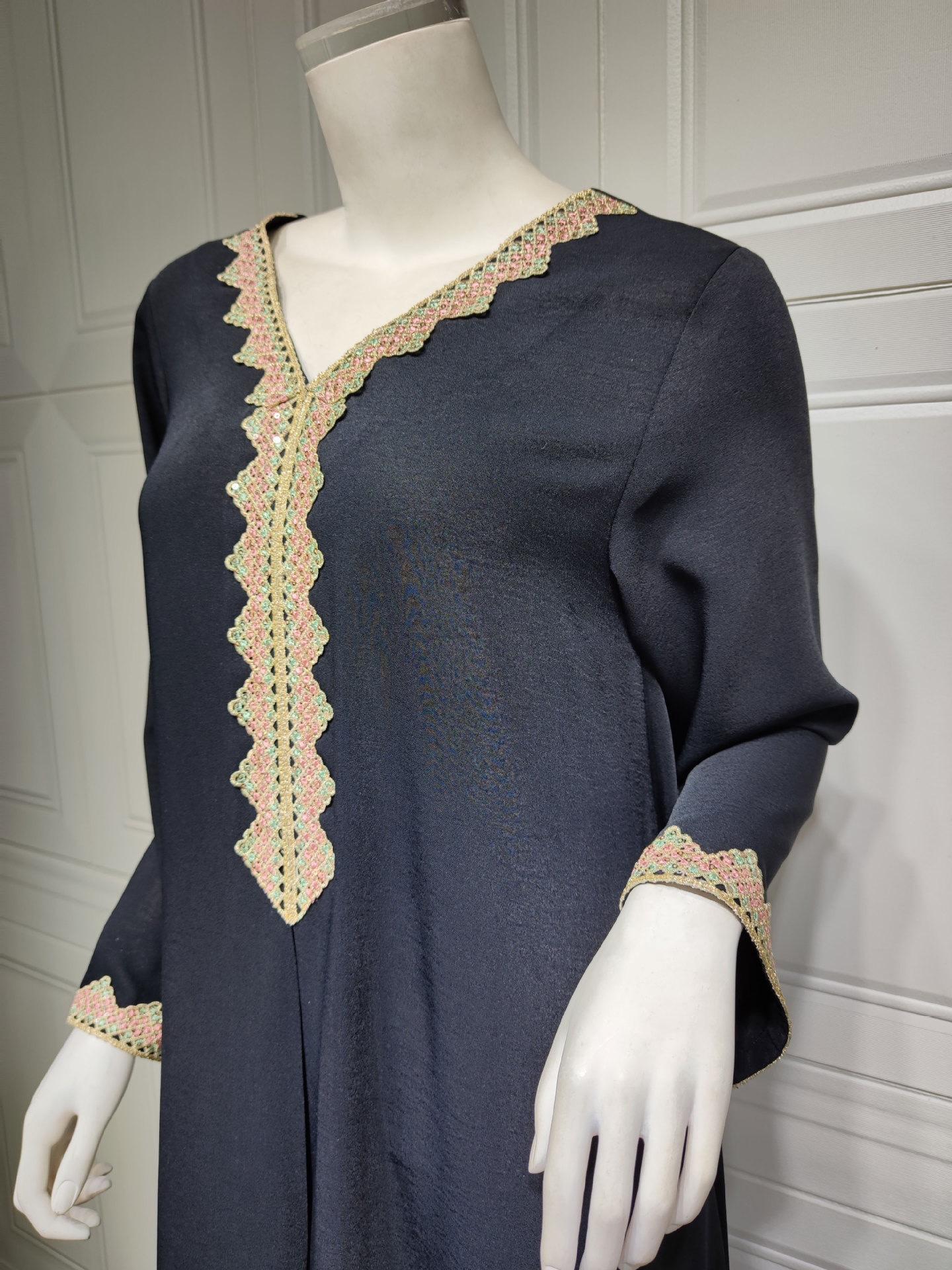 Primavera y otoño 2025 Vestido de mujer del sudeste asiático con encaje de estilo étnico europeo y americano de moda musulmana de Oriente Medio