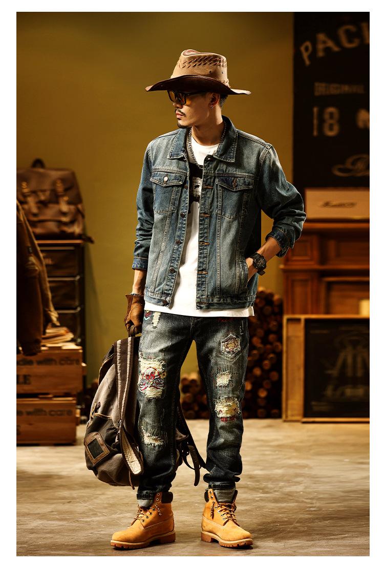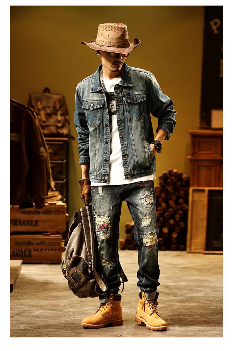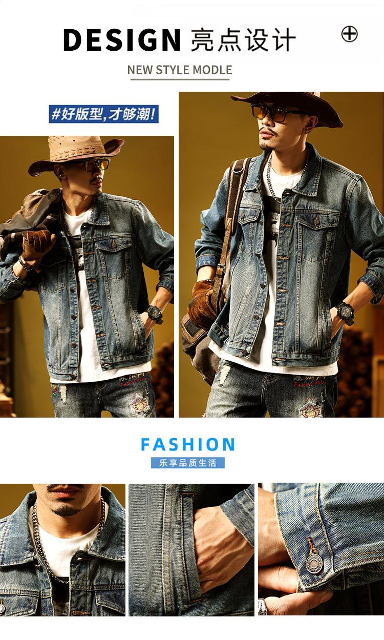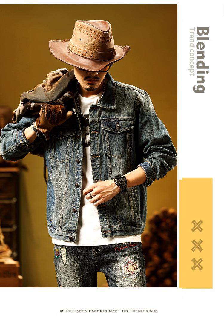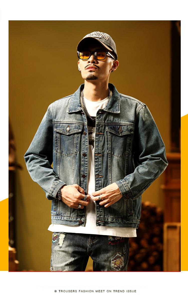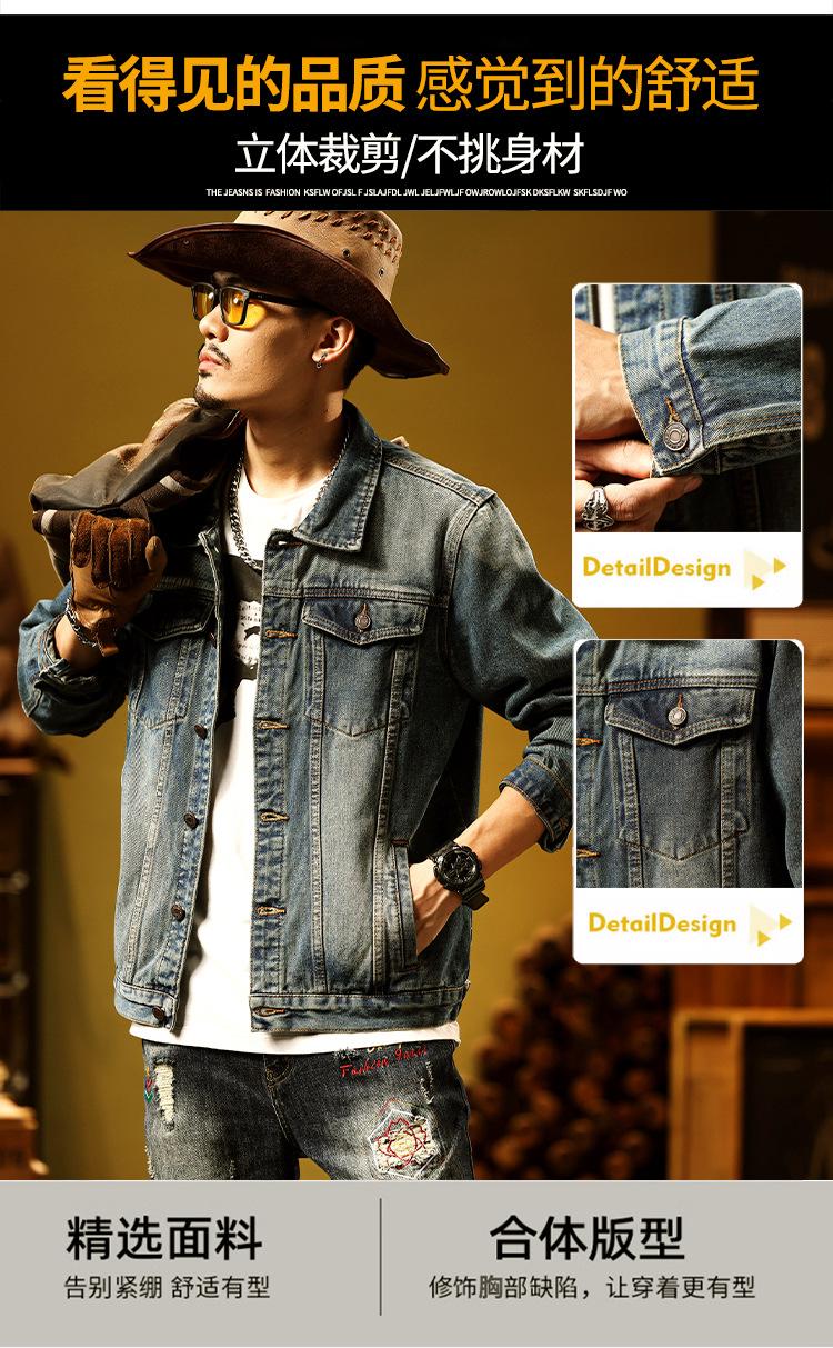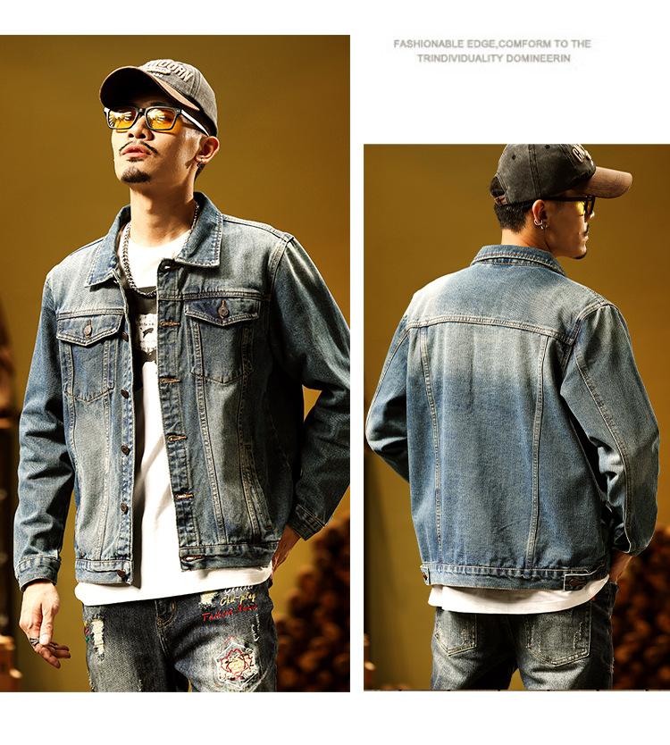 Chaqueta vaquera informal de estilo americano para hombre, chaqueta holgada retro de marca de moda de calle alta, ropa de moda de talla grande
