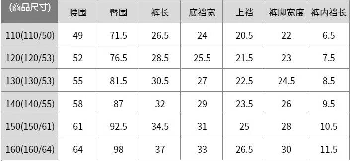 110cm, 120cm, 130cm, 140cm, 150cm, 160cm
