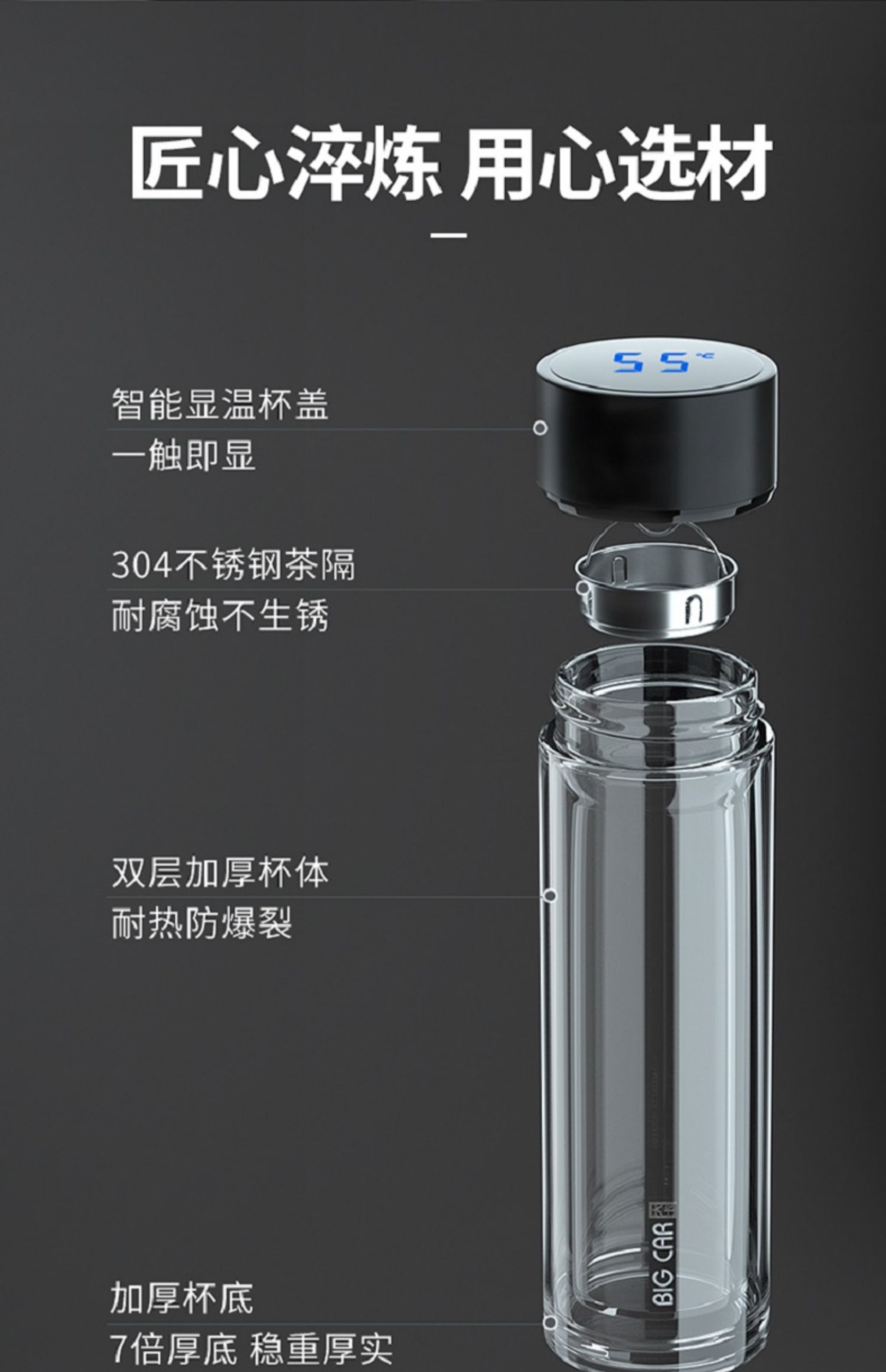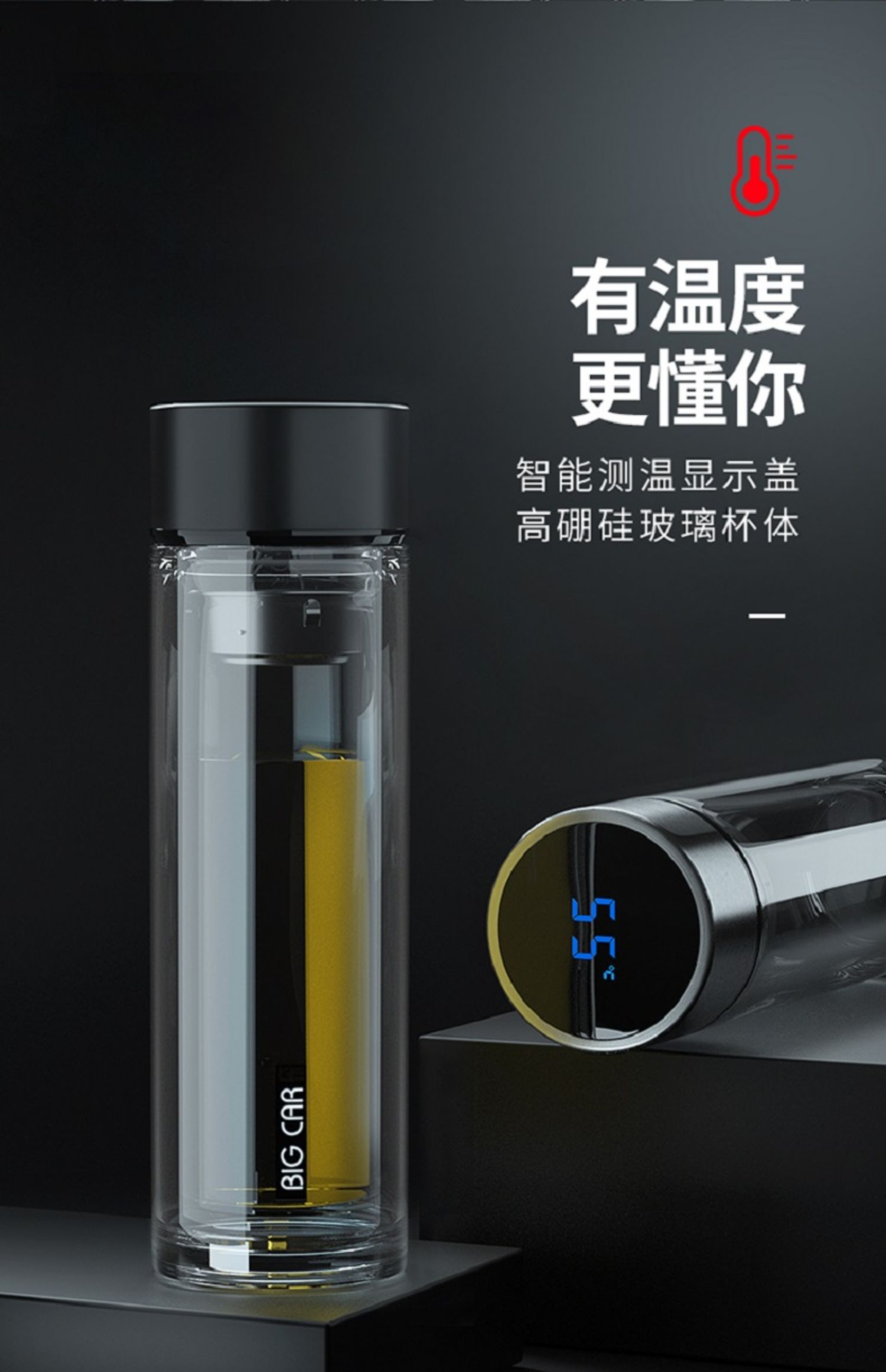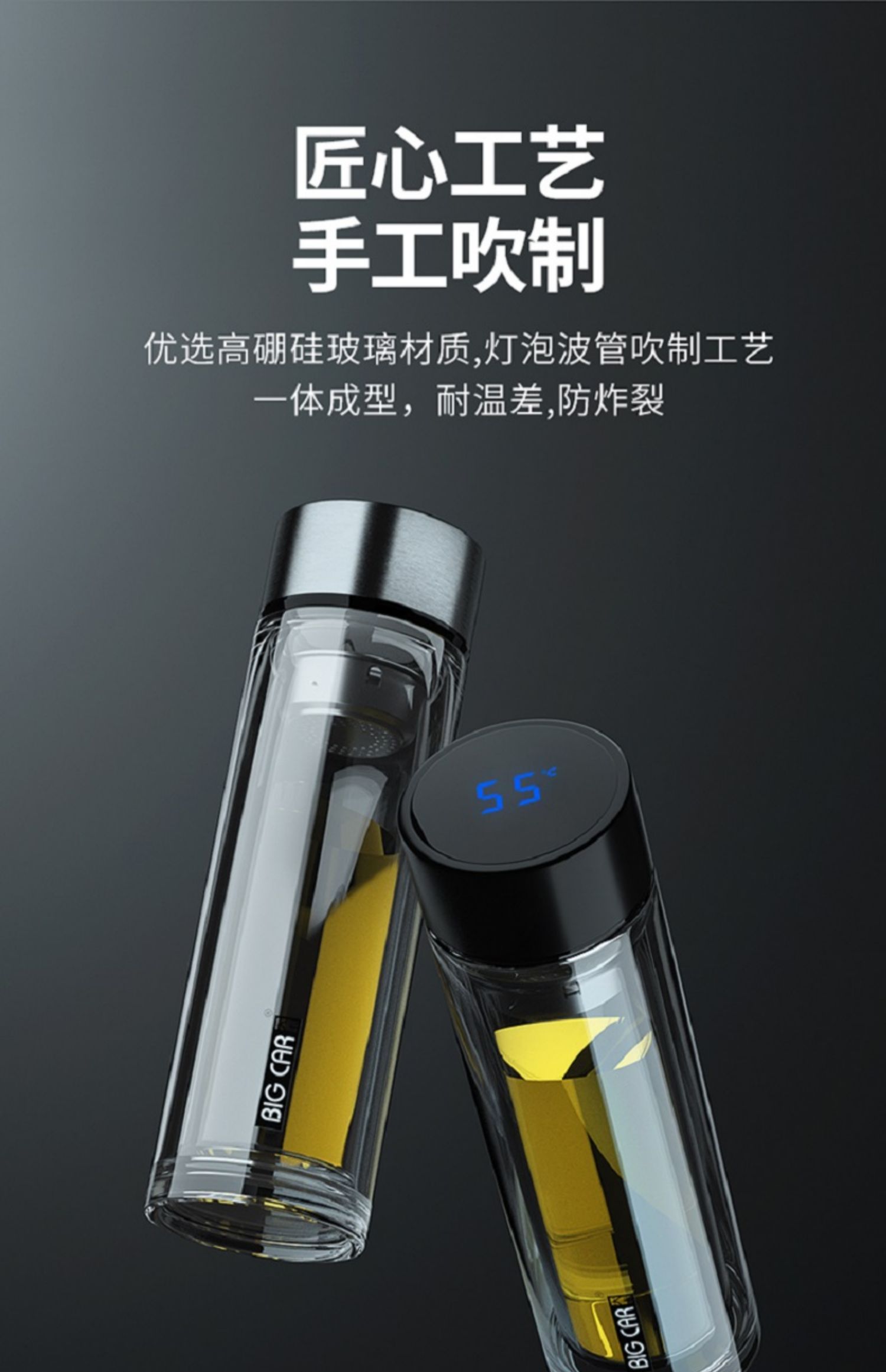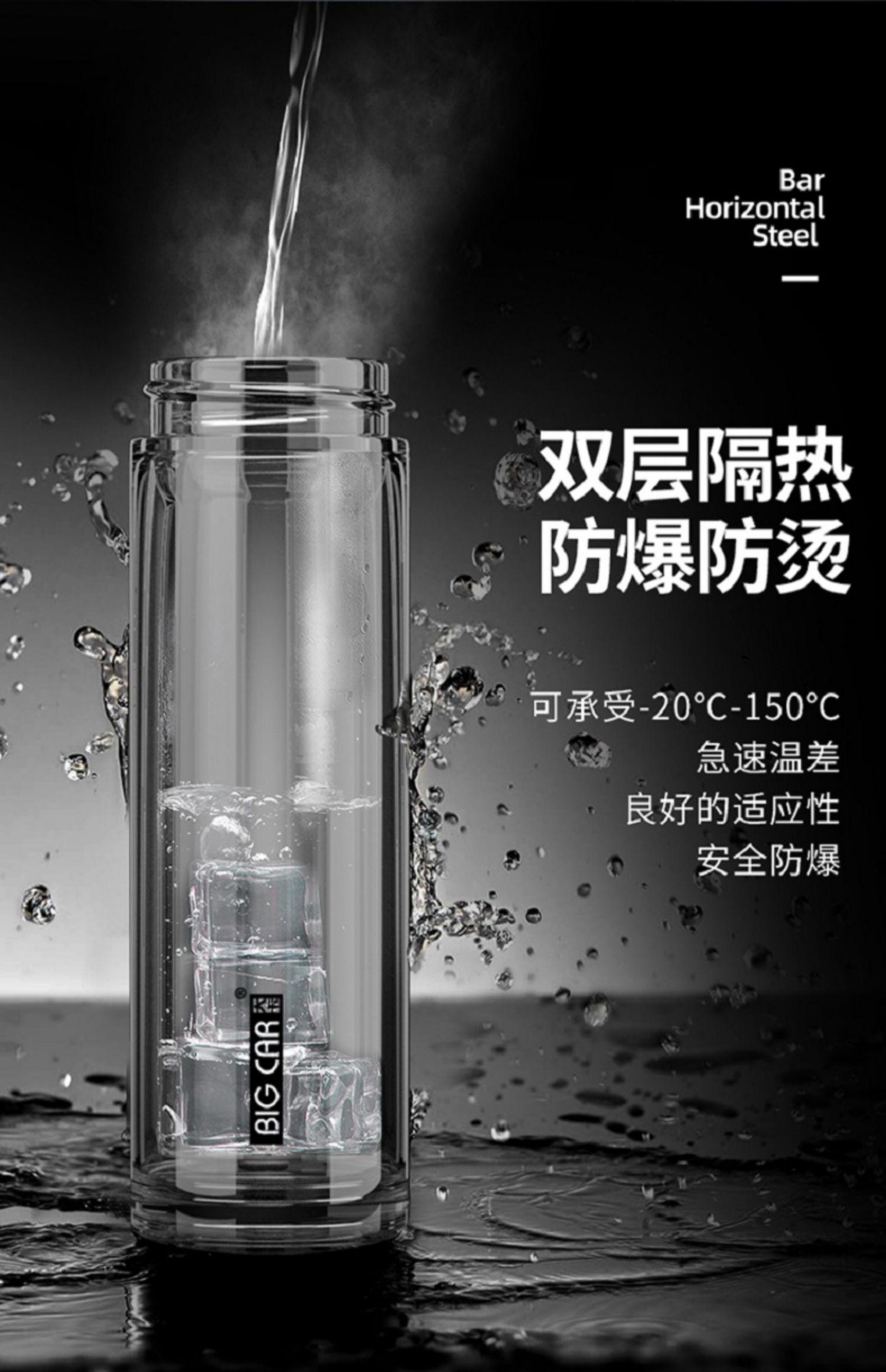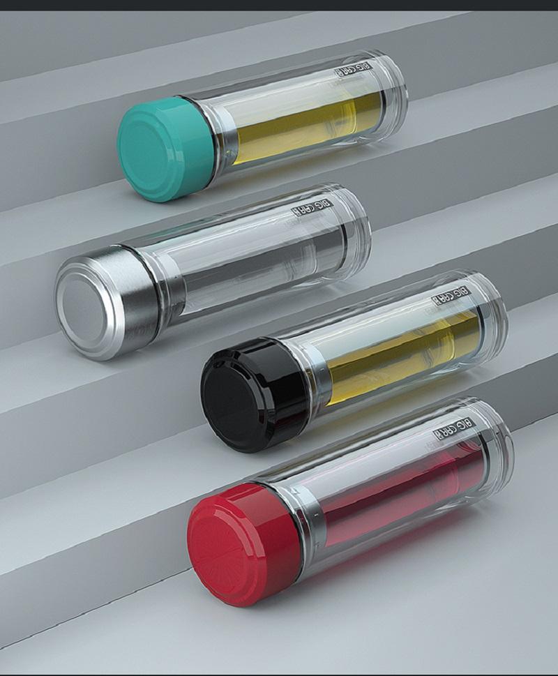 Xyt taza de vidrio de doble capa taza de té para hombre estudiante mujer con tapa aislada portátil taza de té de gran capacidad