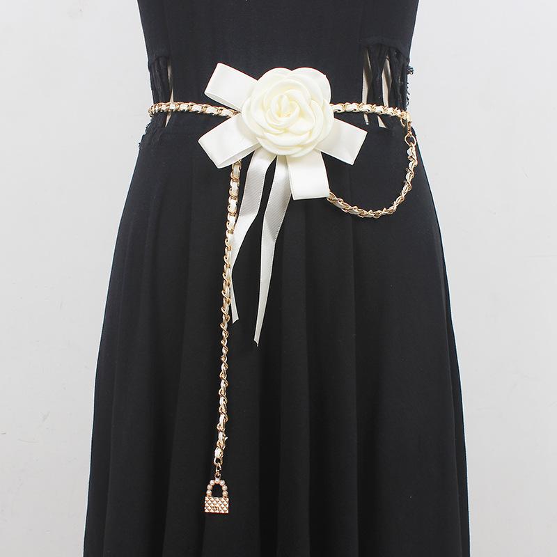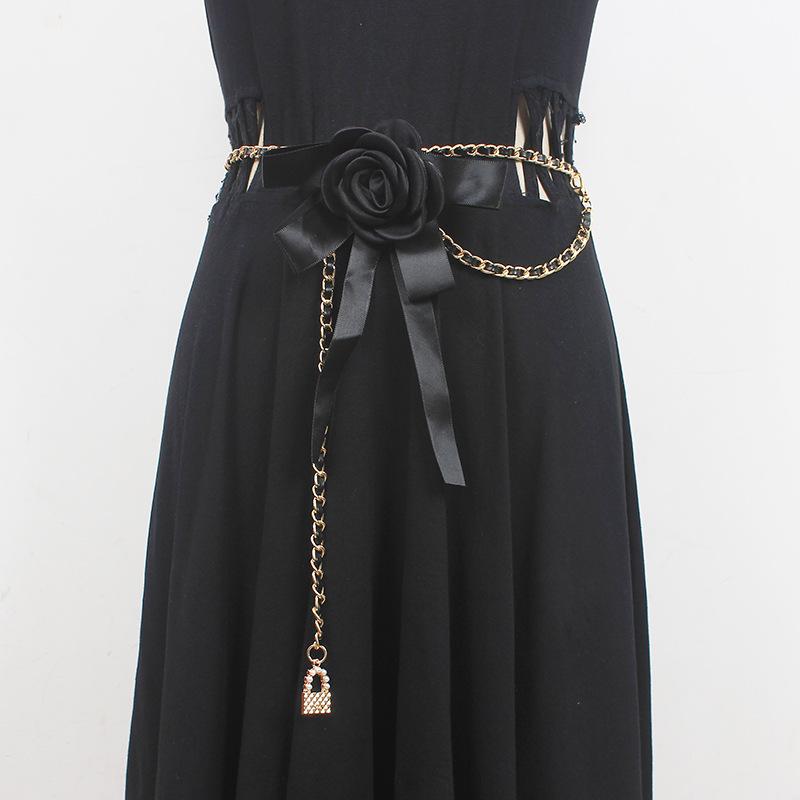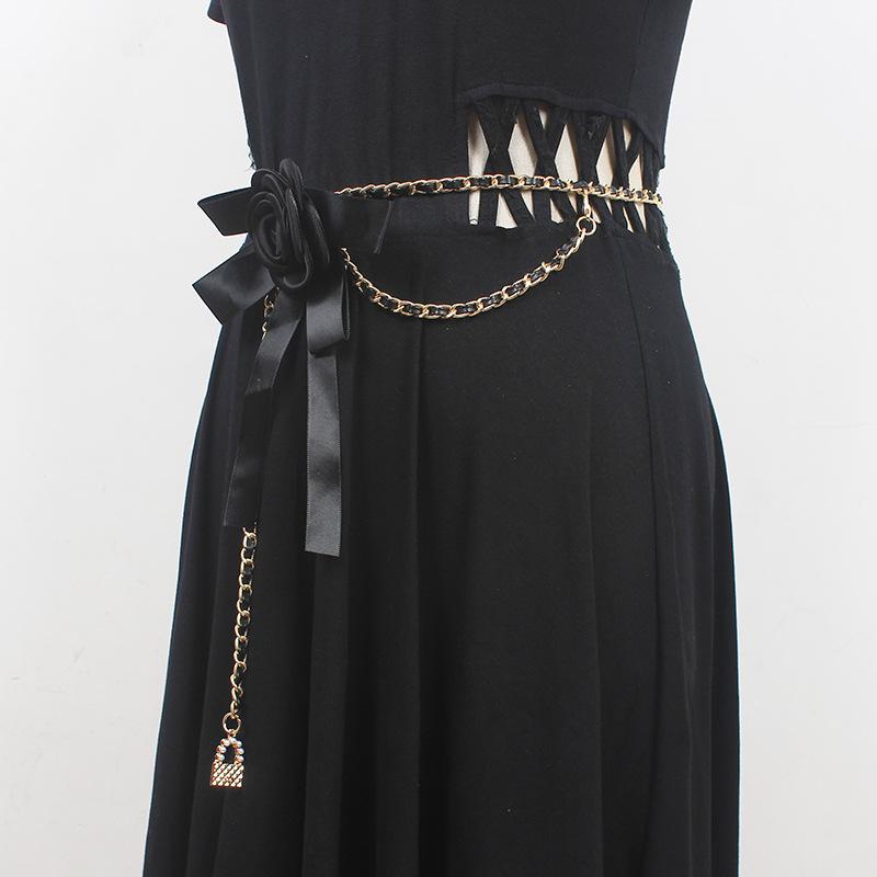 Accesorios de cadena para la cintura para mujer, cadena de flores y lazo, cinturón de cadena para decoración con vestido, jeans, cadena de moda estilo ins