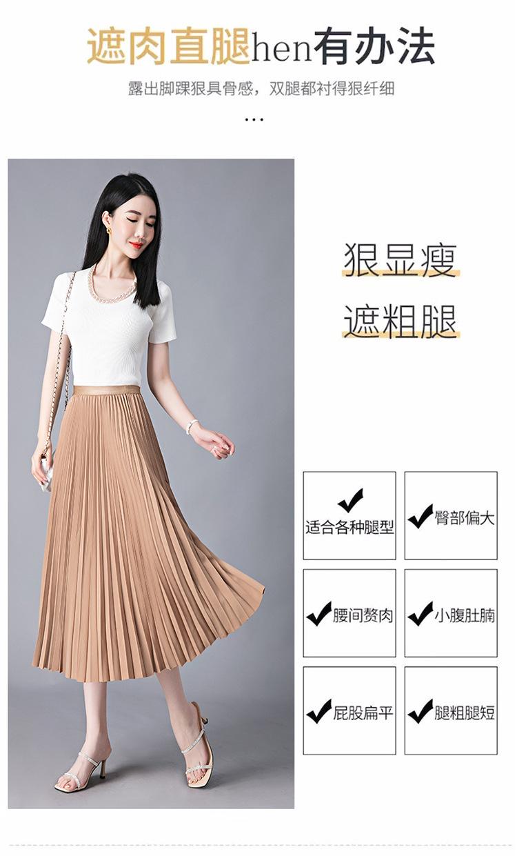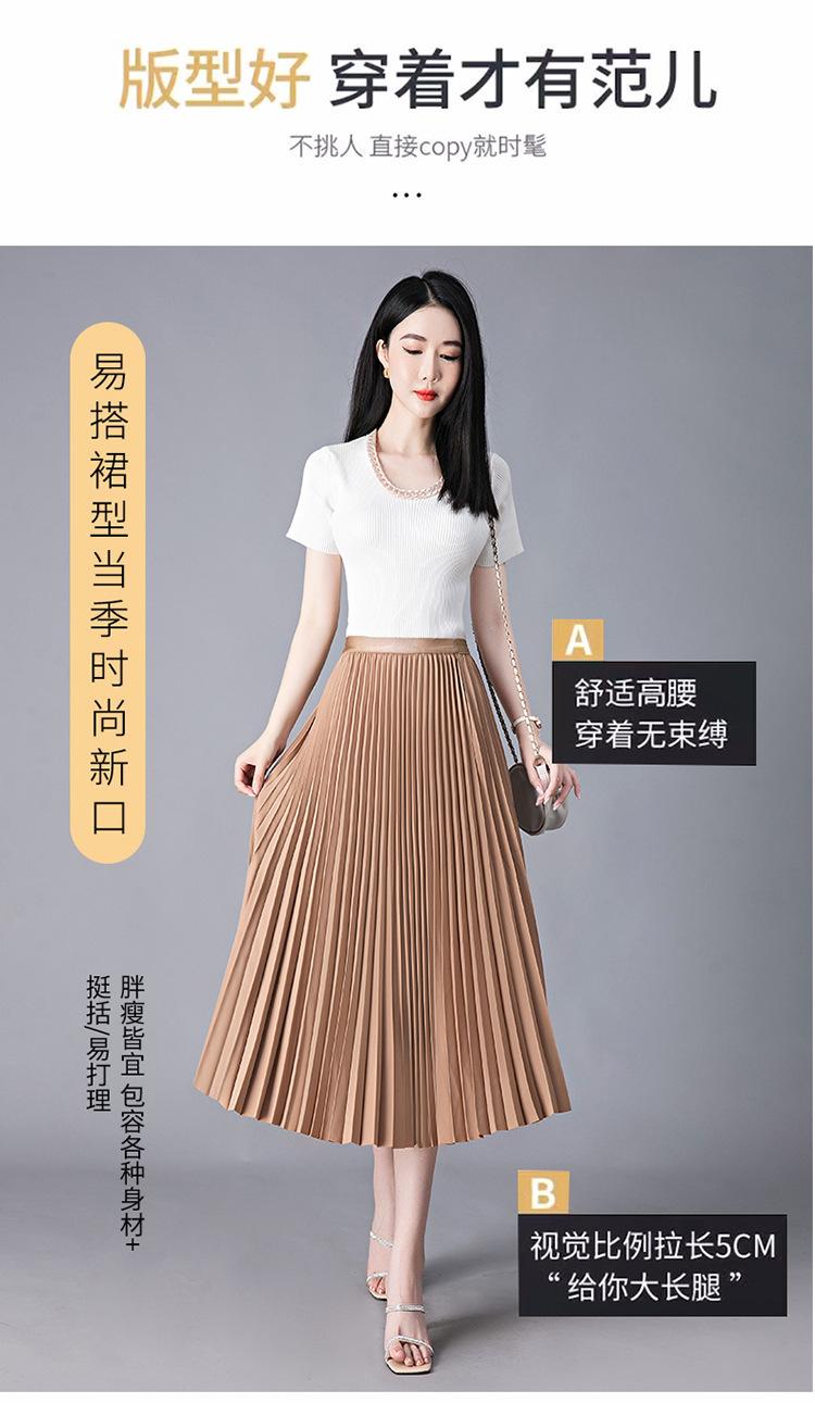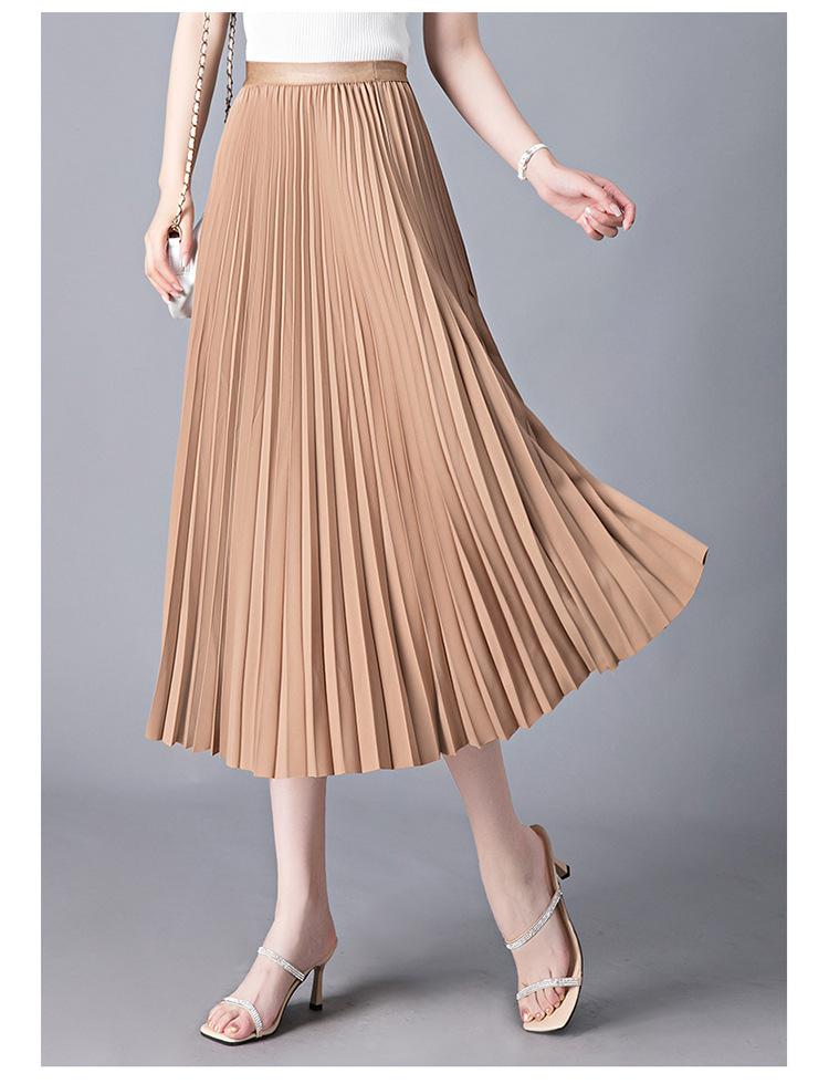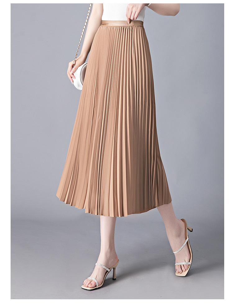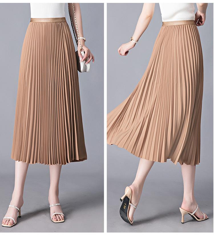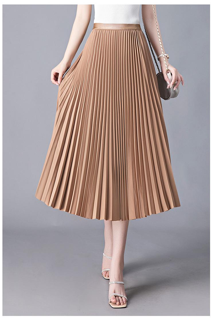 Falda plisada de primavera y verano falda de mujer 2025 nueva cintura elástica adelgazante pequeña versátil larga línea A