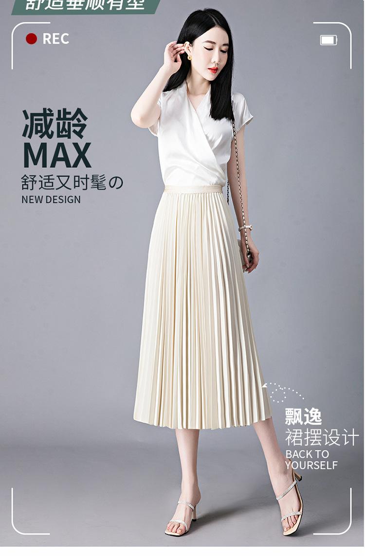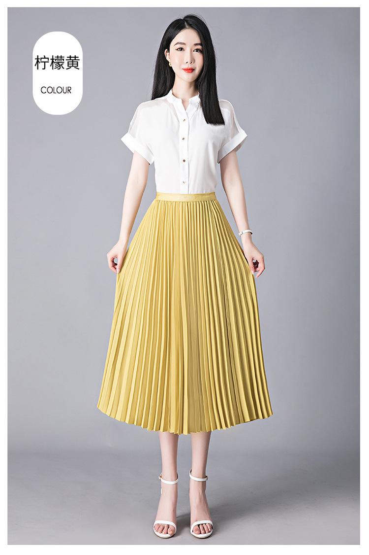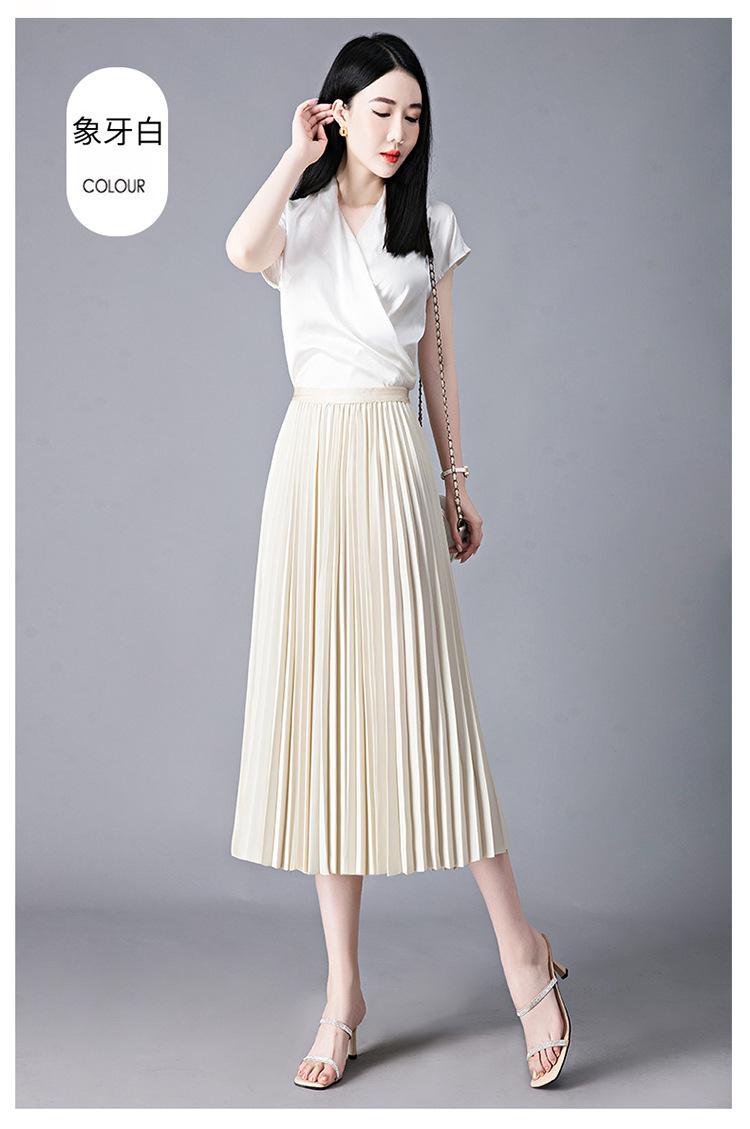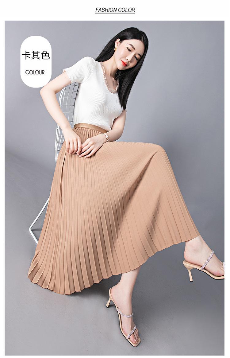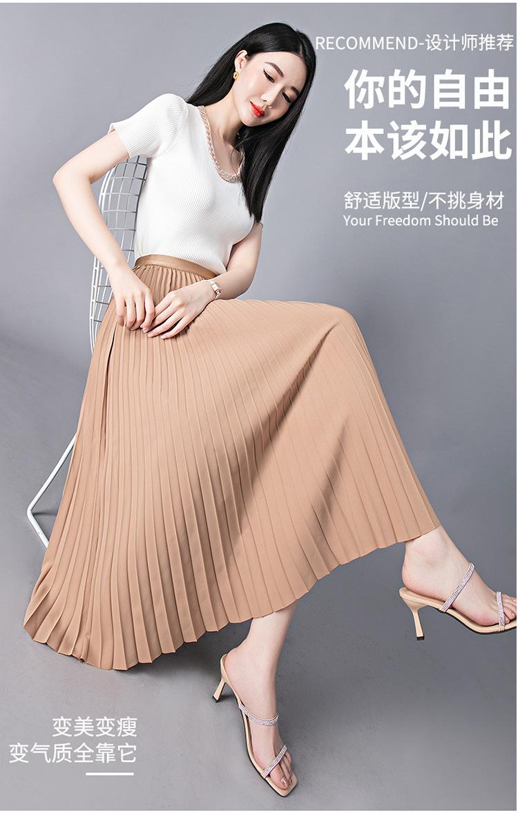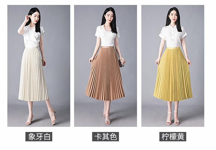 Falda plisada de primavera y verano falda de mujer 2025 nueva cintura elástica adelgazante pequeña versátil larga línea A