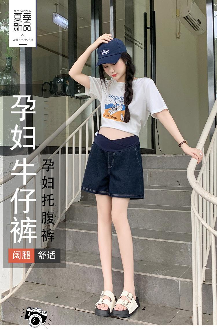 Shorts de Verano para Mujer Embarazada Ropa Exterior de Verano Pantalones de Mezclilla Delgados de Pierna Ancha Jeans Casuales para Mujer Embarazada Pantalones Holgados Versátiles de Cintura Baja