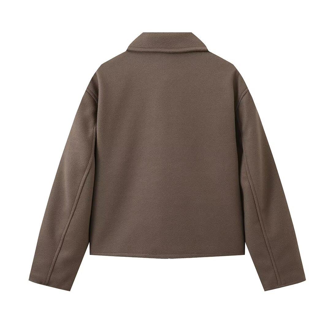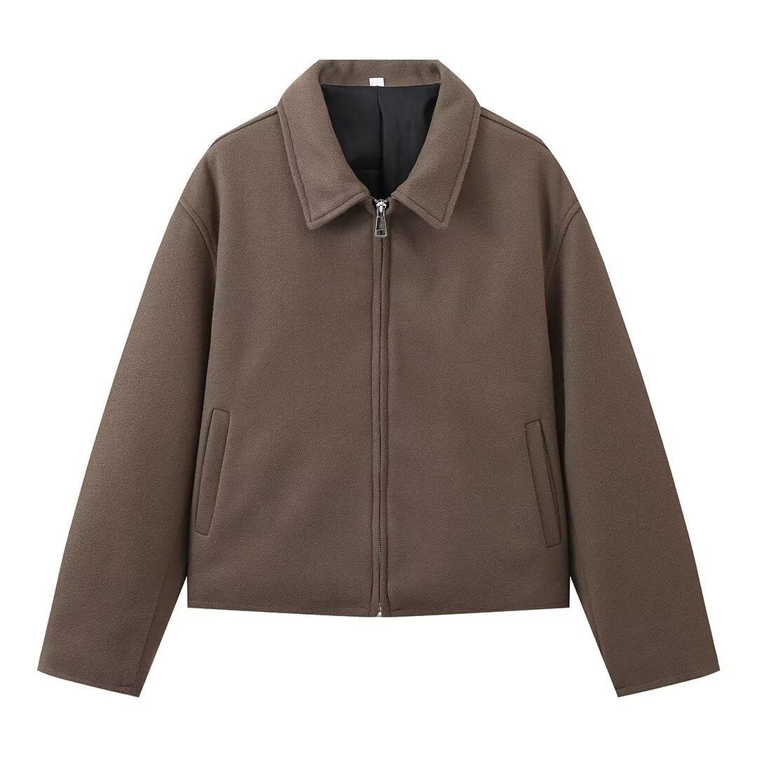 2024 Tops Casuales Sueltos Abrigo Comercio Exterior Ropa de Mujer Venta al por Mayor Solapa Cremallera Moda Femenina Top Retro